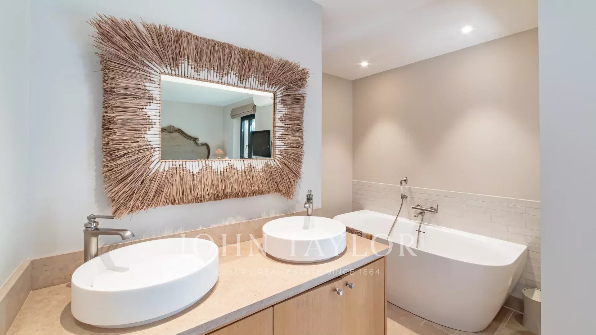 On the garden level, facing the pool, you'll find a vast living room, a convivial dining room, a modern open-plan kitchen, a TV corner and a master suite. This level also includes a guest toilet, a scullery and a laundry room, all opening onto a large terrace, perfect for enjoying the outdoors.