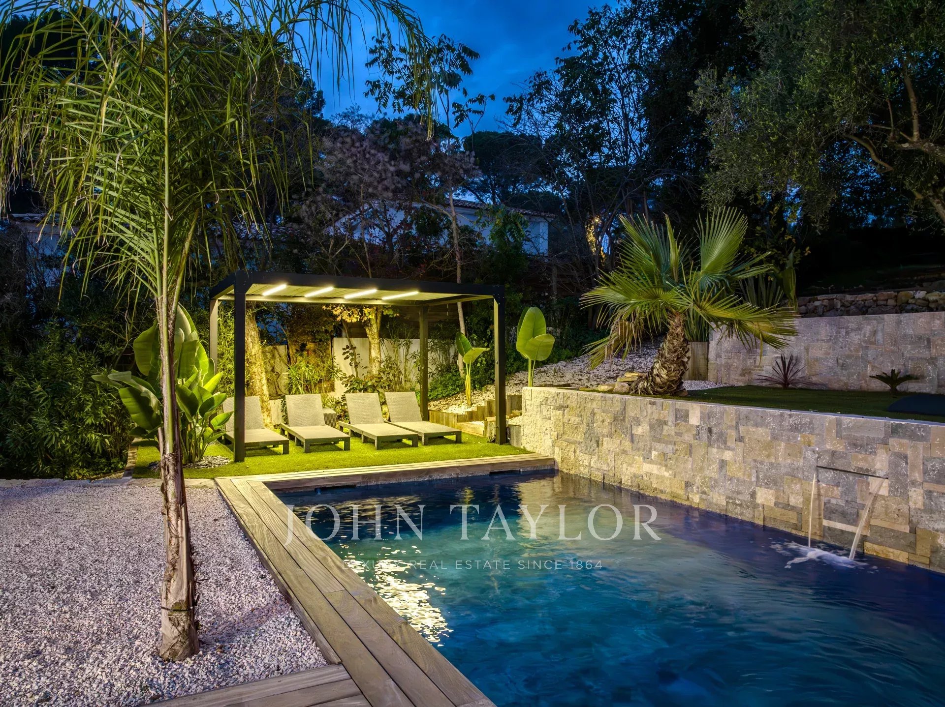 It offers a vast living area opening onto a terrace and pool, five en suite bedrooms, a laundry room and a cinema room.