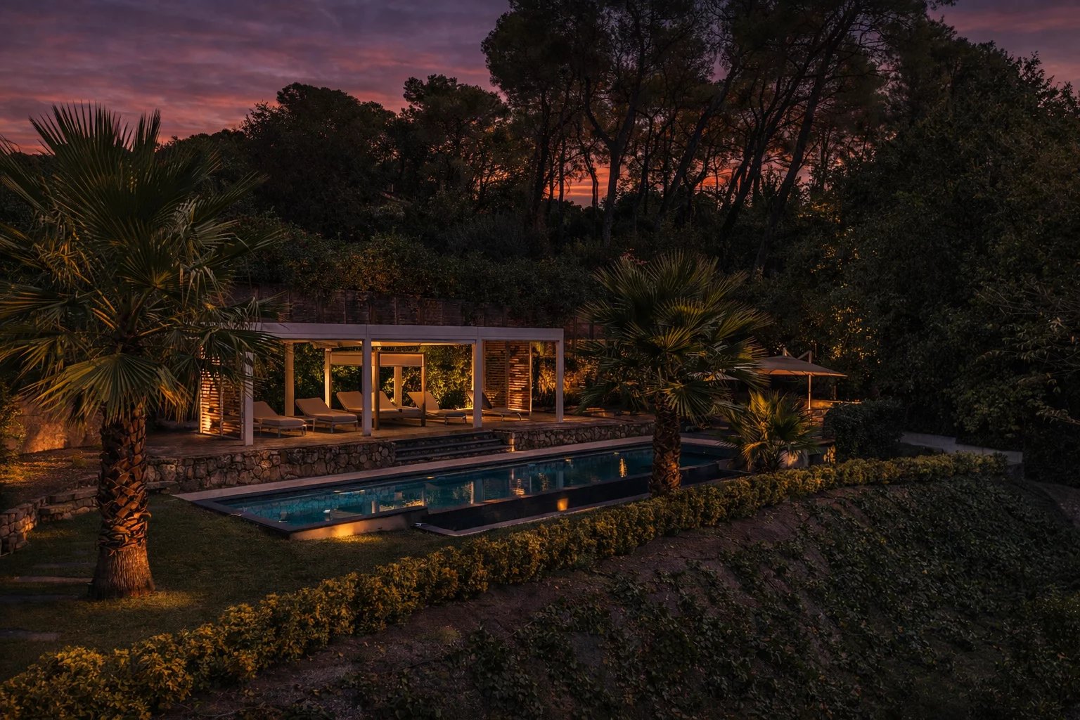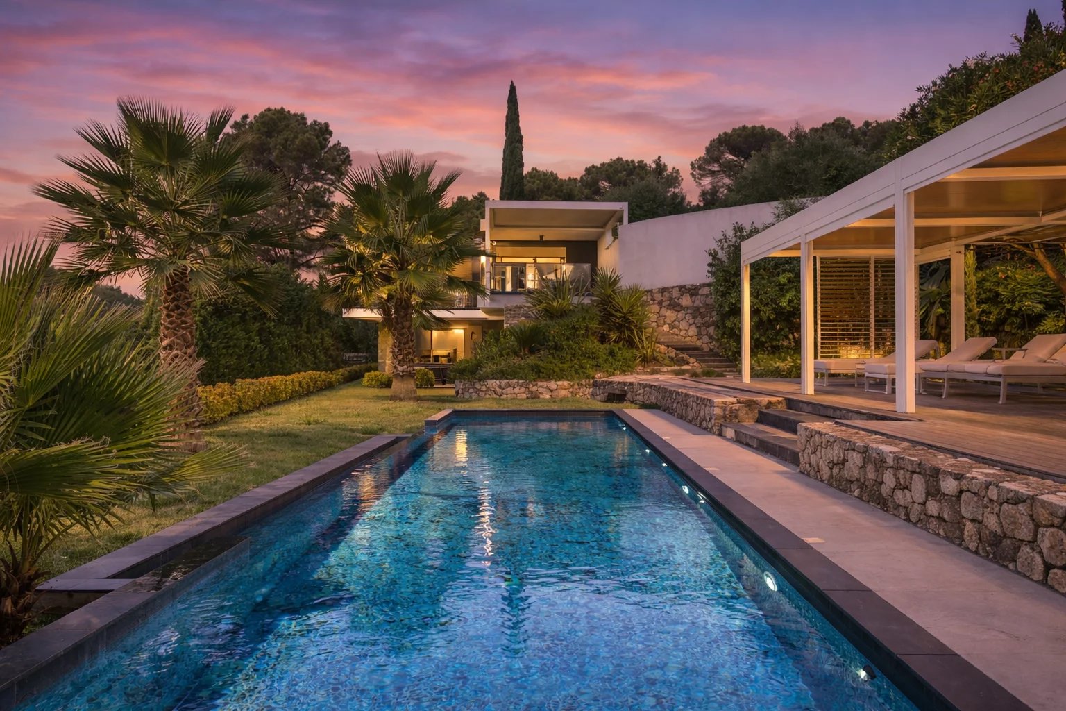 In absolute calm, in a residential neighborhood with unobstructed views, this beautiful contemporary villa with refined appointments features a superb living room extended by a terrace and pool, 4 en suite bedrooms including an exceptional master, and an office space. The villa features a 15-meter heated swimming pool on 2902m² of land.