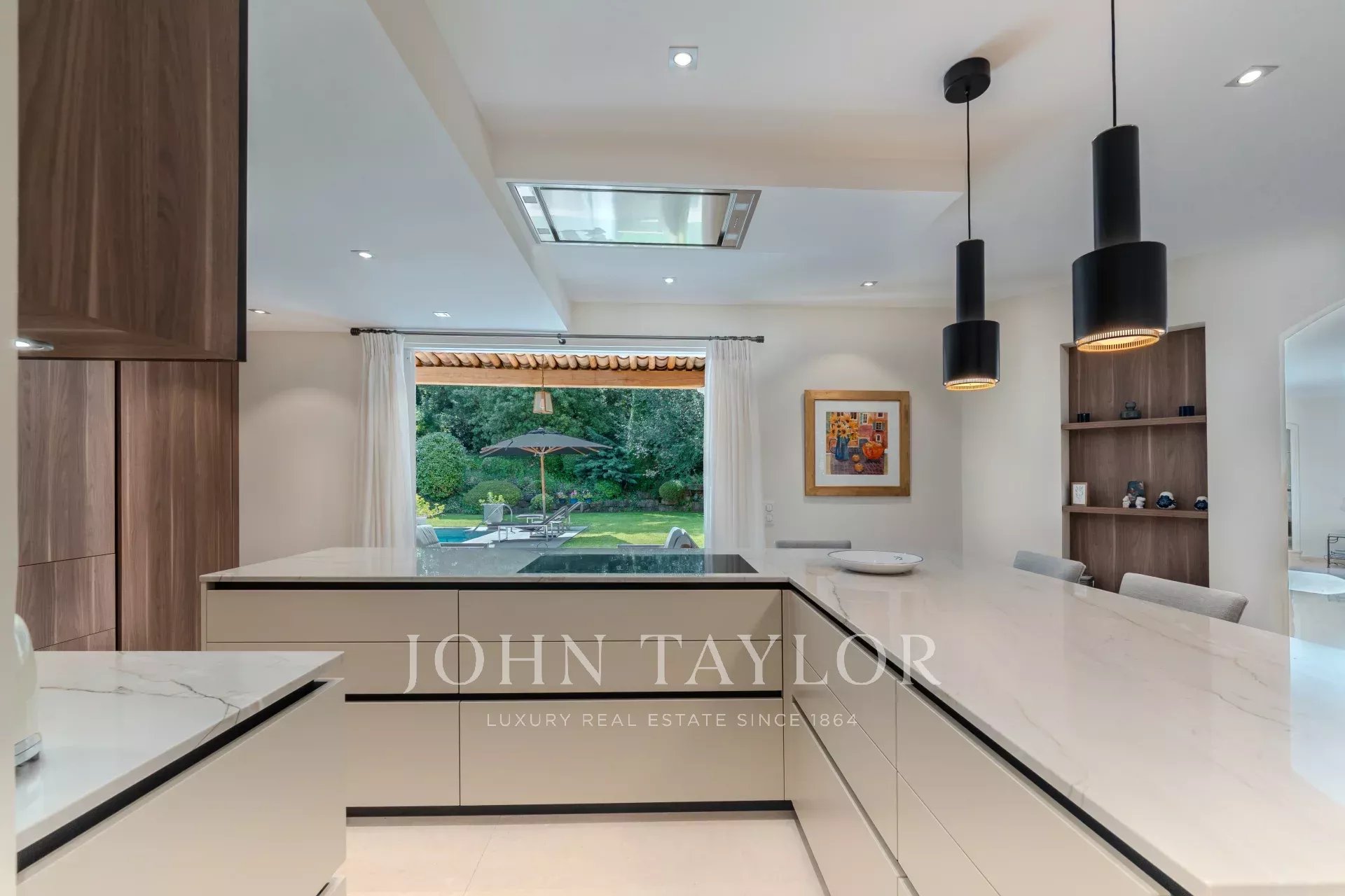 On the ground floor, three spacious en-suite bedrooms, including a superb principal suite, open directly onto the terraces, garden and swimming pool, creating a seamless indoor-outdoor lifestyle.