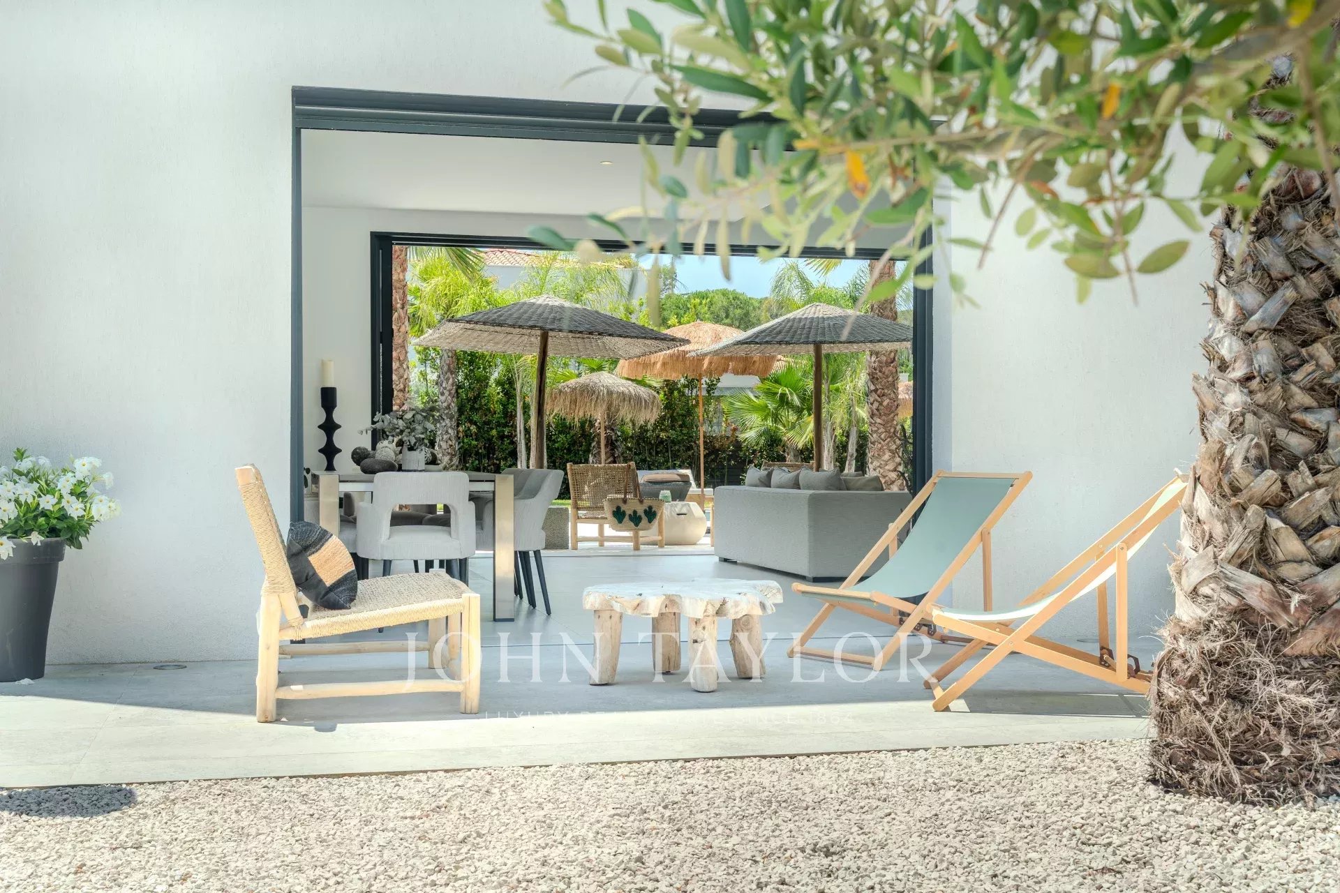 Annexes include a storeroom, laundry room, wine cellar and spacious, secure garage, as well as a host of modern amenities: integrated home automation, motorized shutters, centralized vacuuming, air-conditioned wine cellar and alarm system.