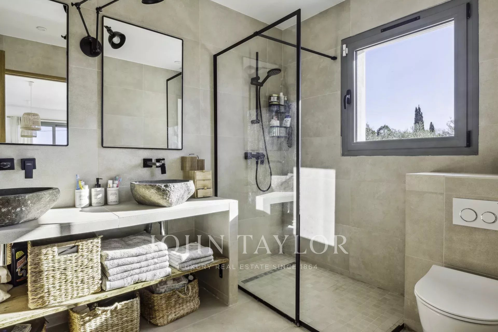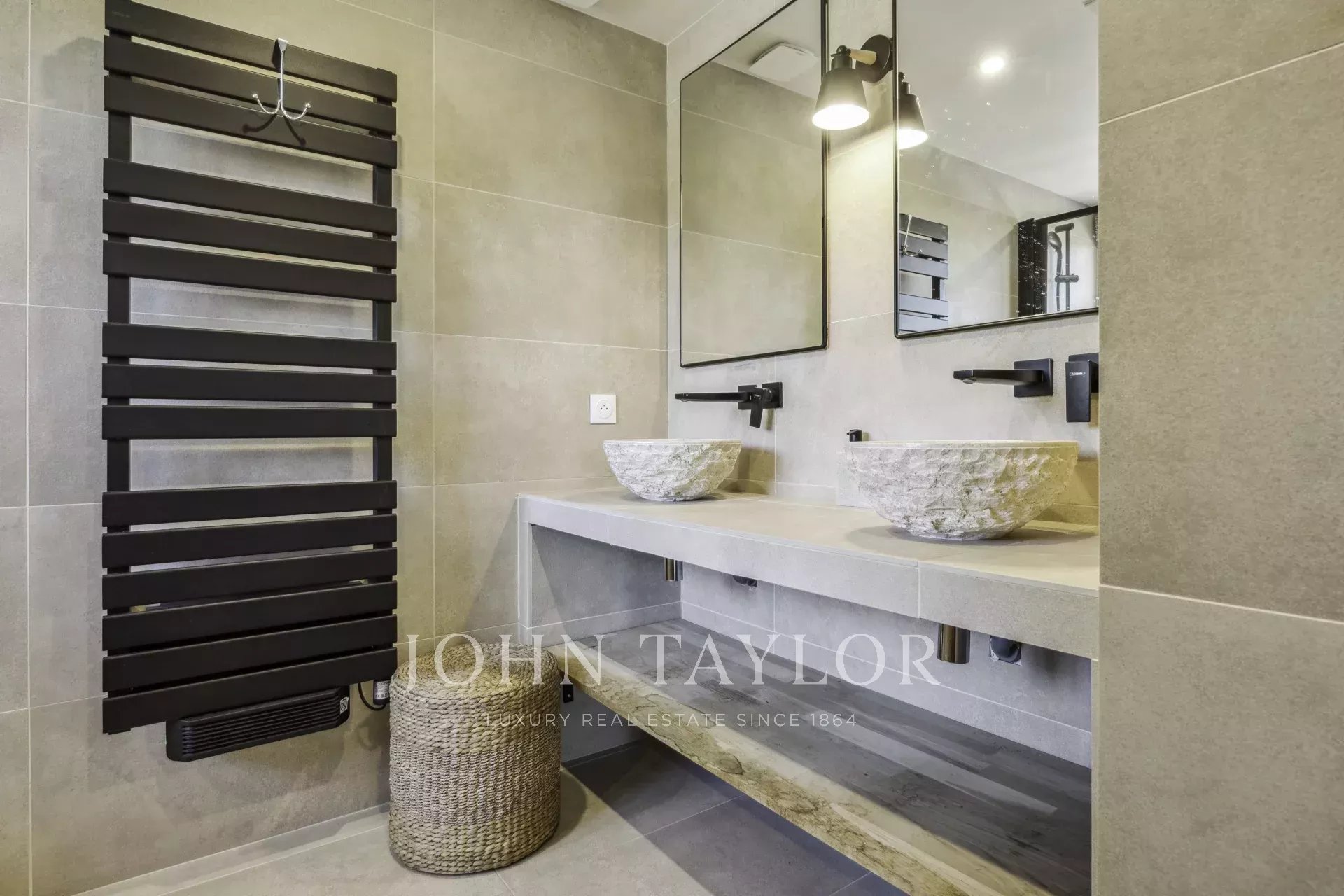 The first floor features a superb master suite with custom-made dressing room and private bathroom, as well as three spacious, bright bedrooms, a shared contemporary bathroom and a large panoramic terrace.