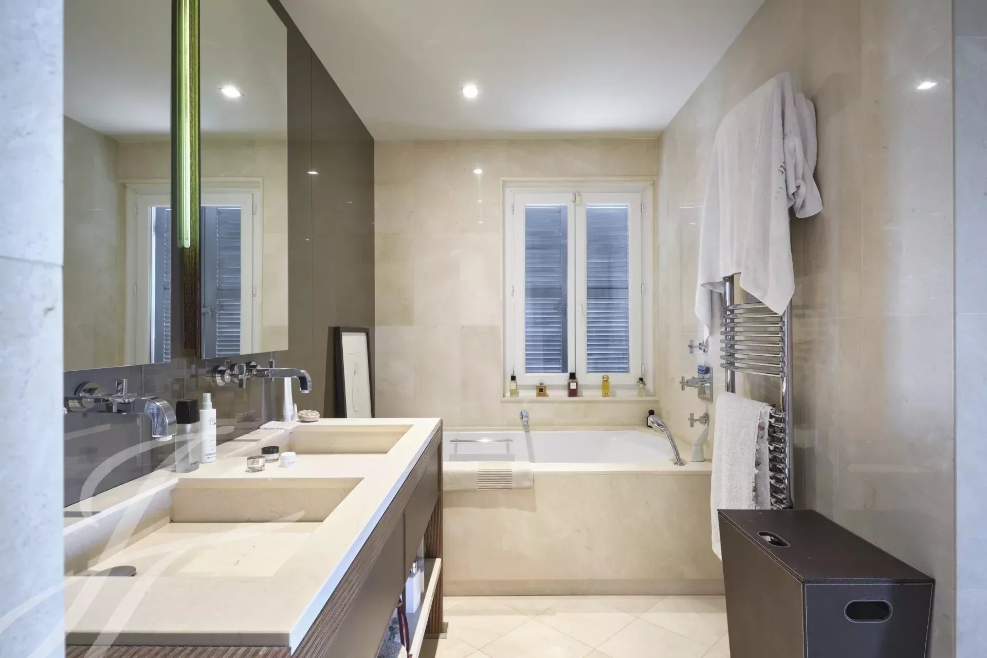 On the first floor, you'll find an entrance hall, a guest toilet, a beautiful kitchen equipped with top-of-the-range appliances, and a master bedroom with en suite bathroom. All overlooking several outdoor spaces for relaxing moments.