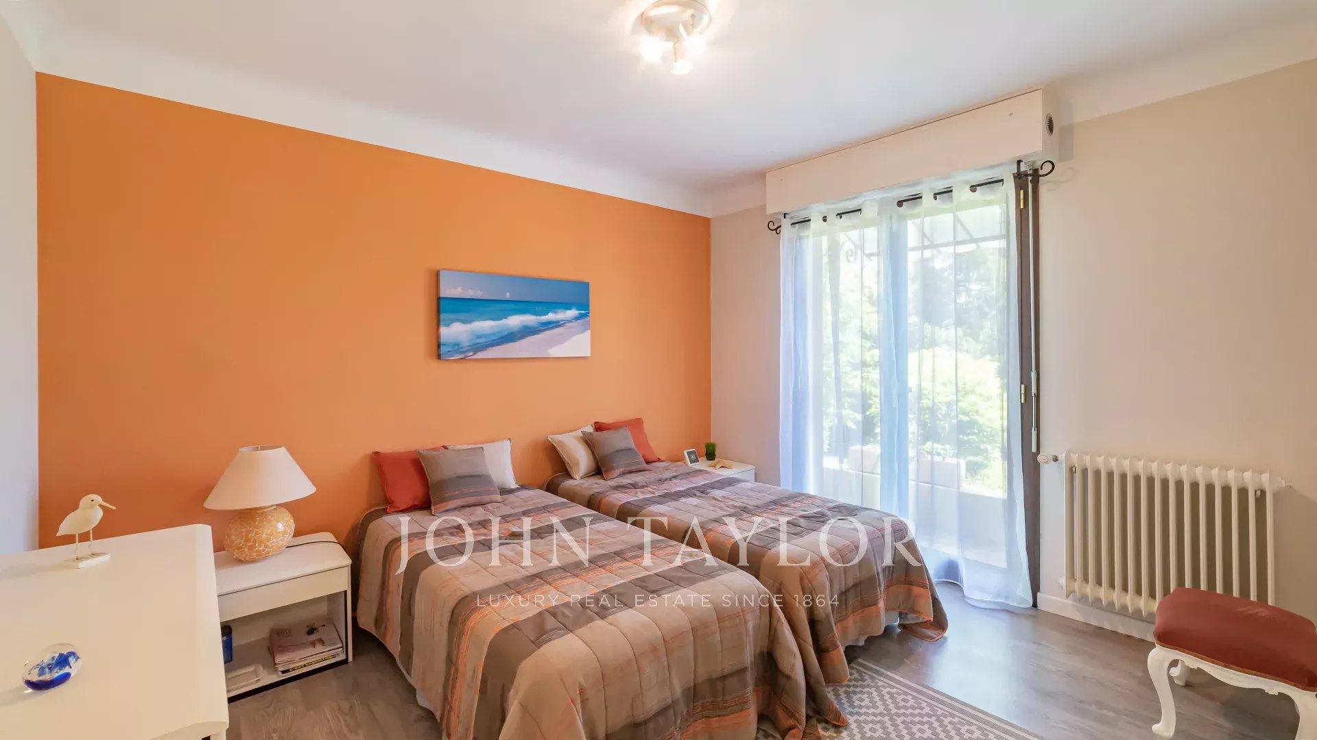 This property is divided into two apartments: a 126 m² 4-room apartment comprising a living/dining room opening onto a terrace with mezzanine, a fully-equipped separate kitchen, three bedrooms and their bathrooms, and a 72 m² 3-room apartment comprising a living/dining room opening onto the garden, a fully-equipped separate kitchen, two bedrooms and a bathroom.