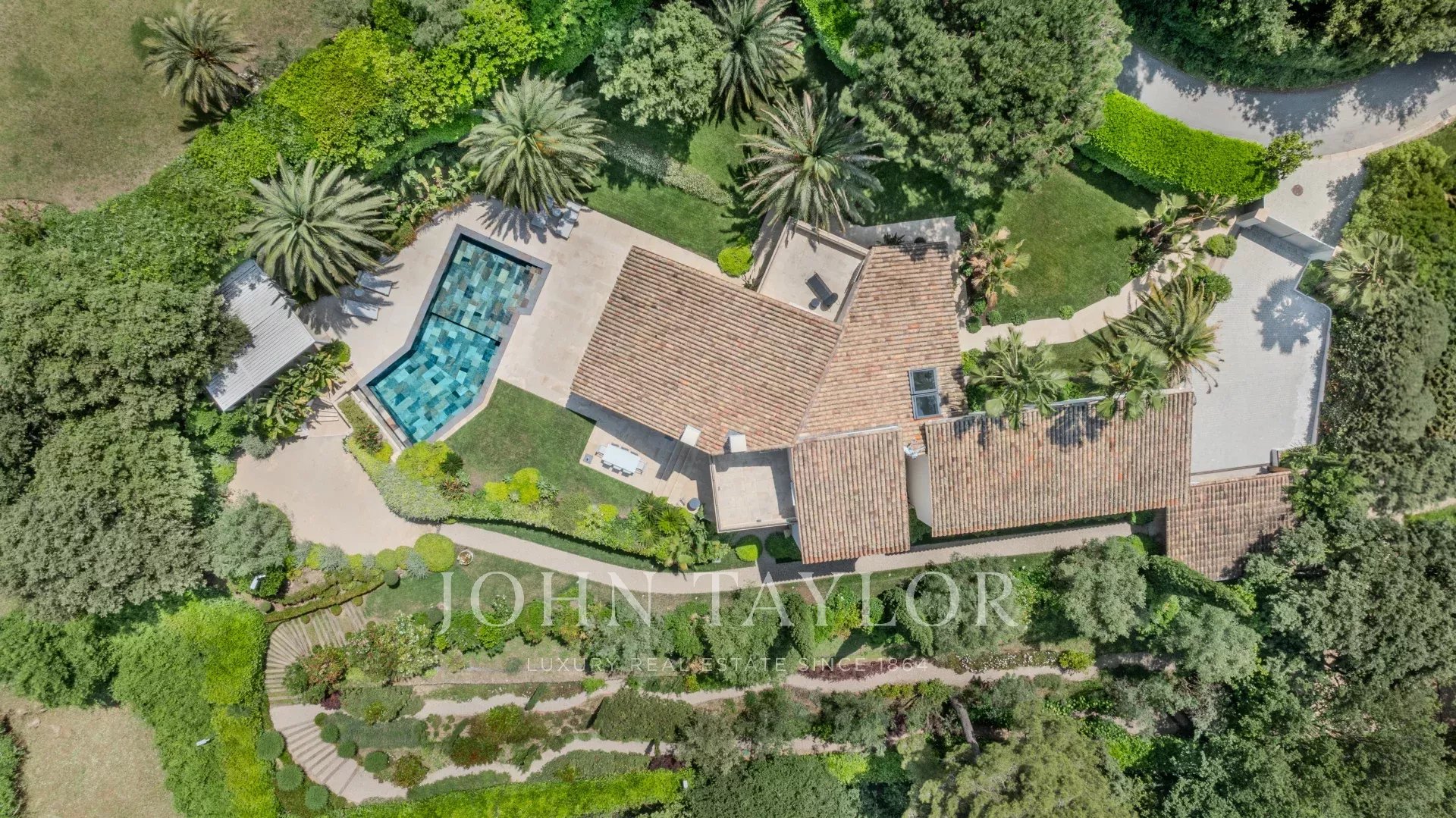 In the heart of the prestigious Parcs de Mougins private estate with 24-hour security, sought-after for its absolute peace and quiet, its immediate proximity to golf courses and the Mougins School, Villa Palma offers breathtaking panoramic views of the surrounding hills.
