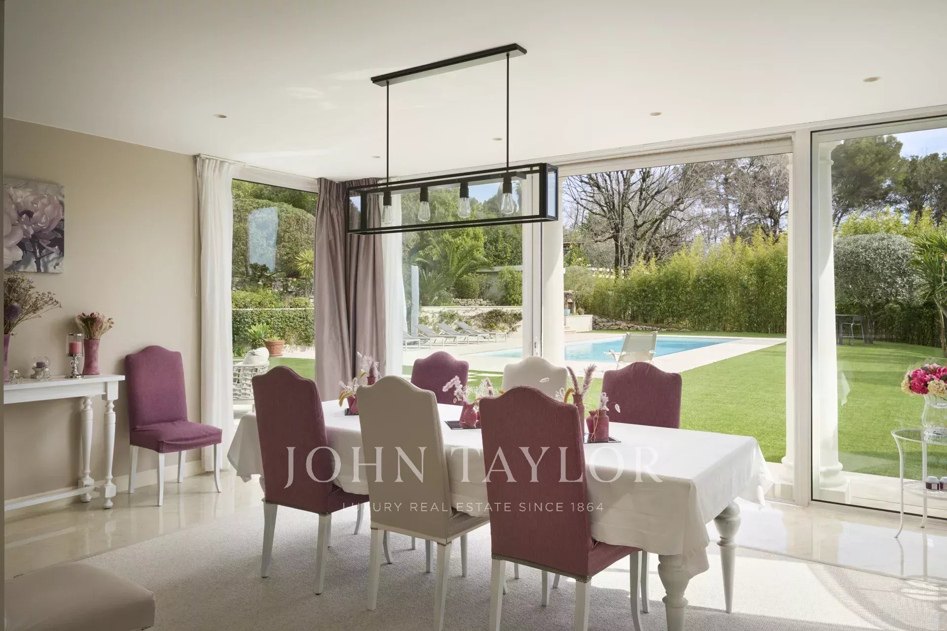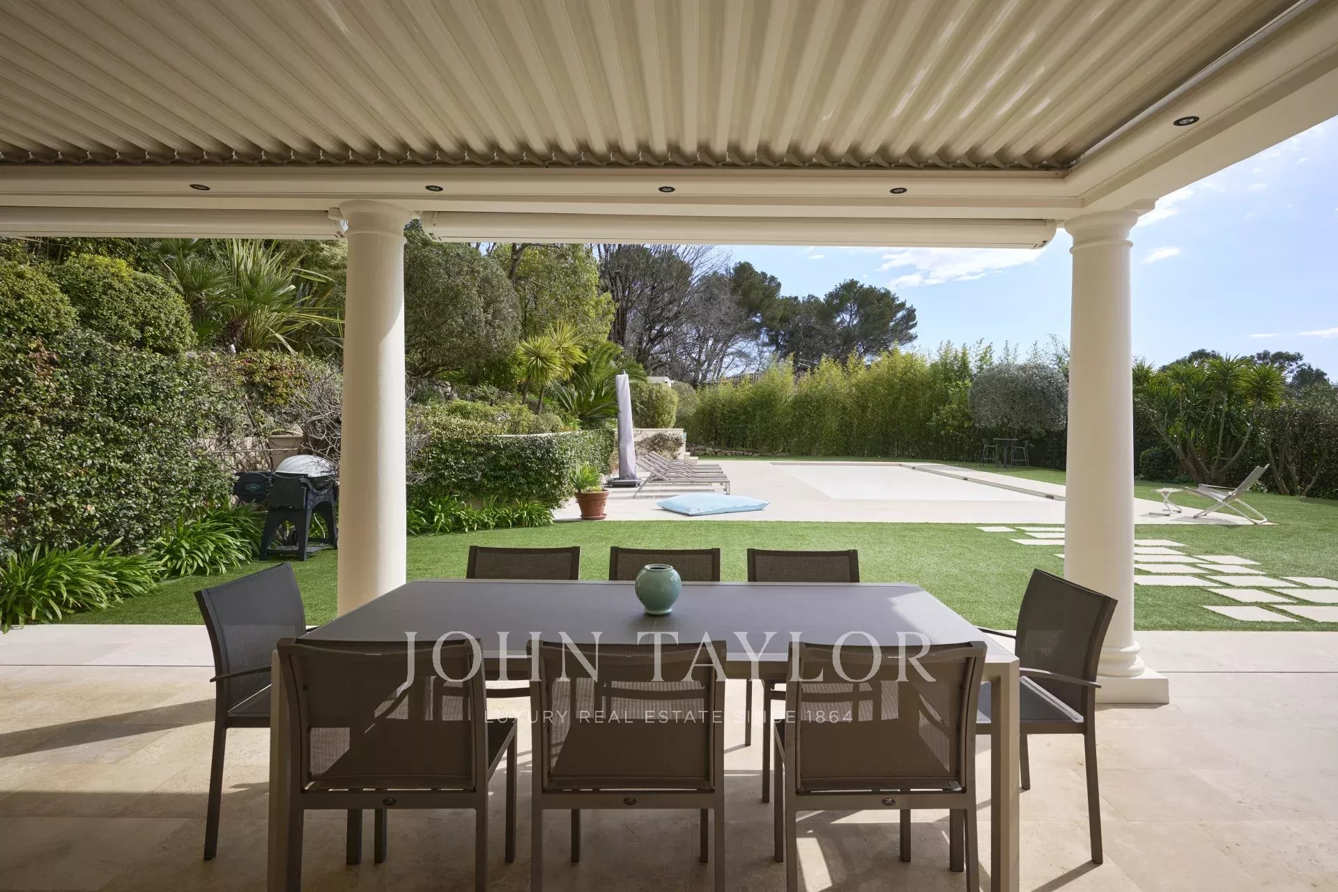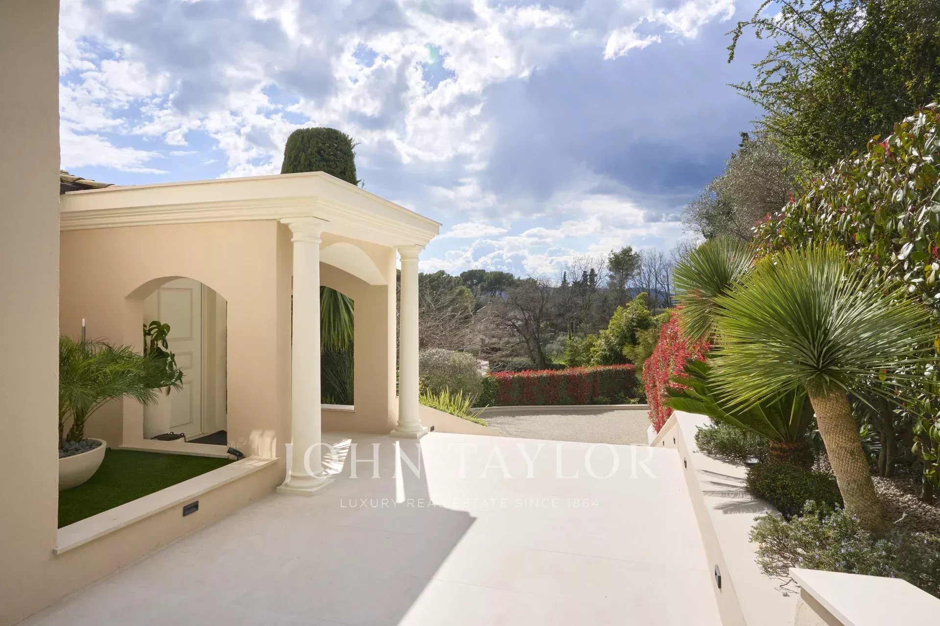 The 3,800 m² garden has been carefully landscaped and planted with Mediterranean species. The property enjoys a remarkable, unobstructed view over the picturesque village of Mougins, enhancing this exceptional living environment.