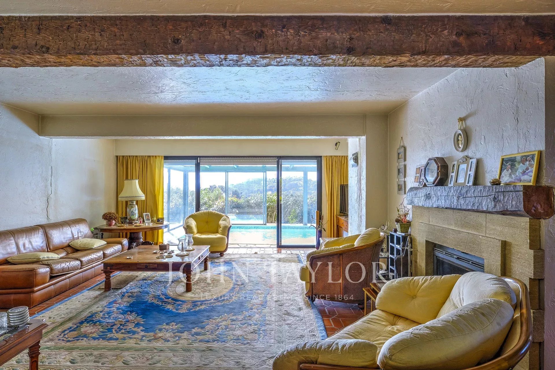 The front garden is beautifully landscaped and complemented by a covered swimming pool, while the lower terraced garden offers further potential for development.