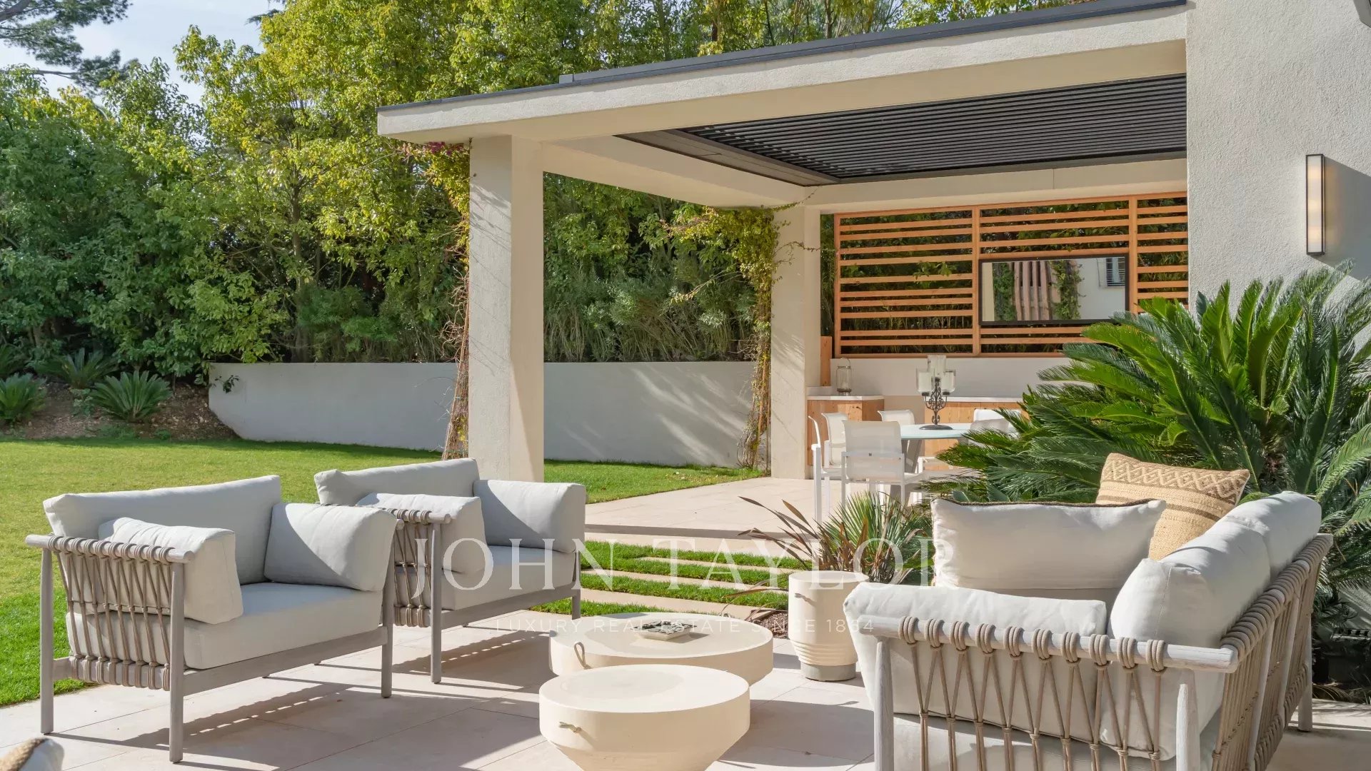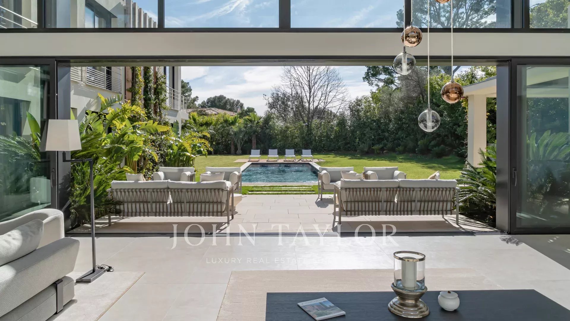 Nestled in the heart of a prestigious gated estate in Mougins, this new contemporary villa of 700 sqm offers a luxurious and modern property set in approx. 2700 sqm of parc.