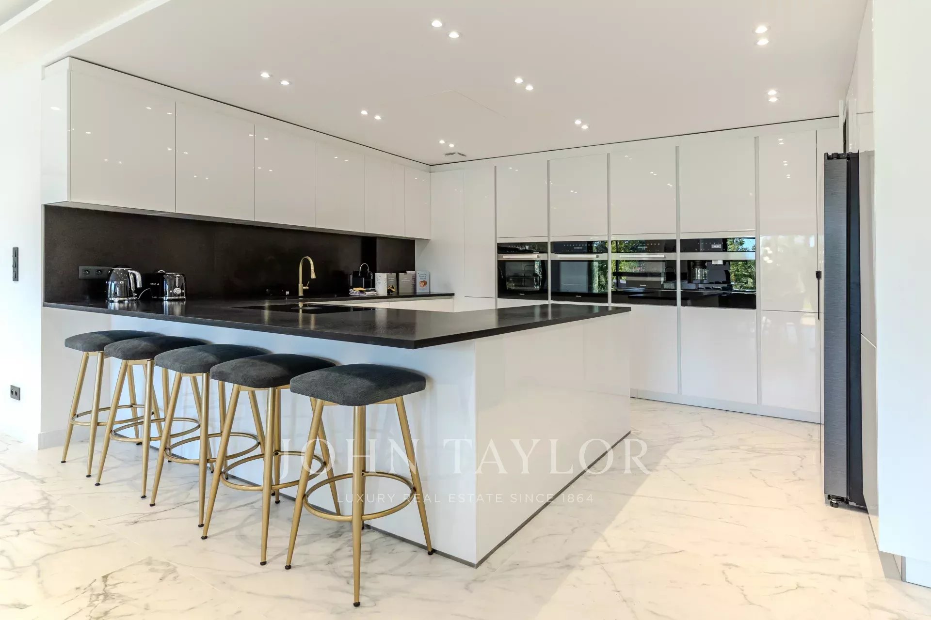 The property features six en suite bedrooms, each offering optimal comfort and perfect privacy. Five parking spaces complete the villa.