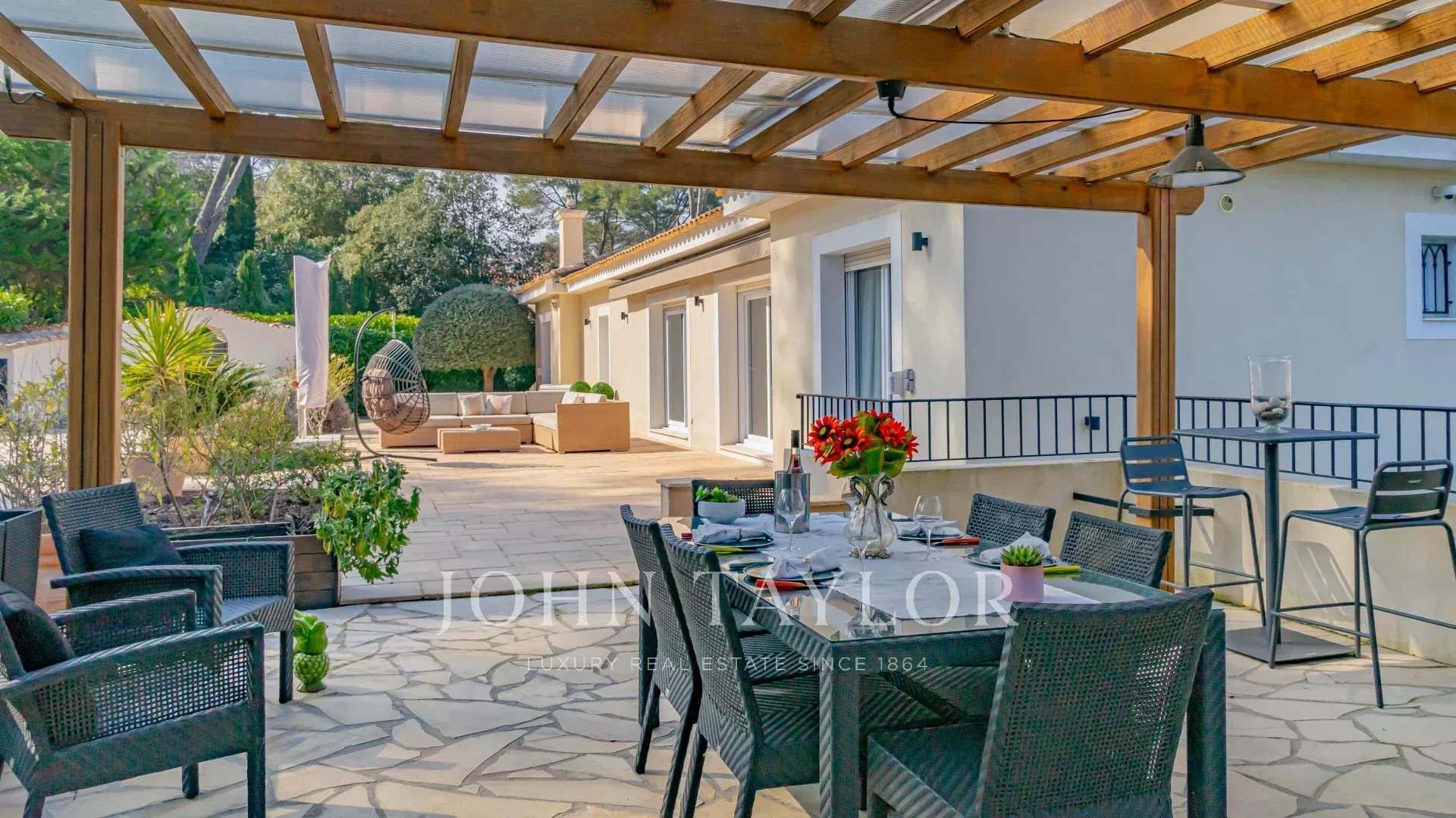 In the heart of one of Mougins' most sought-after gated estates, and in absolute calm, this villa is ideally located within walking distance of the Mougins School with secure access, and also within walking distance of the Etang de Fontmerle and a renowned golf course.