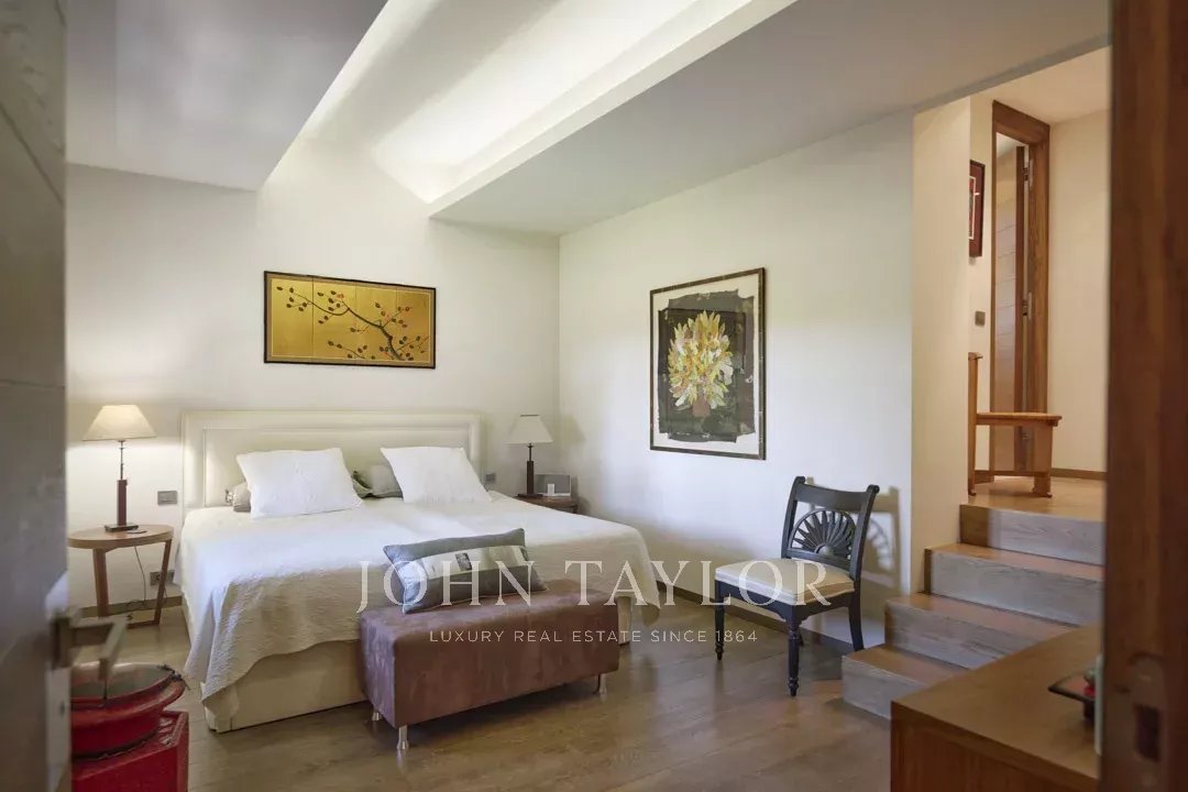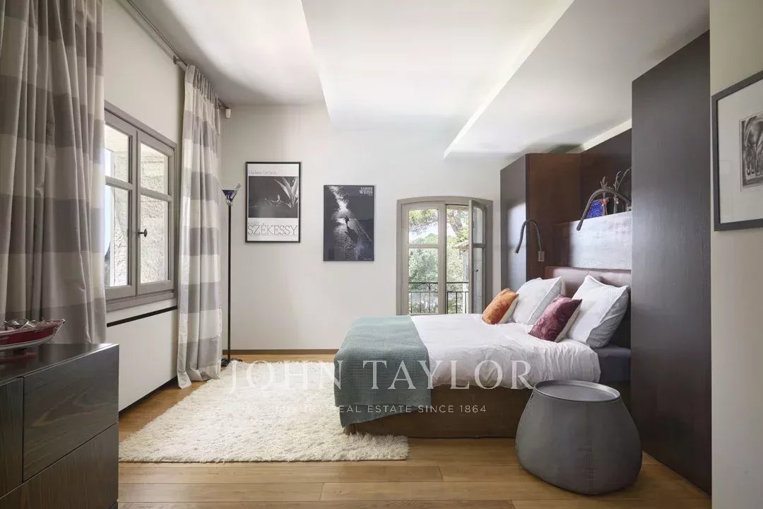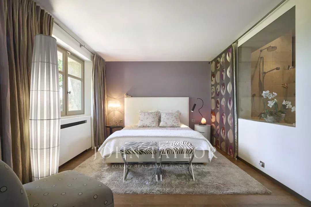 In a gated estate with a tennis court, this gorgeous 18th-century mas fully renovated of approximately 540 square meters is the perfect combination between authenticity and contemporary elegance. Each room tells a story, from the various reception areas to the five bedrooms, all with its own bathroom or shower.