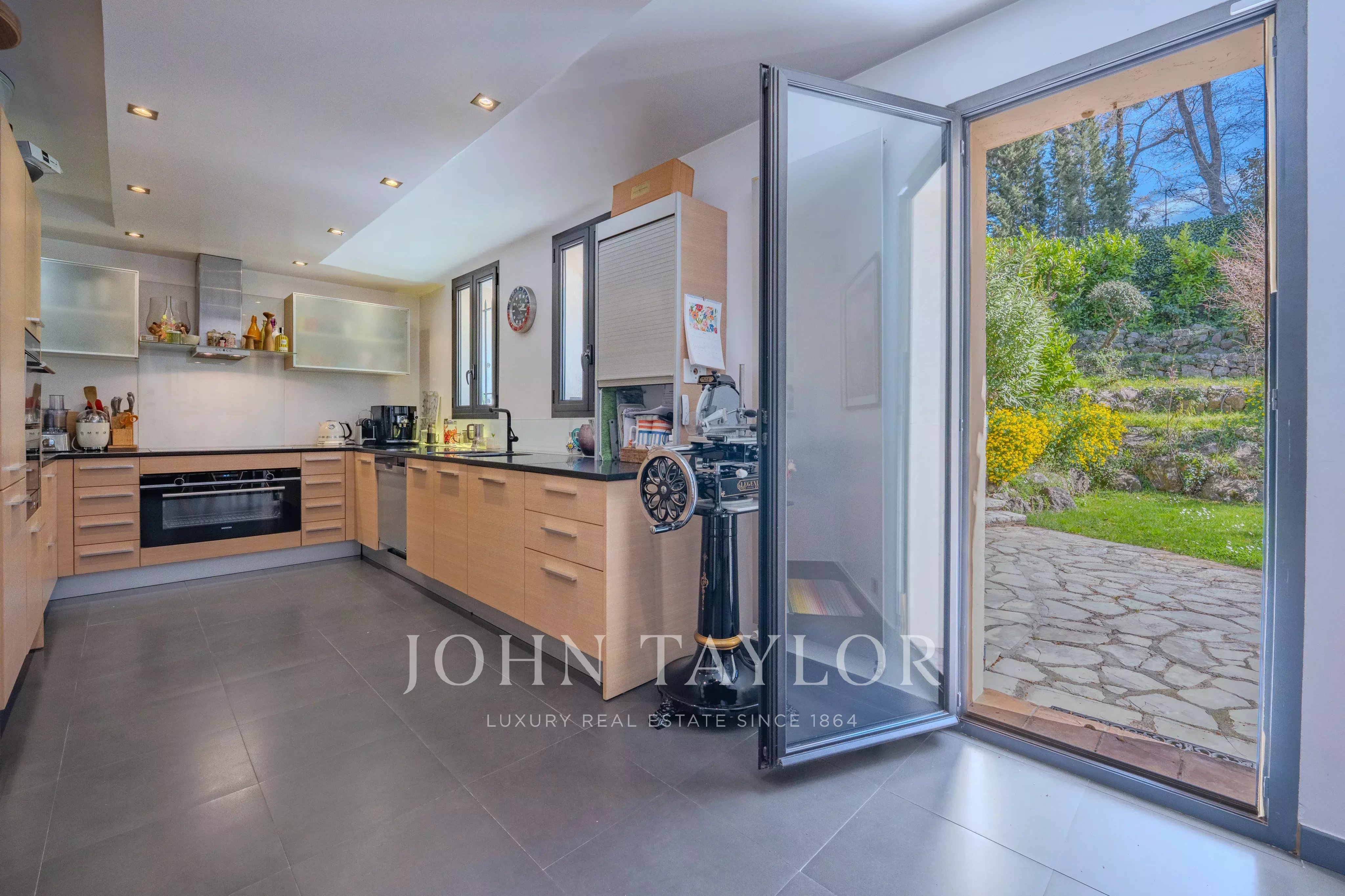 The garden level also features a comfortable sleeping area consisting of a master bedroom with dressing room, two bedrooms sharing a shower room, as well as a fourth bedroom, ideal for a child or an additional office.