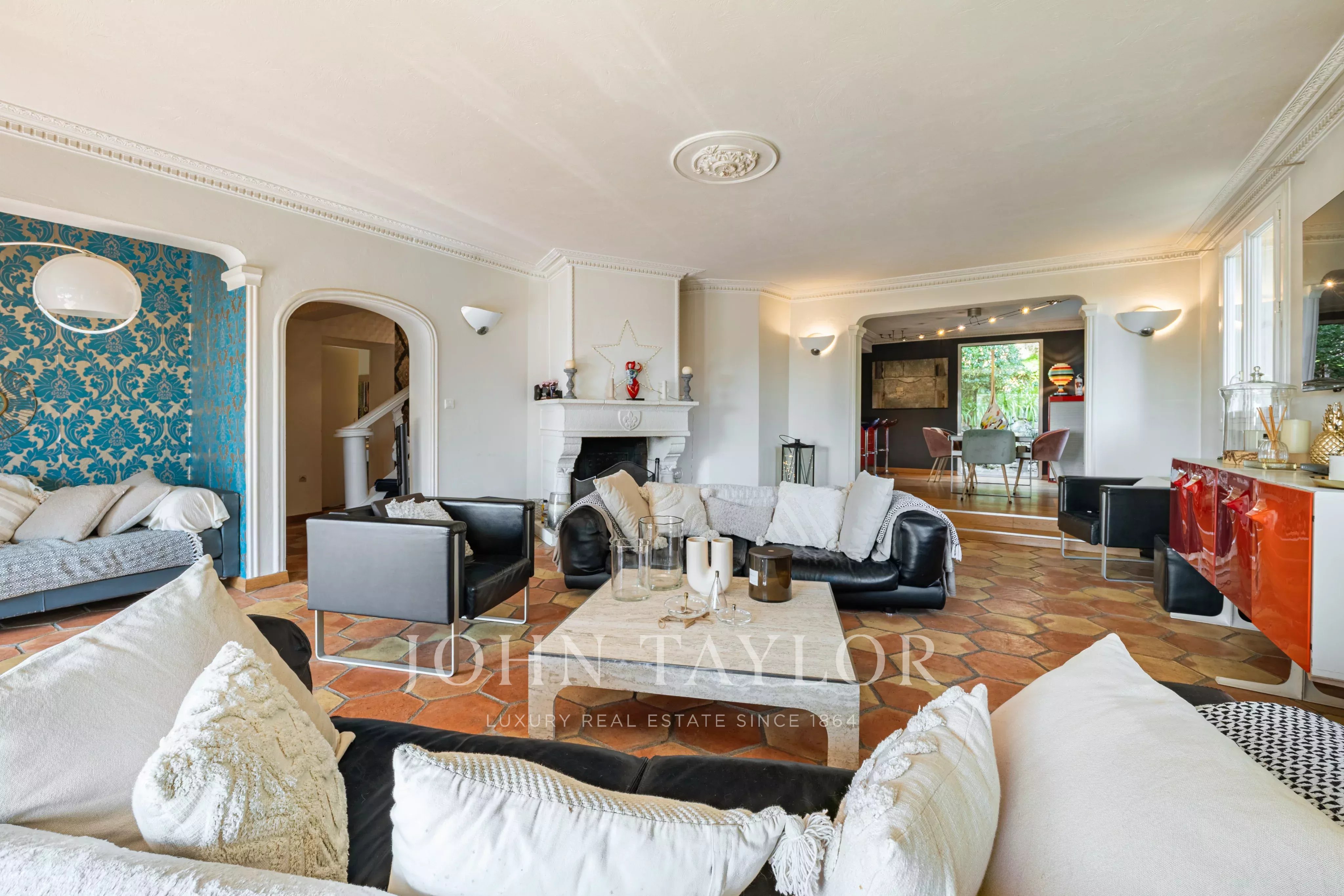Quietly situated at the end of a cul-de-sac in a sought-after residential area, this elegant 220 m² villa benefits from south-facing exposure, a dominant position and quick access to Cannes.
