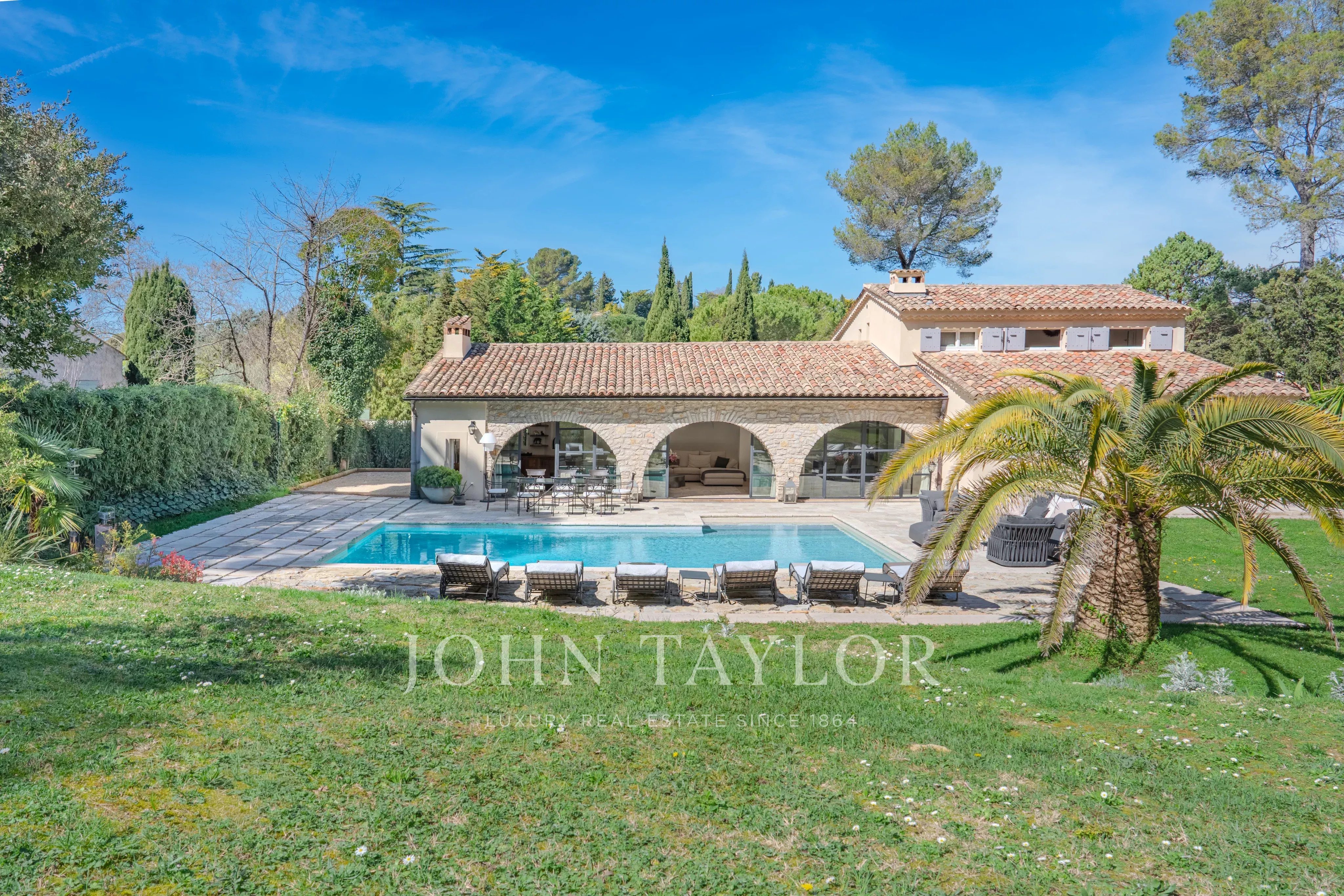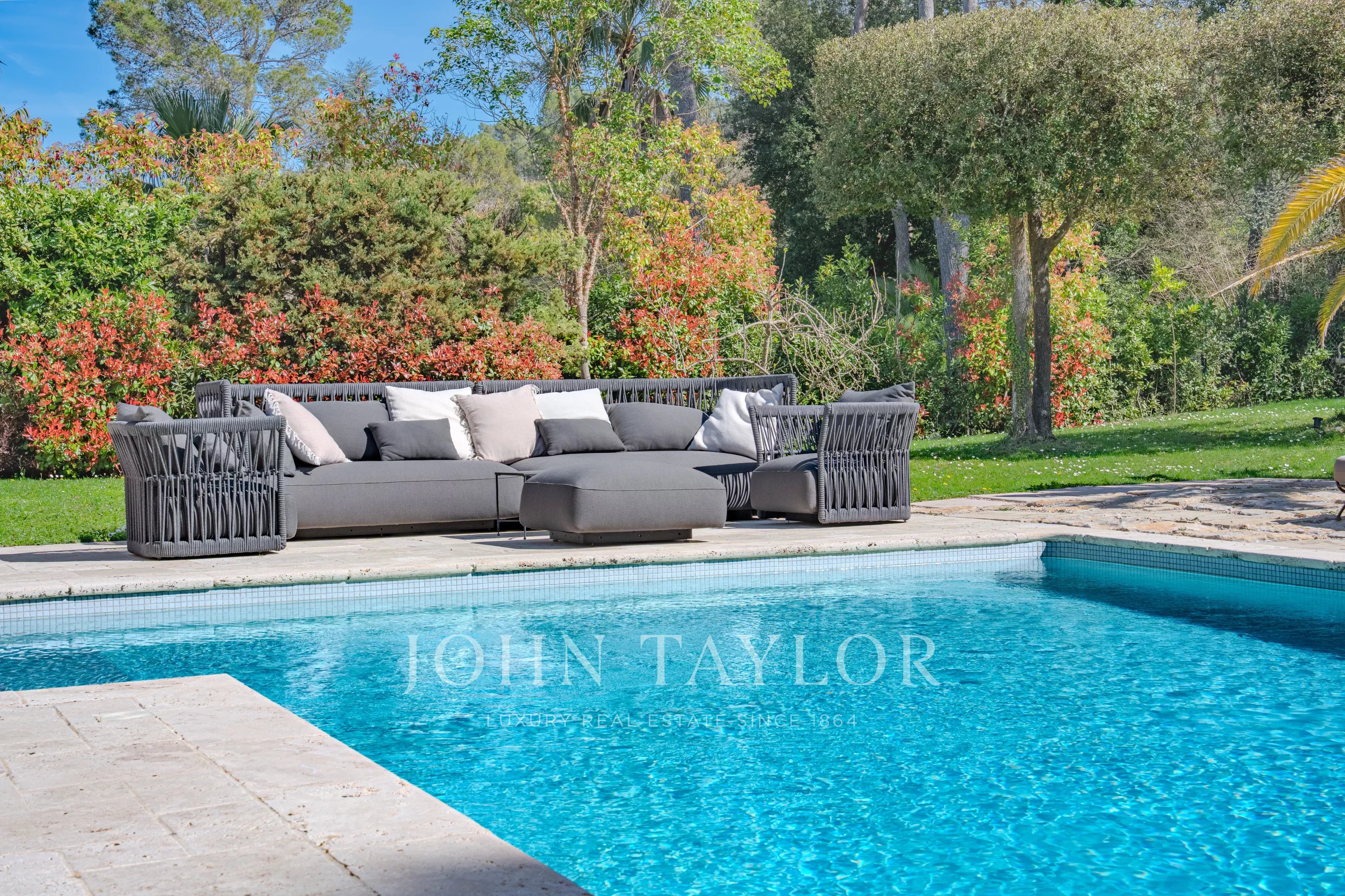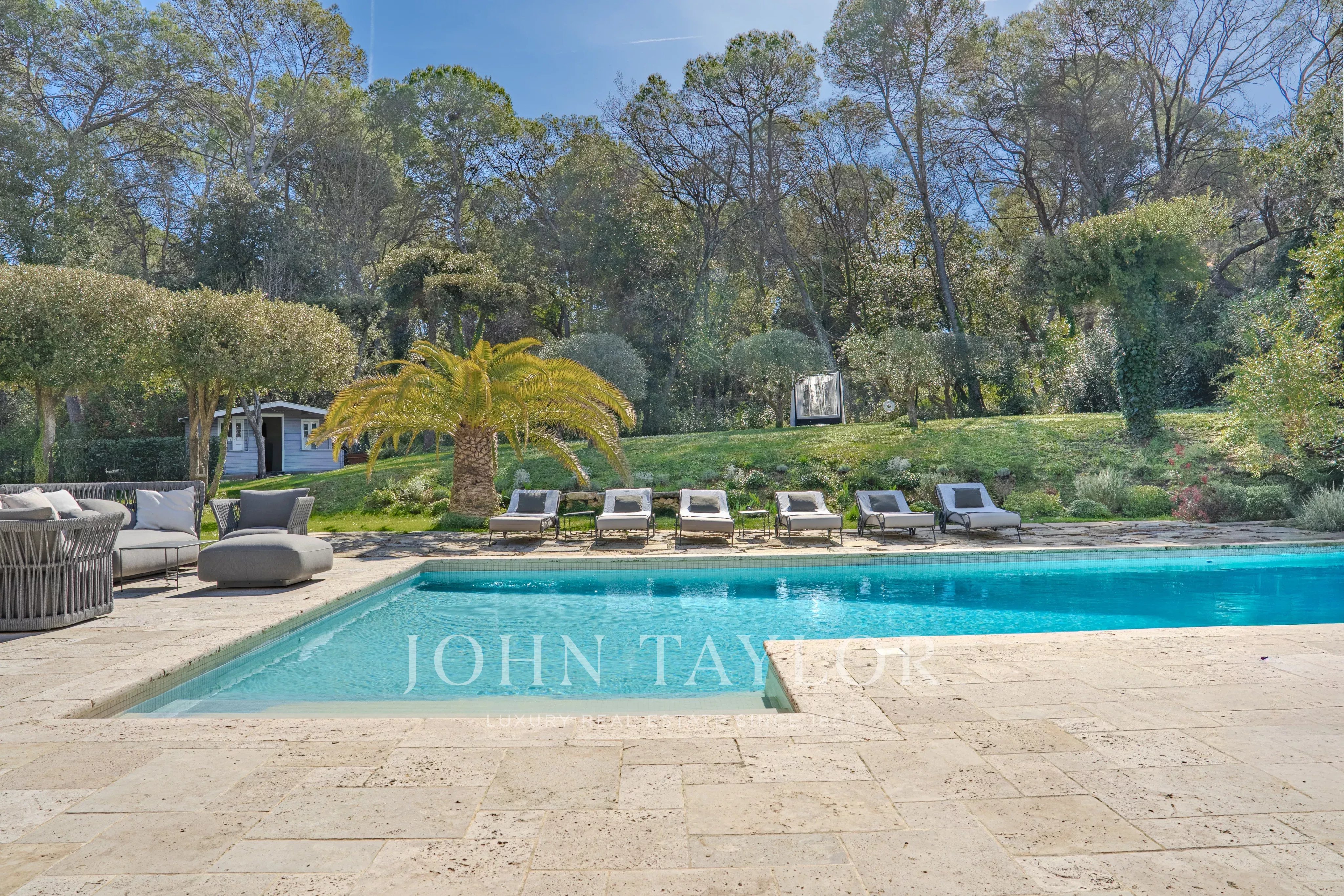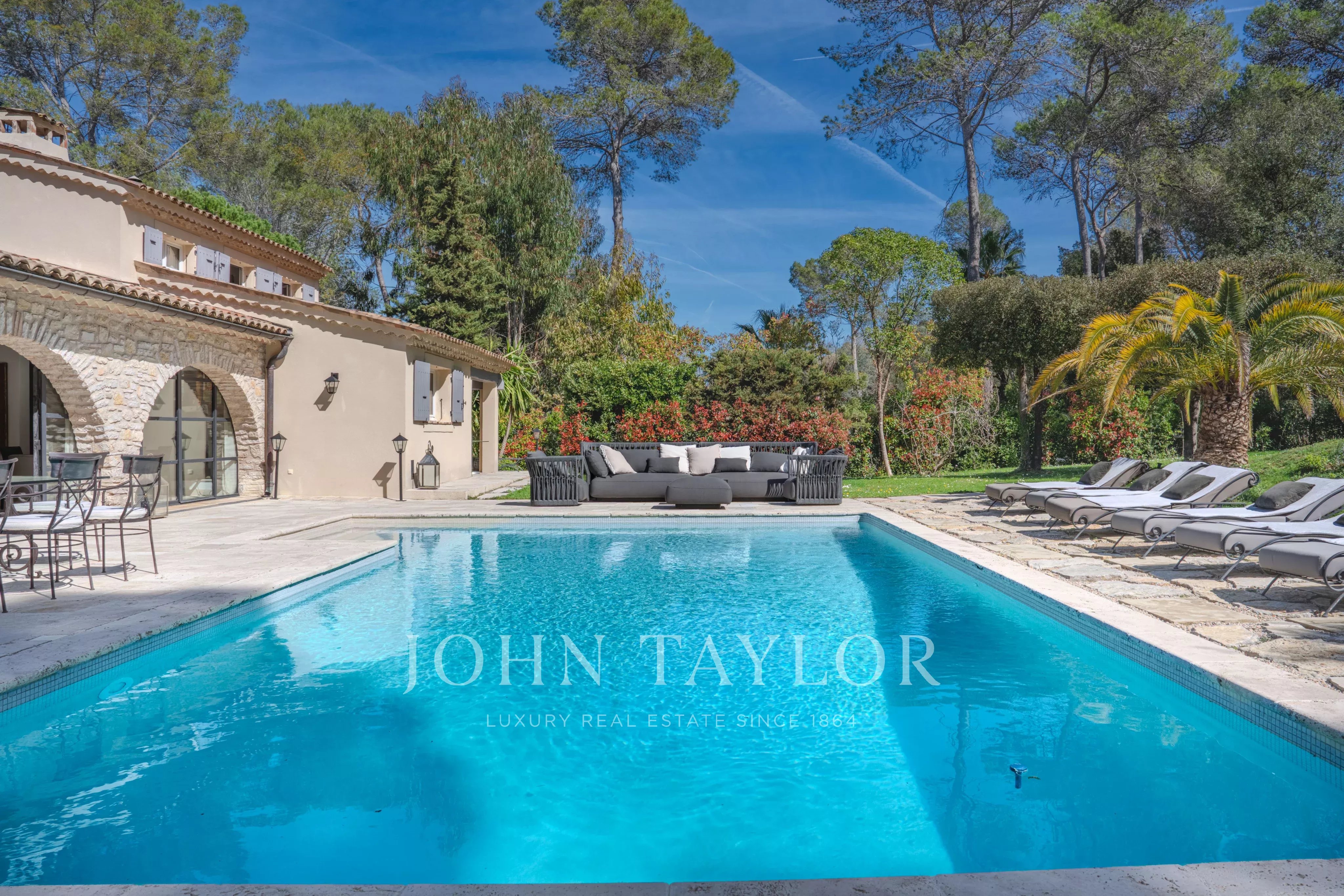 Exclusive: Ideally located in Mougins, in a particularly sought-after residential area close to Lake Mougins, this elegant south-facing villa charms with the harmonious blend of old-world charm and high-quality contemporary features.