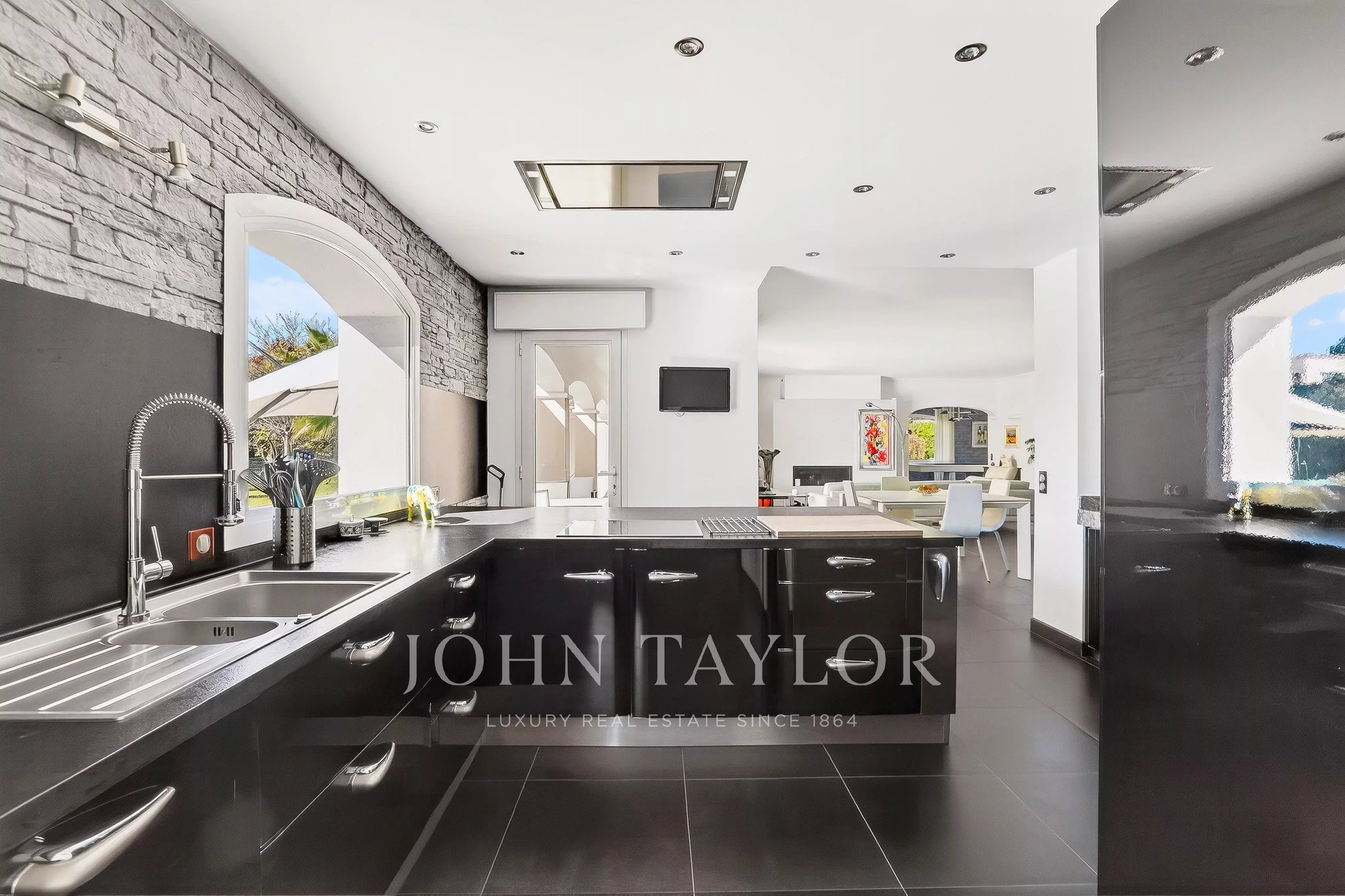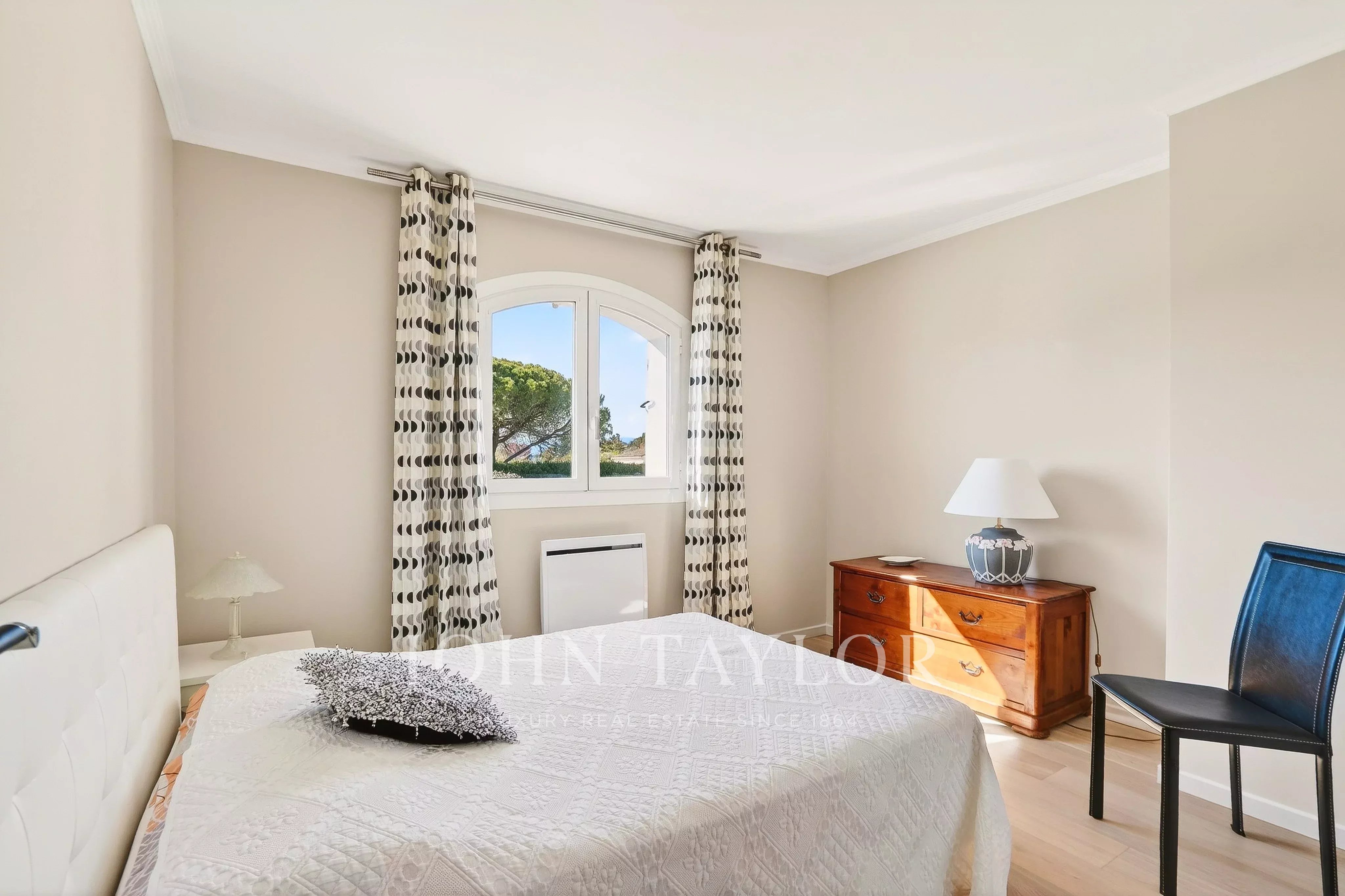 Mainly single-story, the villa also features a large office, easily convertible into an additional bedroom with an en-suite shower room, as well as a bedroom with a private bathroom.