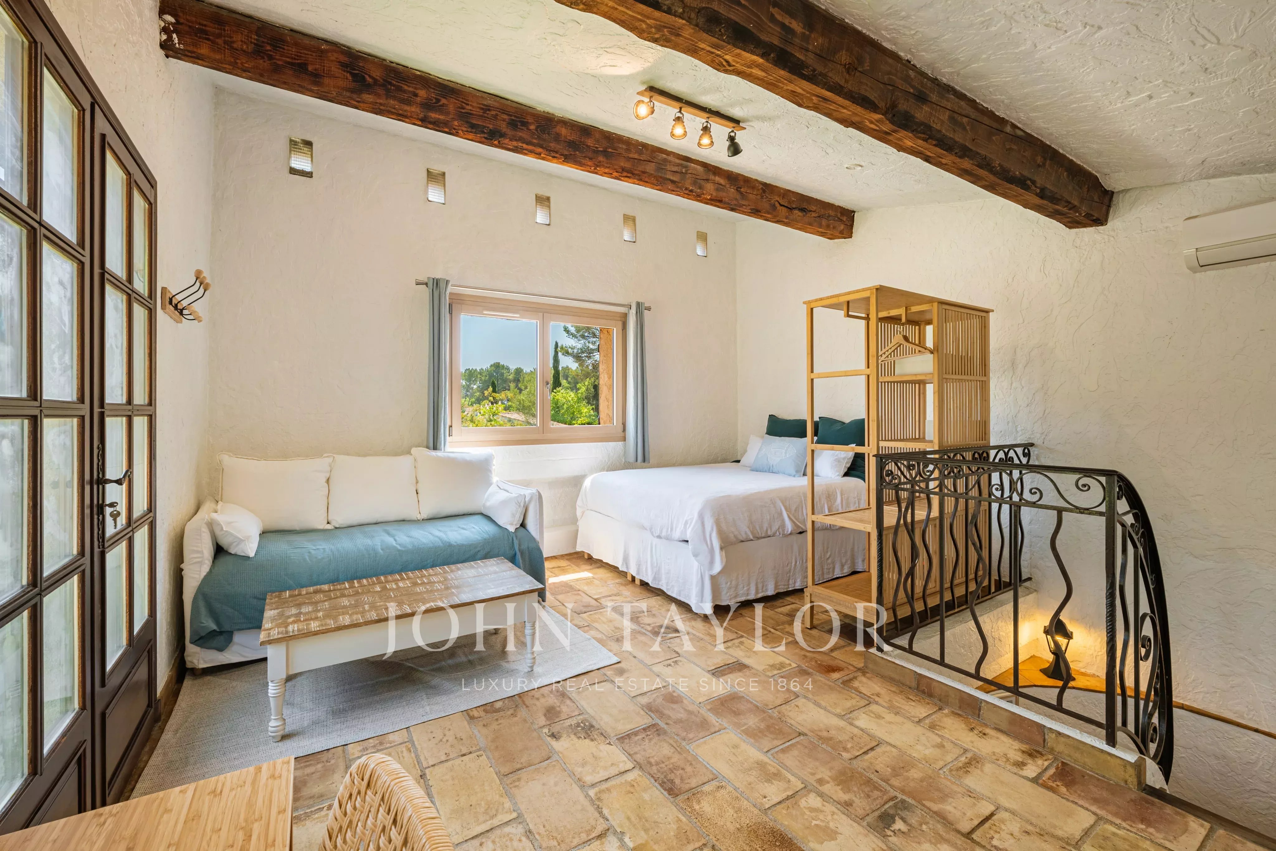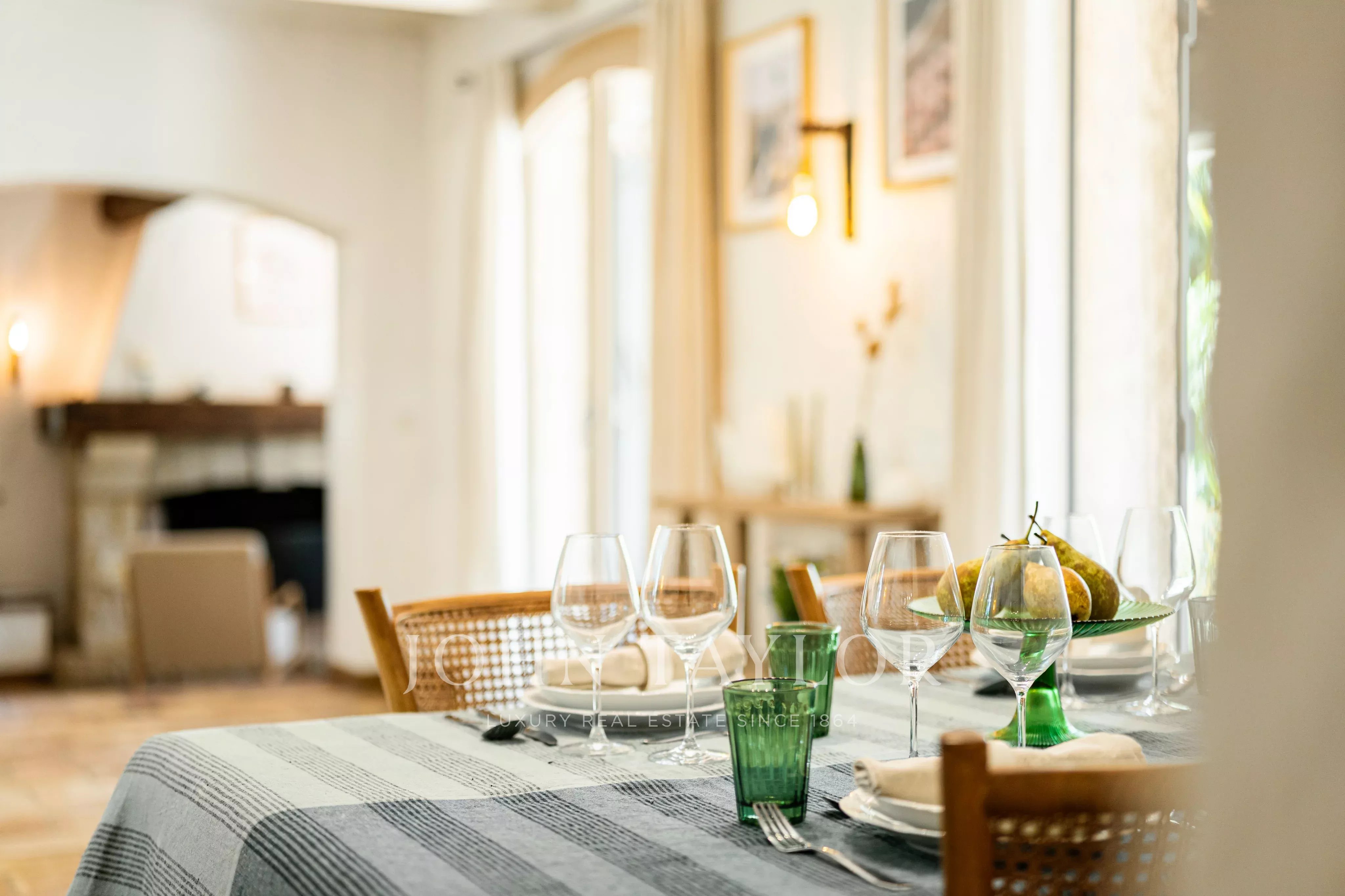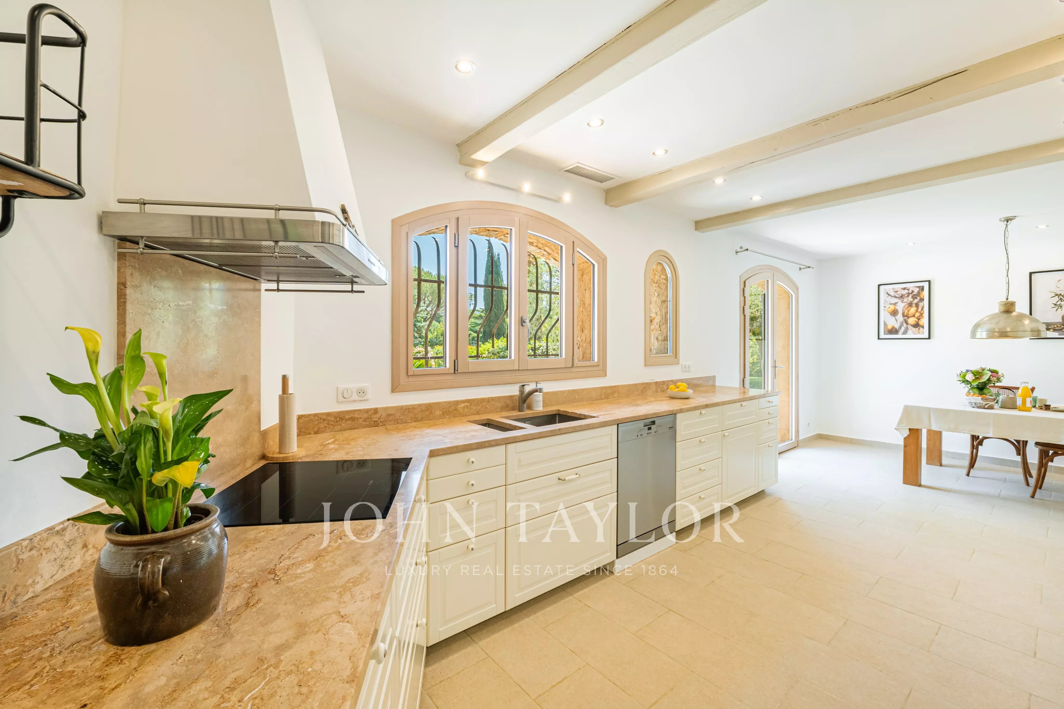 In the heart of a private and secure estate, an elegant single-story Provençal mas, nestled in a peaceful and preserved environment.