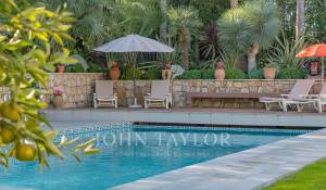 The 1,650 sq.m Mediterranean-style park features a stunning heated pool (11.5 x 5.5 meters) with an electric cover for optimal safety, as well as two garden sheds.