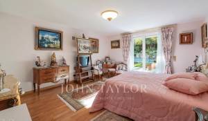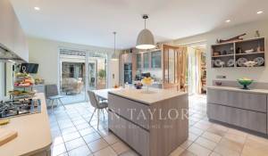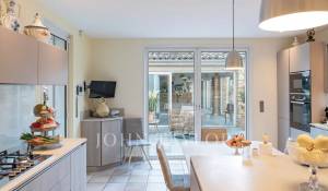 The majestic entrance, with its cathedral-style hall, opens into a spacious and light-filled living area. The living and dining rooms, enhanced by a cozy fireplace, lead to a modern, fully equipped kitchen with a functional pantry. All of these living spaces open onto beautiful terraces, a sublime garden with a swimming pool, and a 45 m² pool house that can be closed and heated during the winter months.
