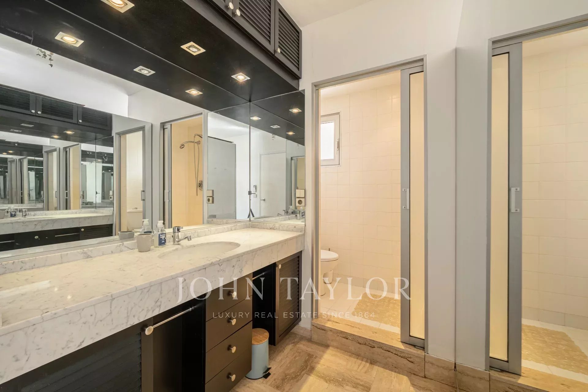 Large villa with a long drive way with mature gardens and trees. The property is currently predominantly all one one level with an open plan living room dining area ,kitchen and back kitchen /laundry. 7 bedrooms 6 bathrooms including a master suite with large terrace bathroom and dressing upstairs. Gardien apartment (80 m2) to the back of the villa on a lower level but could be easily re-introduced to the main villa. veiw of Mougins village .Multiple parking spaces .There is a tennis court (on the cadastre) but currently in need of repair .Large pool . This property would benefit from renovation.There multiple possibilities available.