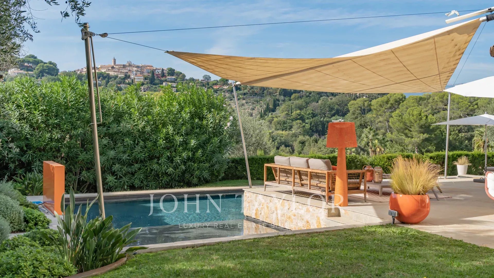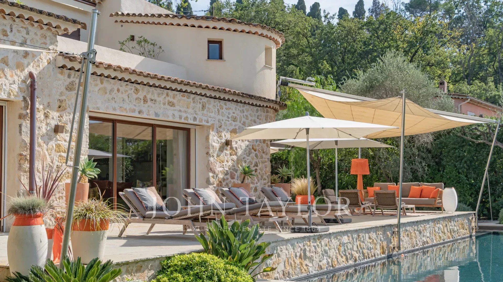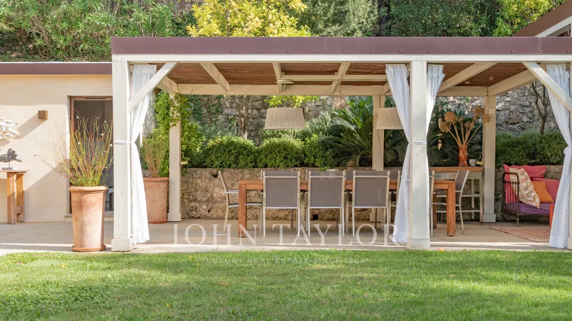 Located just 1 km from the village of Mougins, renowned for its art galleries and gastronomic restaurants, this villa, nearby the Pablo Picasso property, enjoys a residential setting in the highly sought-after area of La Chapelle Notre-Dame-de-vie.