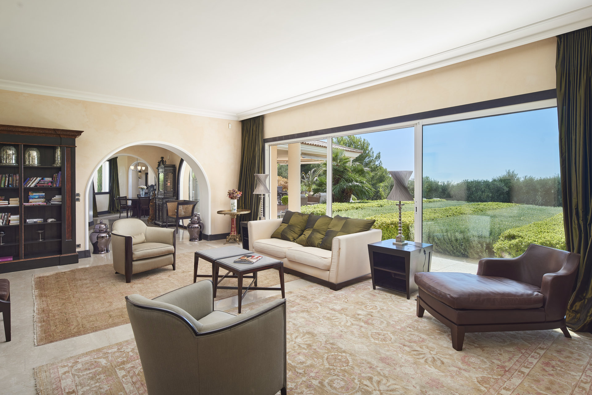 - Large living room with fireplace, opening onto a terrace.