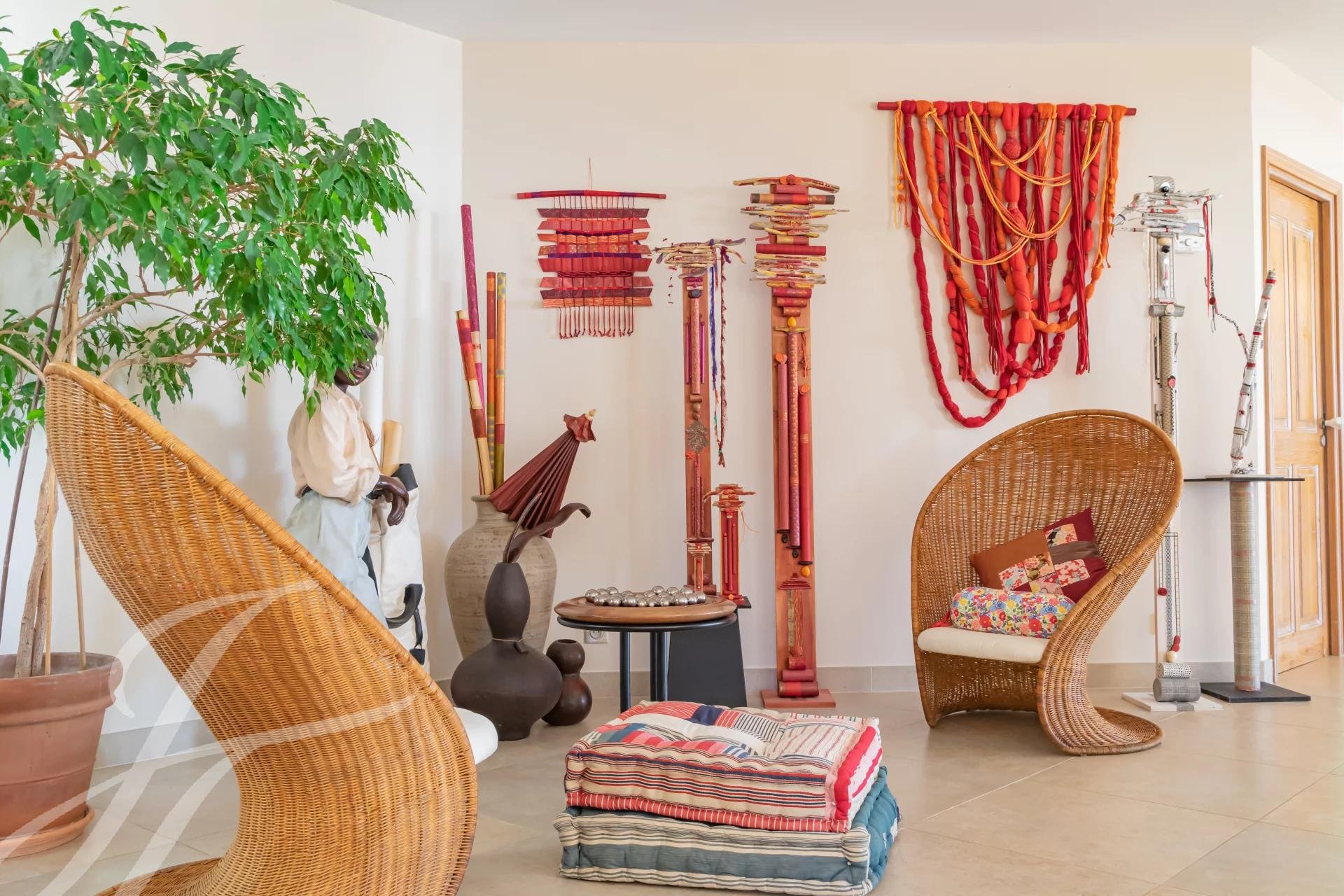 . a large living/dining room (approx. 105 sq.m), very welcoming, bathed in light and sunshine through the many bay windows opening onto the outdoor space consisting of a large semi-sheltered circular terrace,