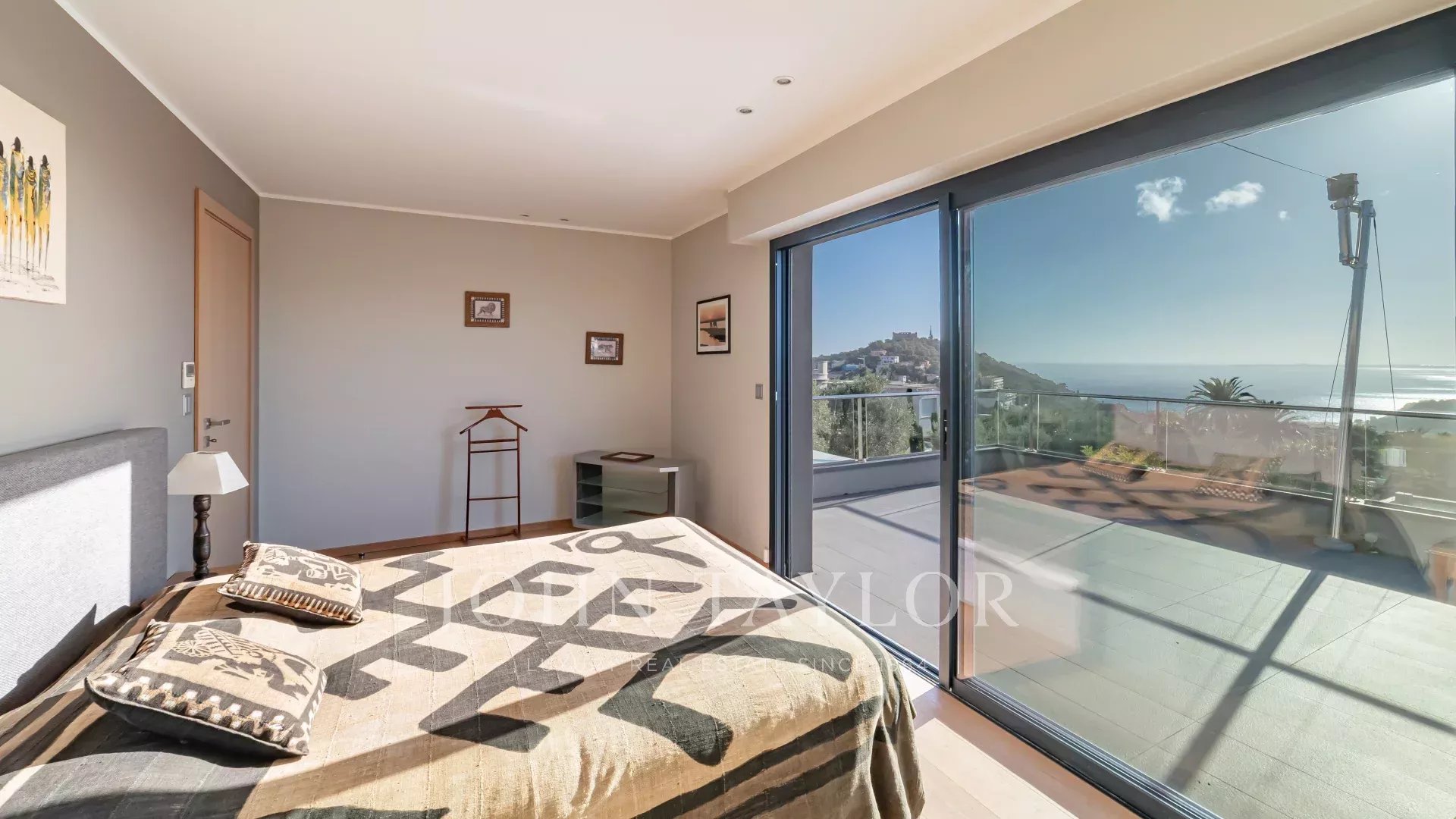 This property is located in a sought-after neighborhood on the border of Nice and Villefranche-sur-mer. It overlooks the sea as far as the Esterel, the mountains of the Préalpes d'Azur and the bay of Villefranche. It's a 10-minute walk from the local shops at Col de Villefranche.