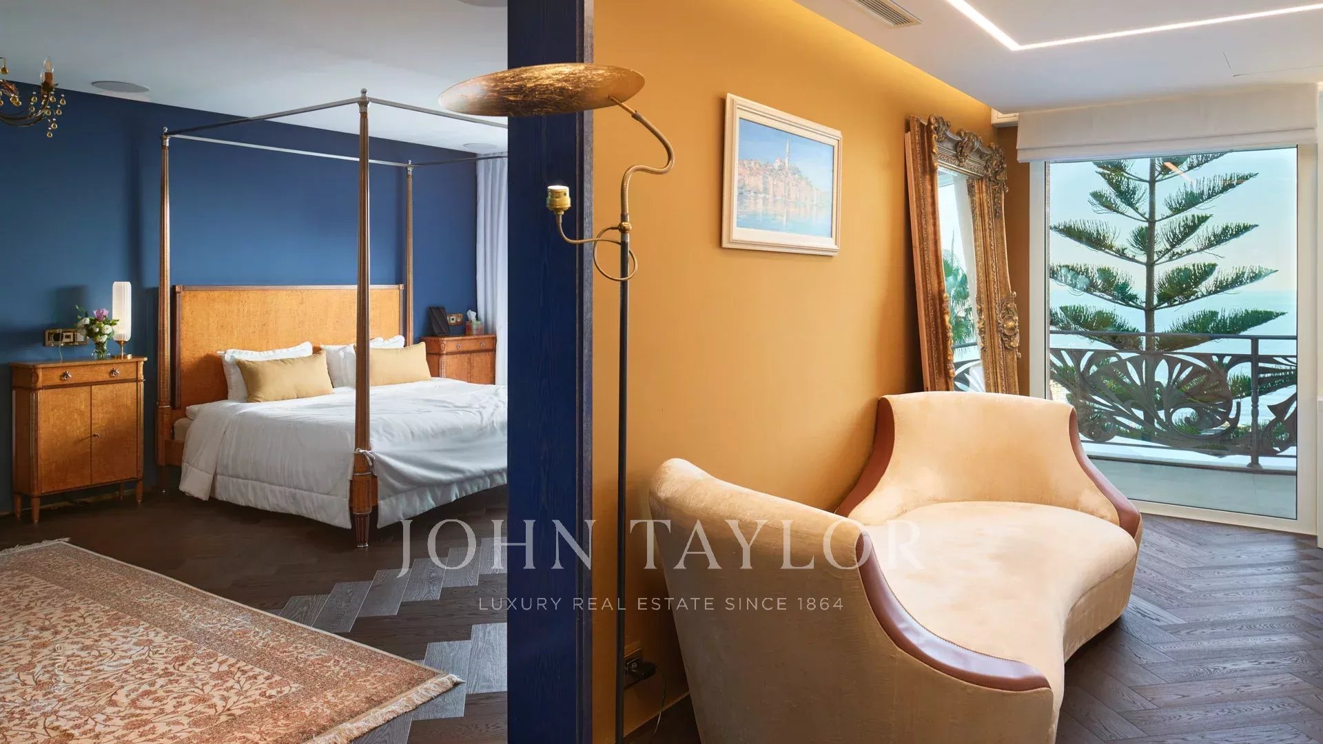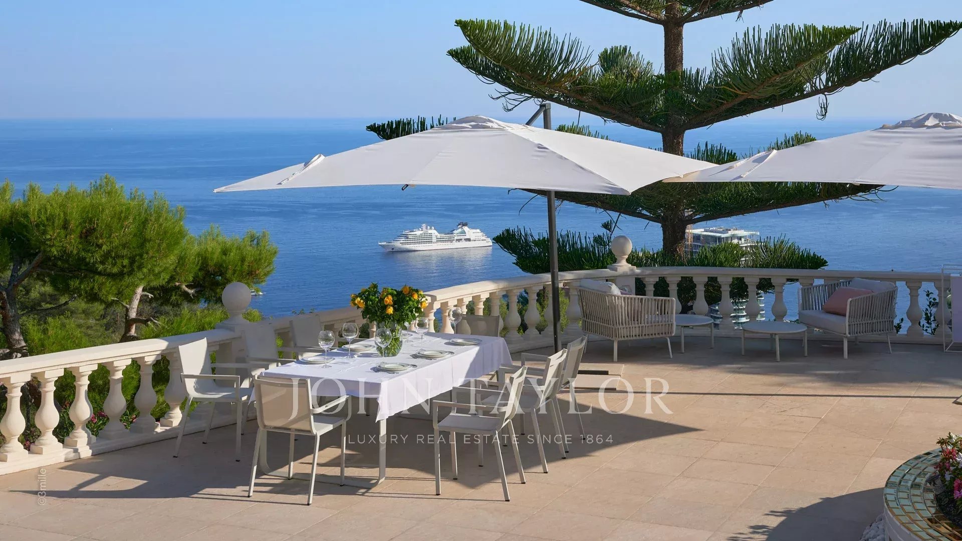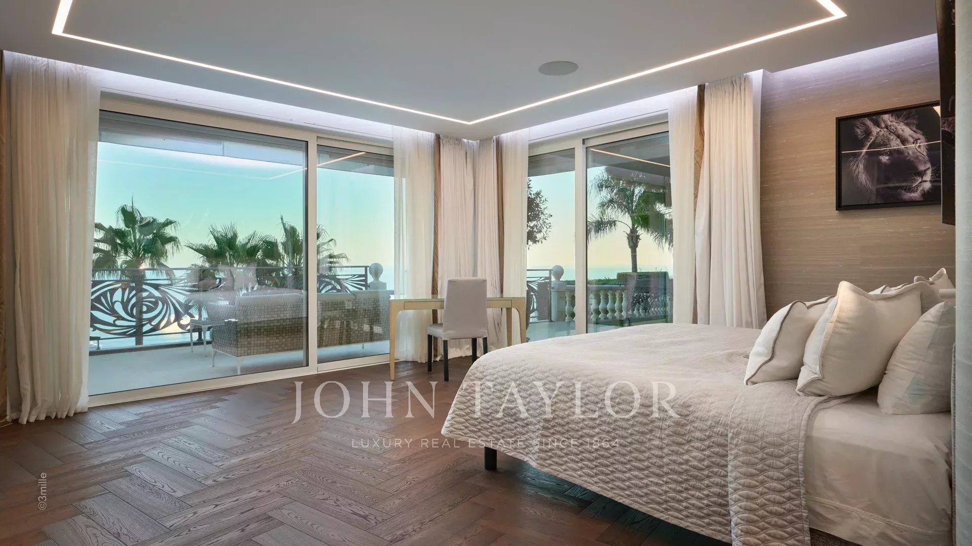 The four main bedrooms offer panoramic views of the Mediterranean Sea, creating a peaceful and intimate atmosphere.
