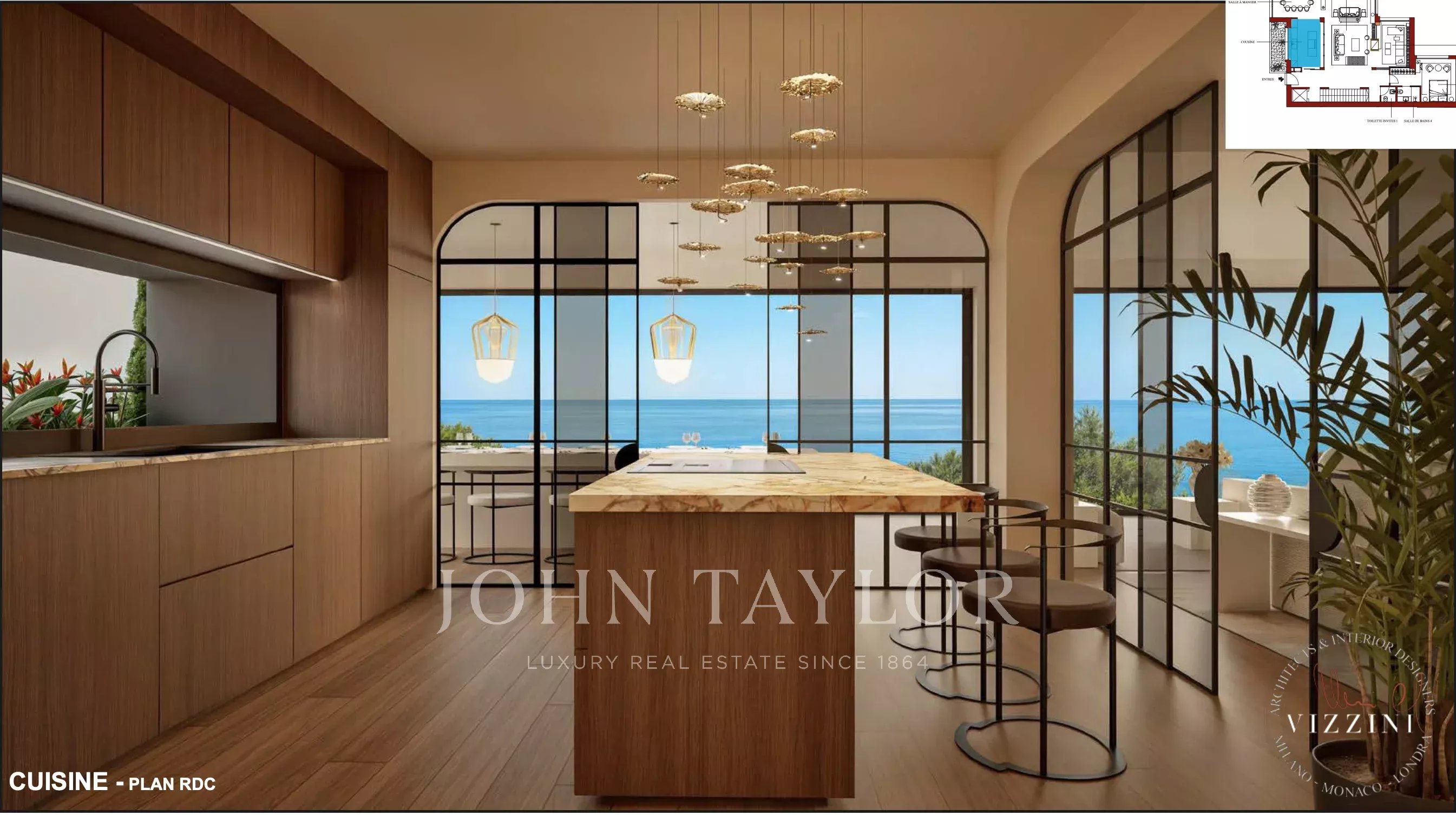 Top-of-the-range, sea-view kitchen, perfectly equipped and elegantly designed