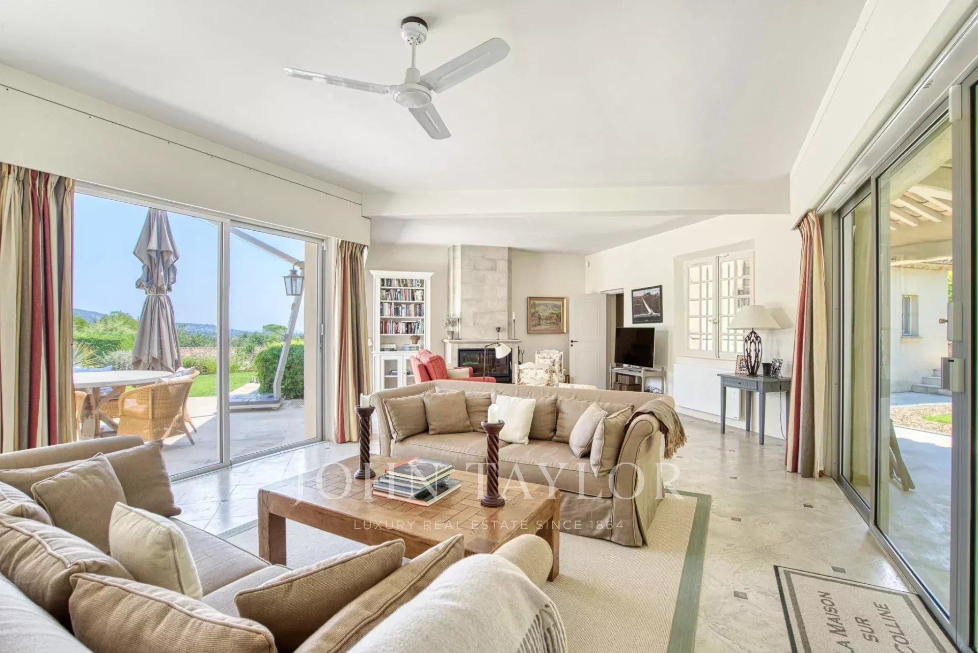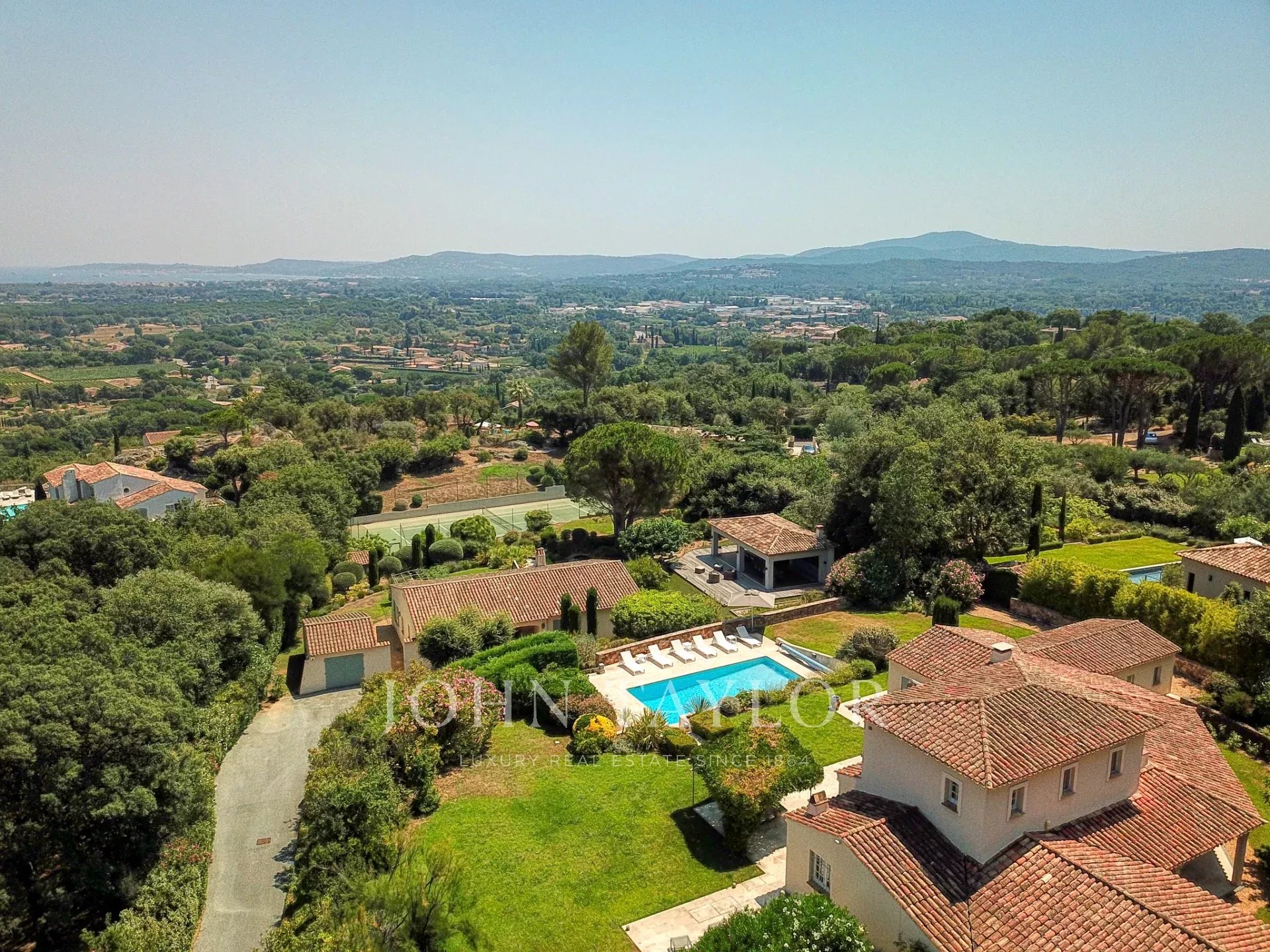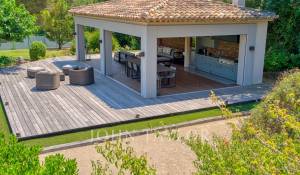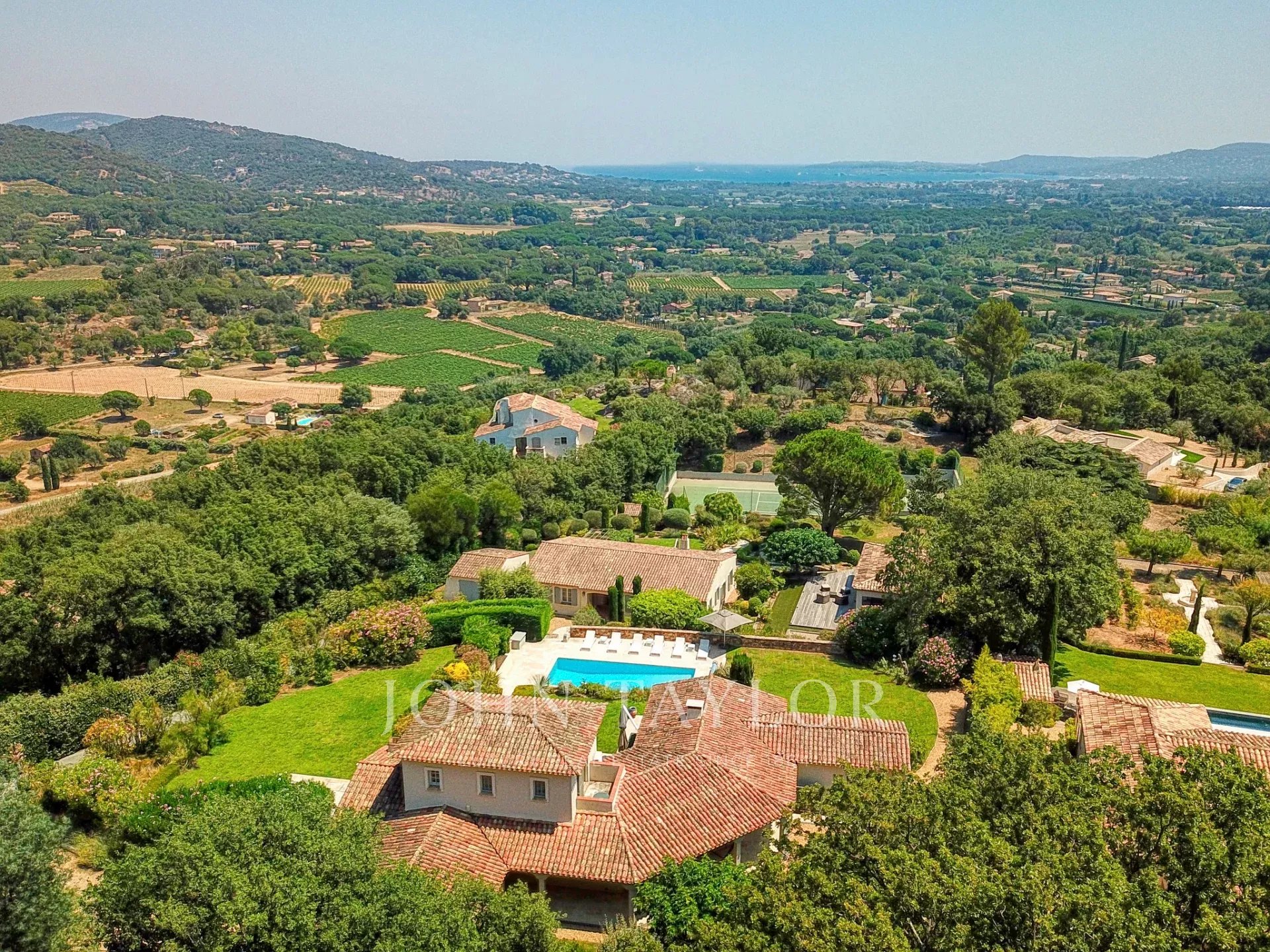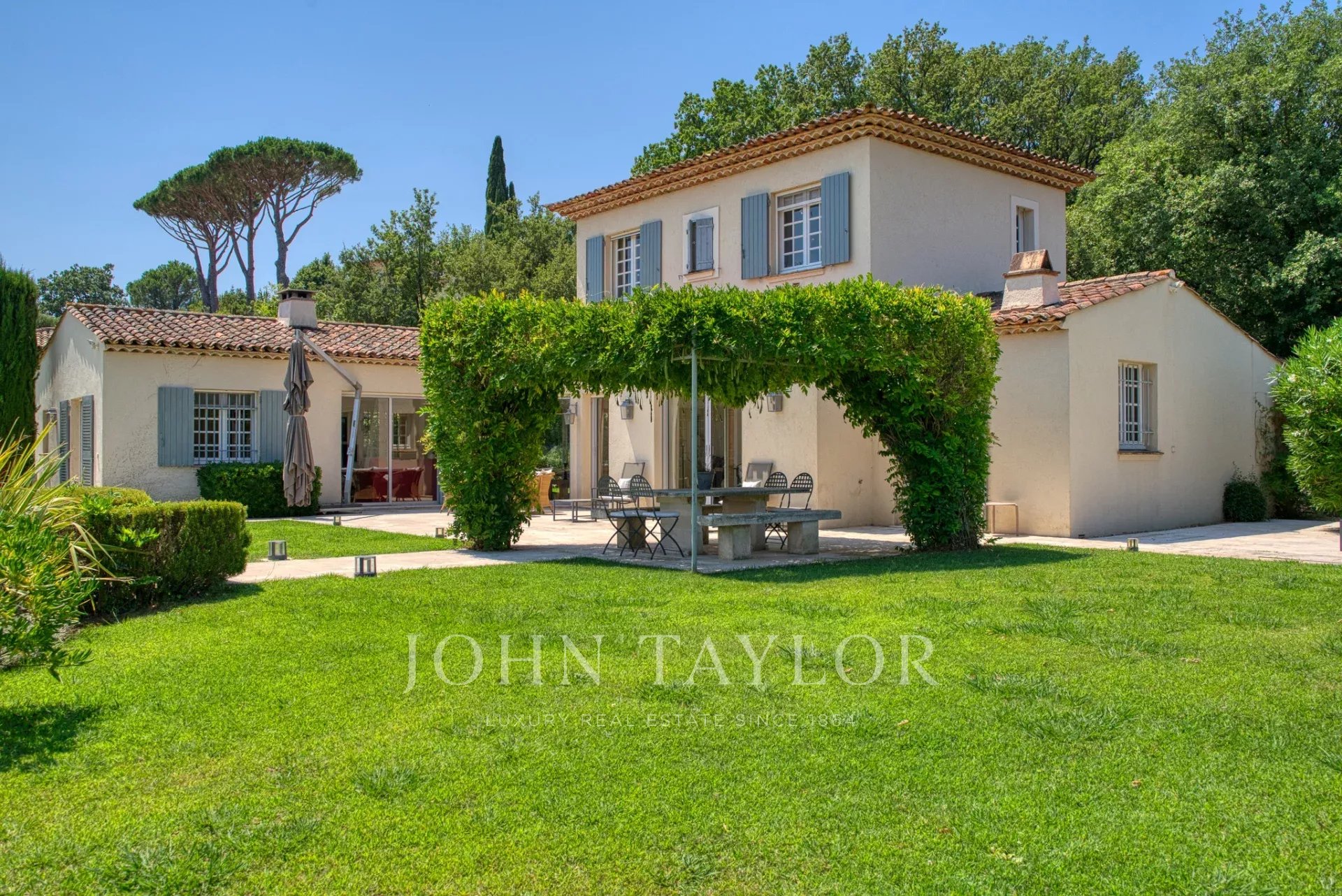Nestled in a small, secure estate close to the center of the village of Grimaud, this property comprises a main villa and a guest villa, complemented by a tennis court, a pétanque court, a heated swimming pool, a garage and above all a beautiful outdoor space serving as summer kitchen and living room.