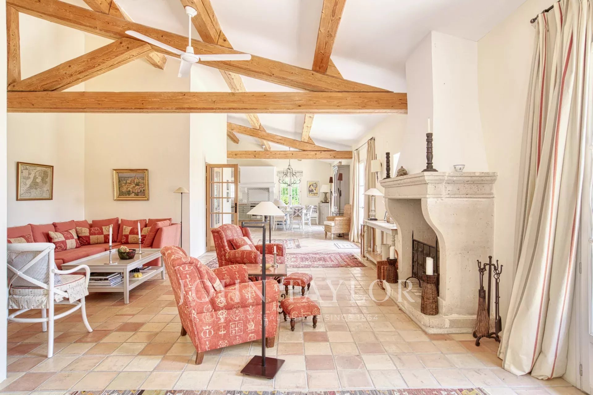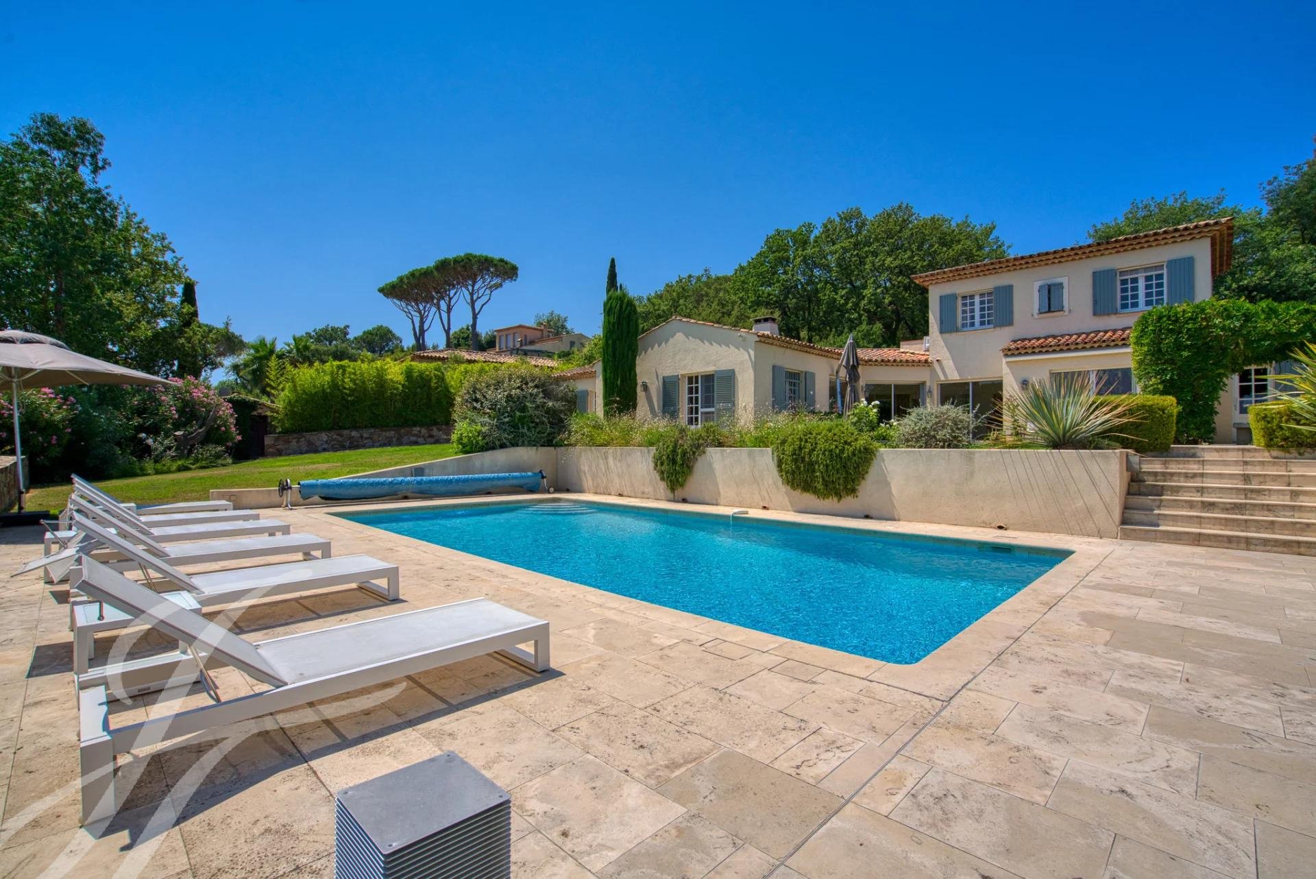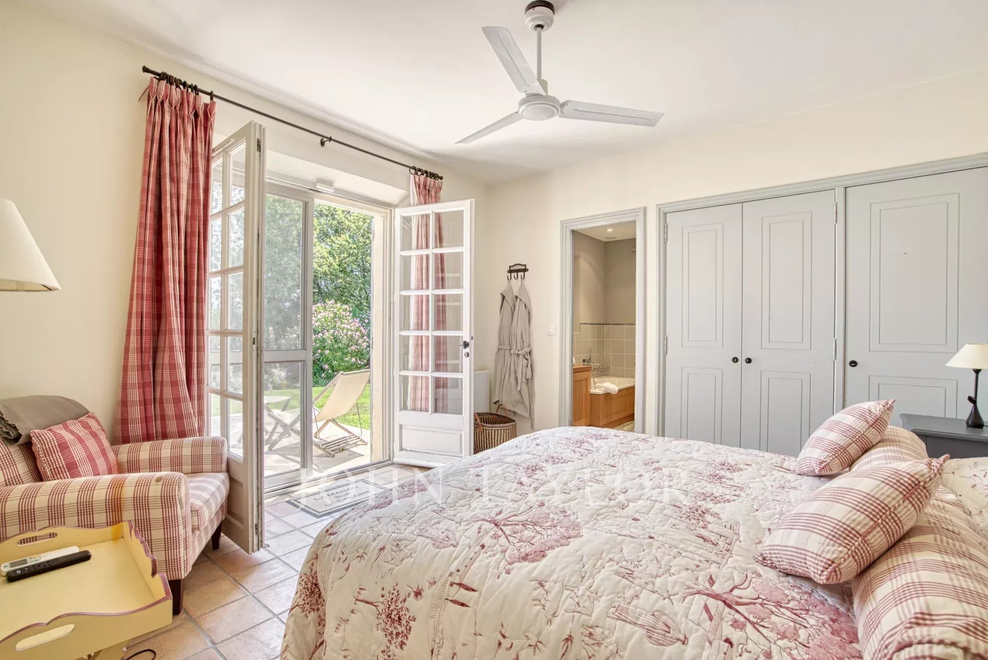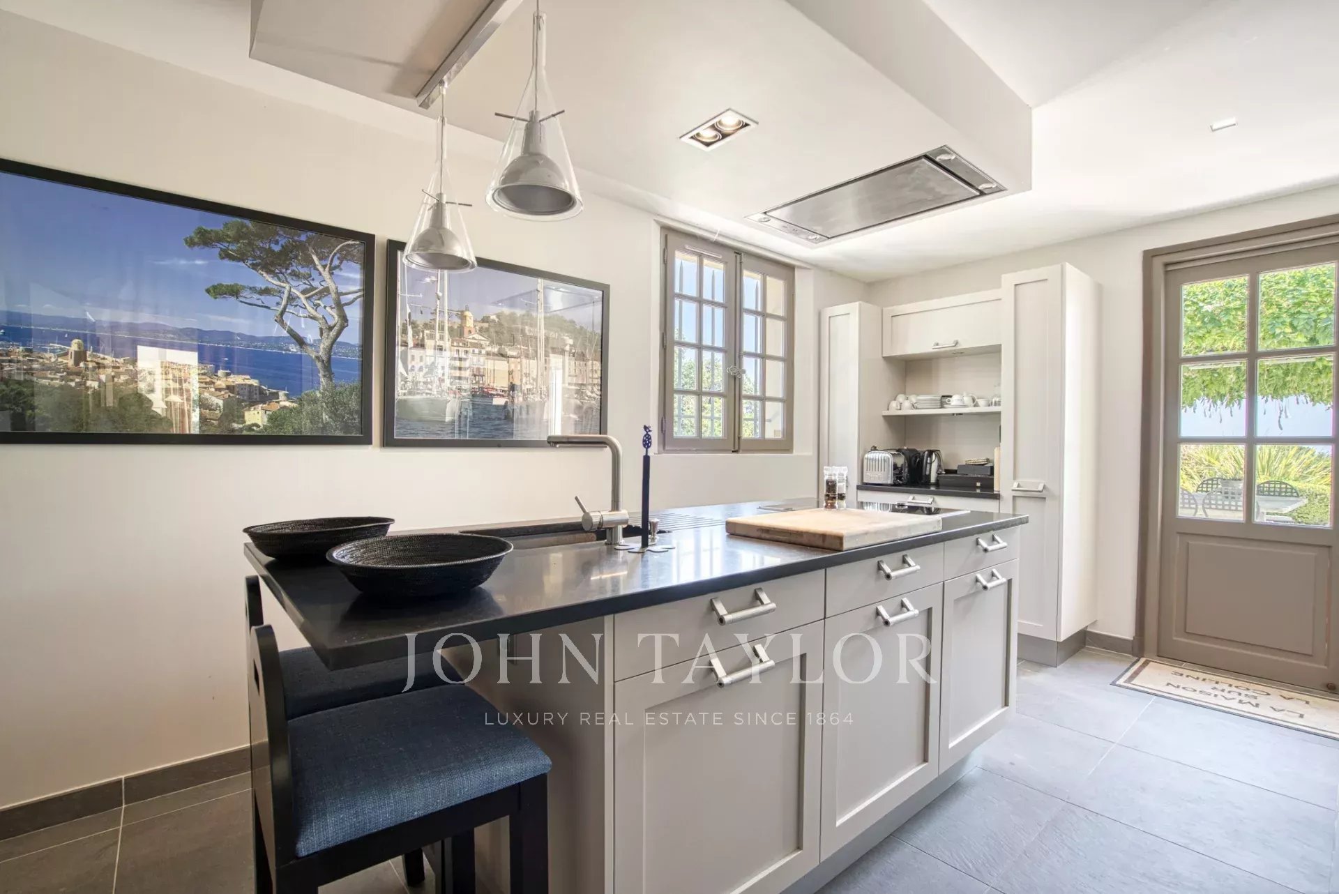 Nestled in a small, secure estate close to the center of the village of Grimaud, this property comprises a main villa and a guest villa, complemented by a tennis court, a pétanque court, a heated swimming pool, a garage and above all a beautiful outdoor space serving as summer kitchen and living room.