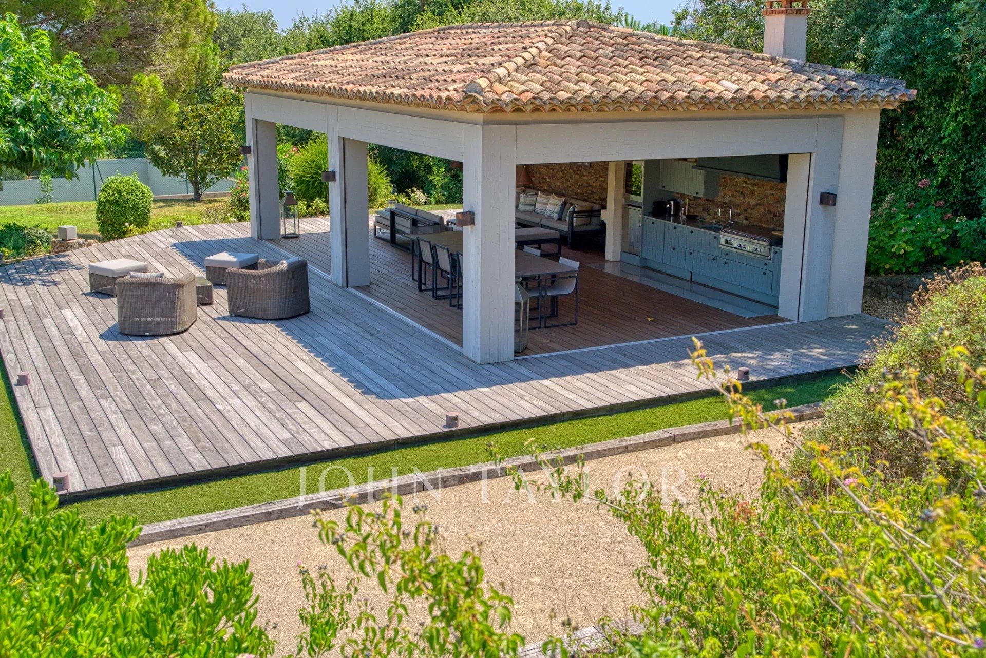 The main villa features 5 en suite bedrooms and 1 master suite upstairs with dressing room and tropézienne terrace offering a magical view of the Gulf of St Tropez.