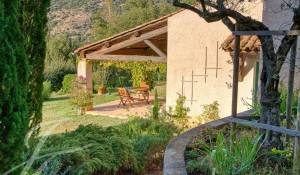 Charming Provencal villa composed of an entrance, a large living room with fireplace and cathedral ceiling, an equipped kitchen, a back kitchen, plenty of storage, upstairs, 2 bedrooms of over 20m² each with en-suite bathroom, tropézienne terrace, plus an independent studio of approximately 60 m², all on large grounds of 2,500 m² suitable for swimming pools with carports, residual floor space of approximately 135 m².