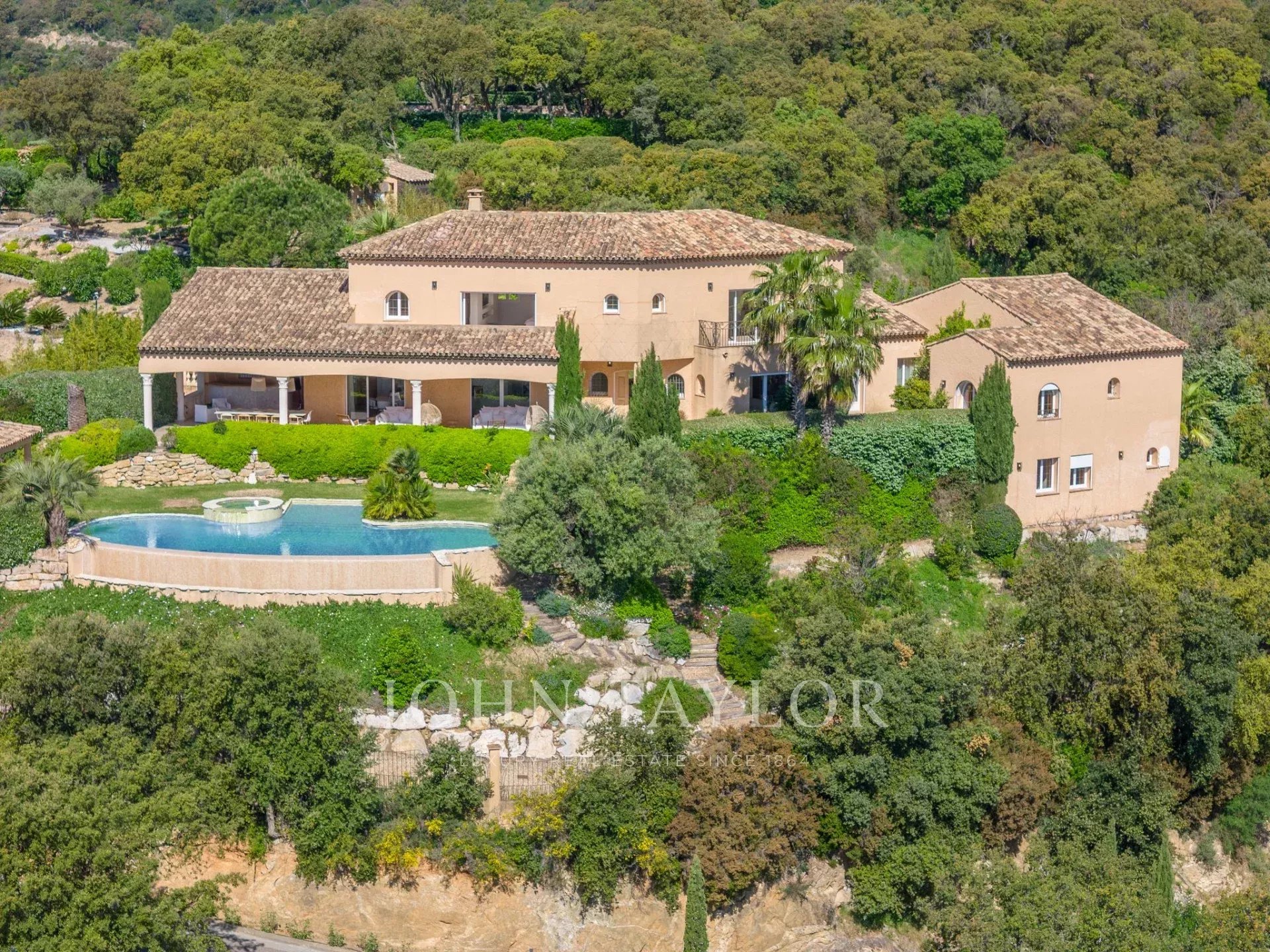 Nestled in a peaceful, sought-after area of Grimaud, this sumptuous villa of character captivates with its charm and timeless elegance. Covering an area of 464 m², it offers no fewer than 12 rooms bathed in light, and opens onto an exceptional panoramic view embracing the sea and the old village of Saint-Tropez.