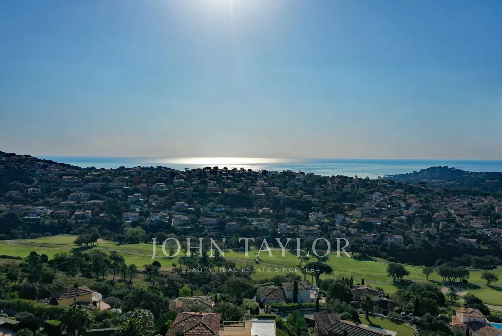 Located in a dominant position over the Sainte-Maxime golf course, with a beautiful view of the sea, the villa of approximately 250m² offers a living and dining room opening onto a large south-facing terrace, a recent fitted kitchen and 4 bedrooms all equipped with bathrooms or shower rooms, an independent apartment with 2 bedrooms and 1 bathroom.