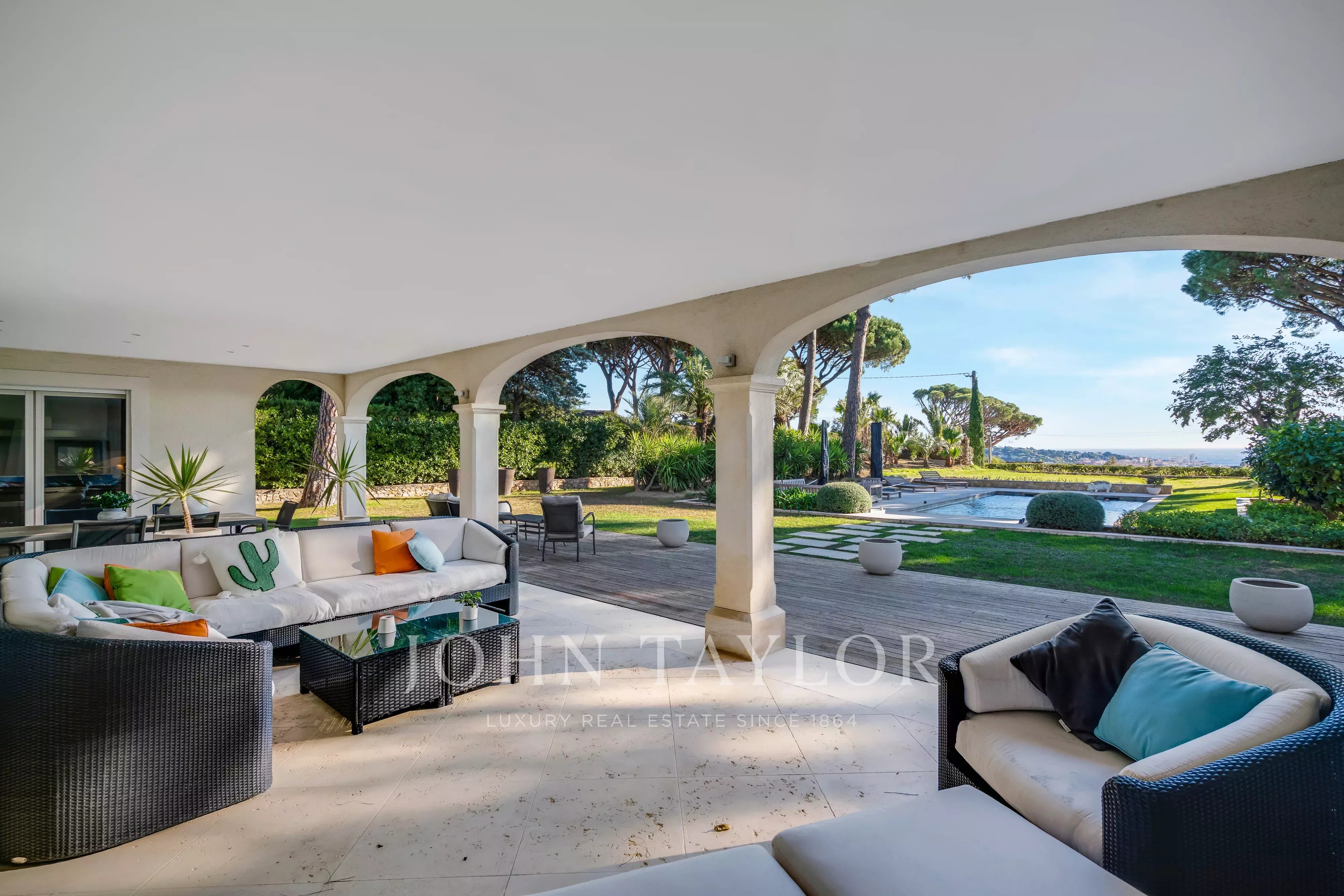 Located in a privileged setting with sea views, this villa offers around 300 m² of living space, set in 5,000 m² of carefully landscaped grounds.
