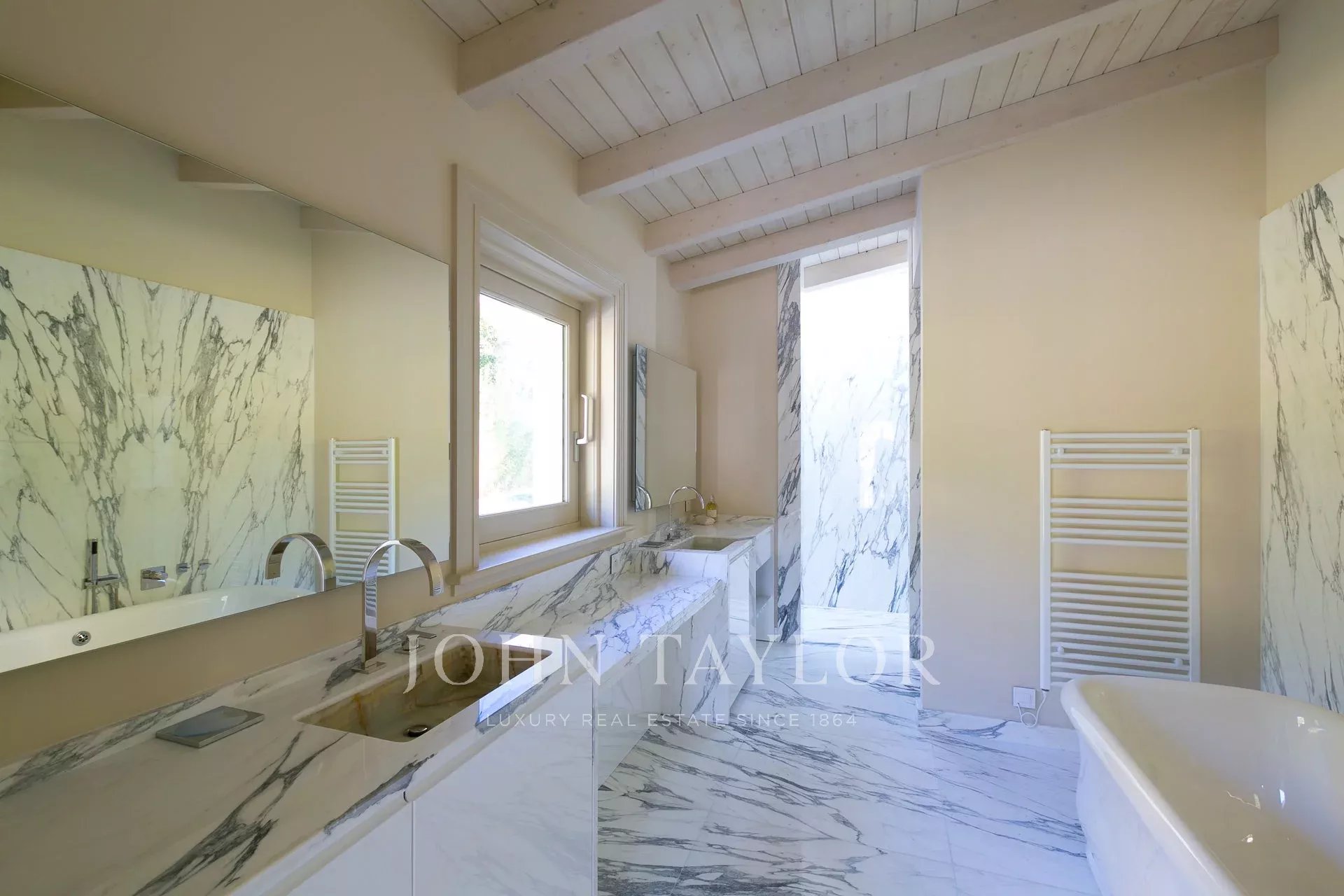 The main villa, equipped with `"smart home' technology, offers a living room / dining room / kitchen (fully fitted with Gaggenau appliances), 6 bedrooms with their bathrooms ensuite, fitness room, spa with hammam and massage room, cinema room, play room, wine cellar.