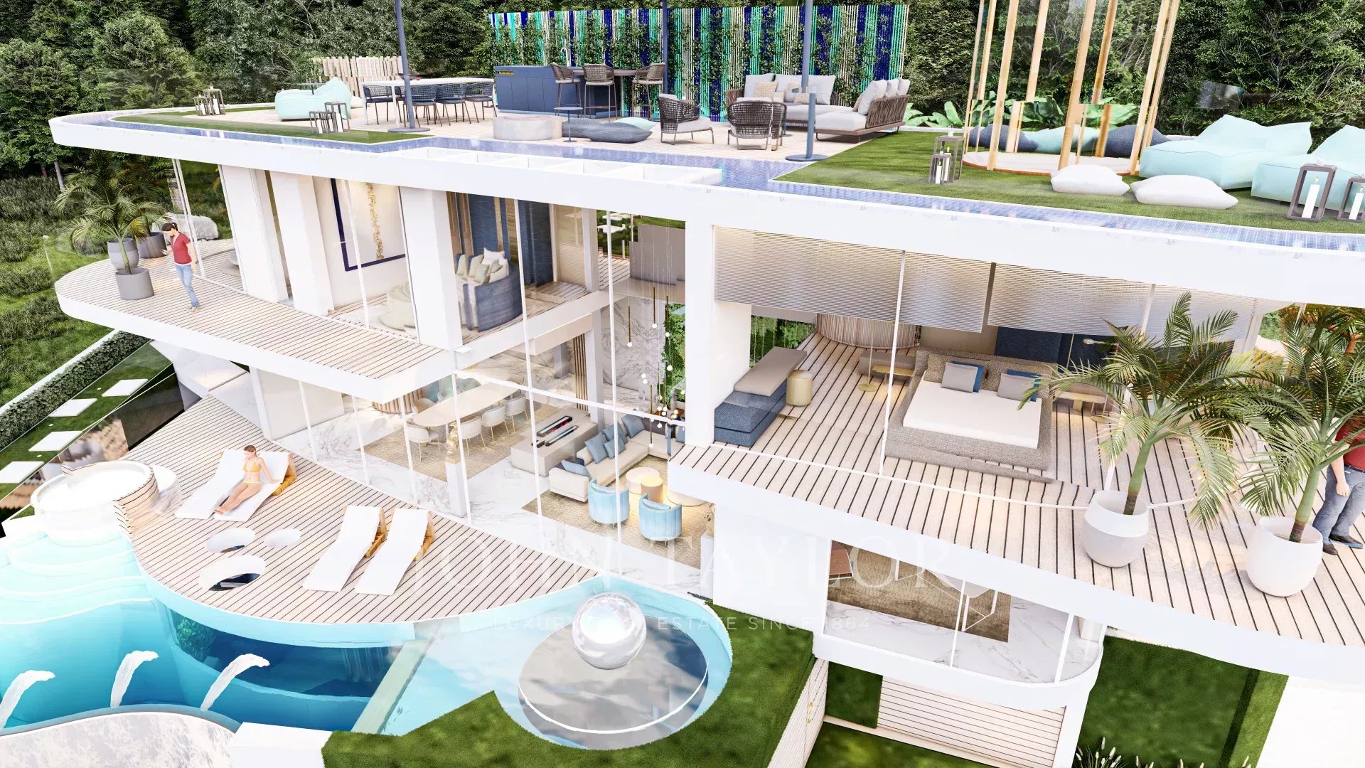 Elegantly designed, this villa will offer vast, light-filled living spaces, large bay windows and curved bedrooms, creating a wide variety of spaces in which to enjoy the surroundings in the utmost comfort and live a unique experience.