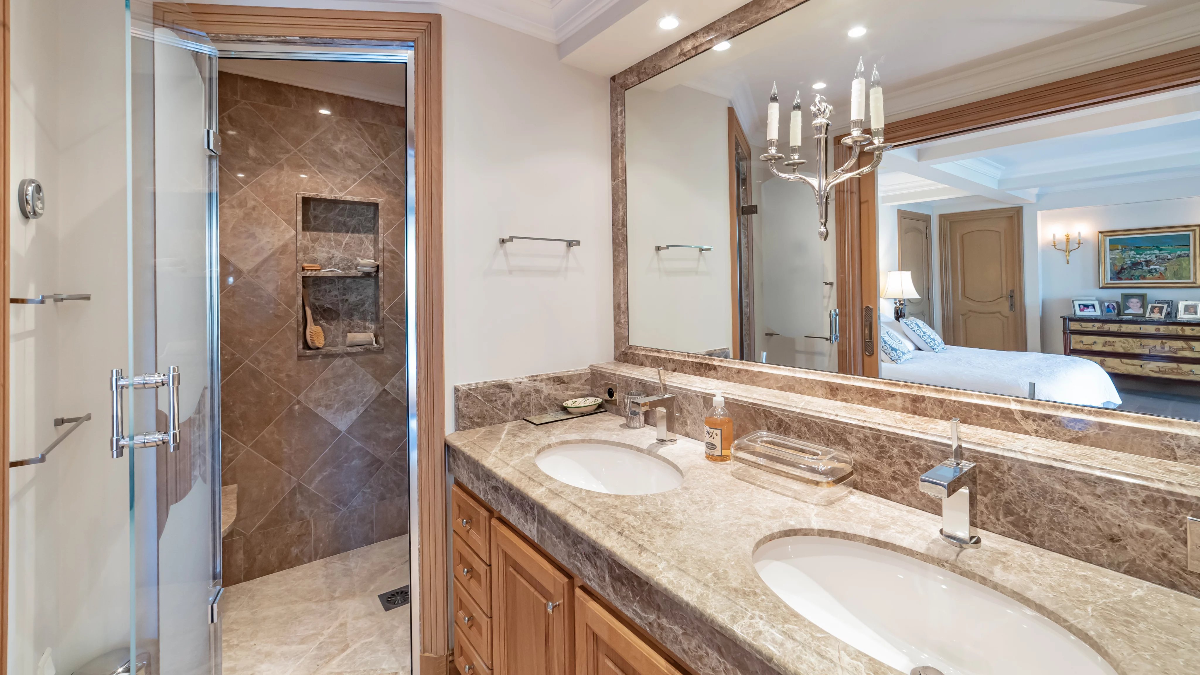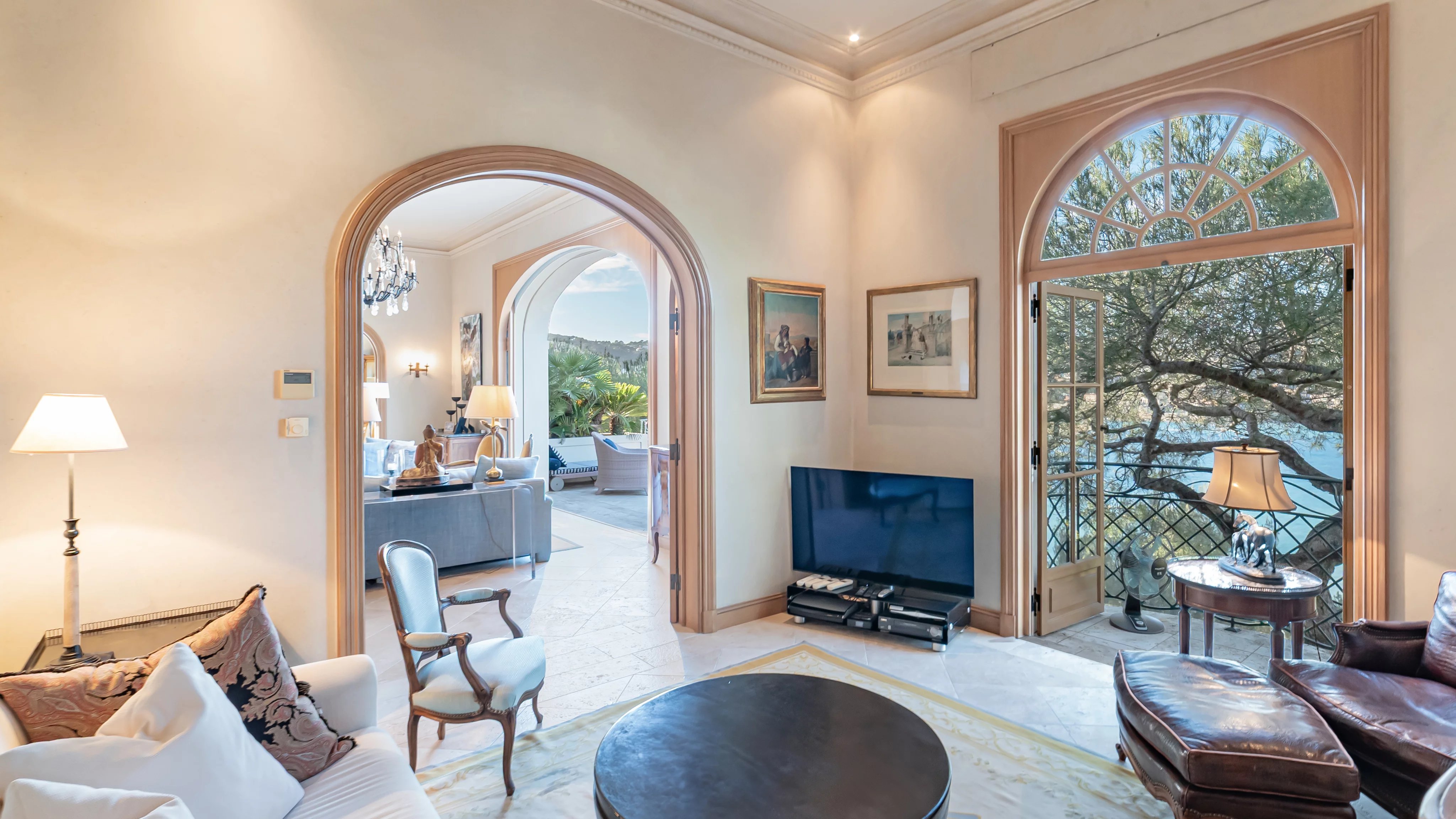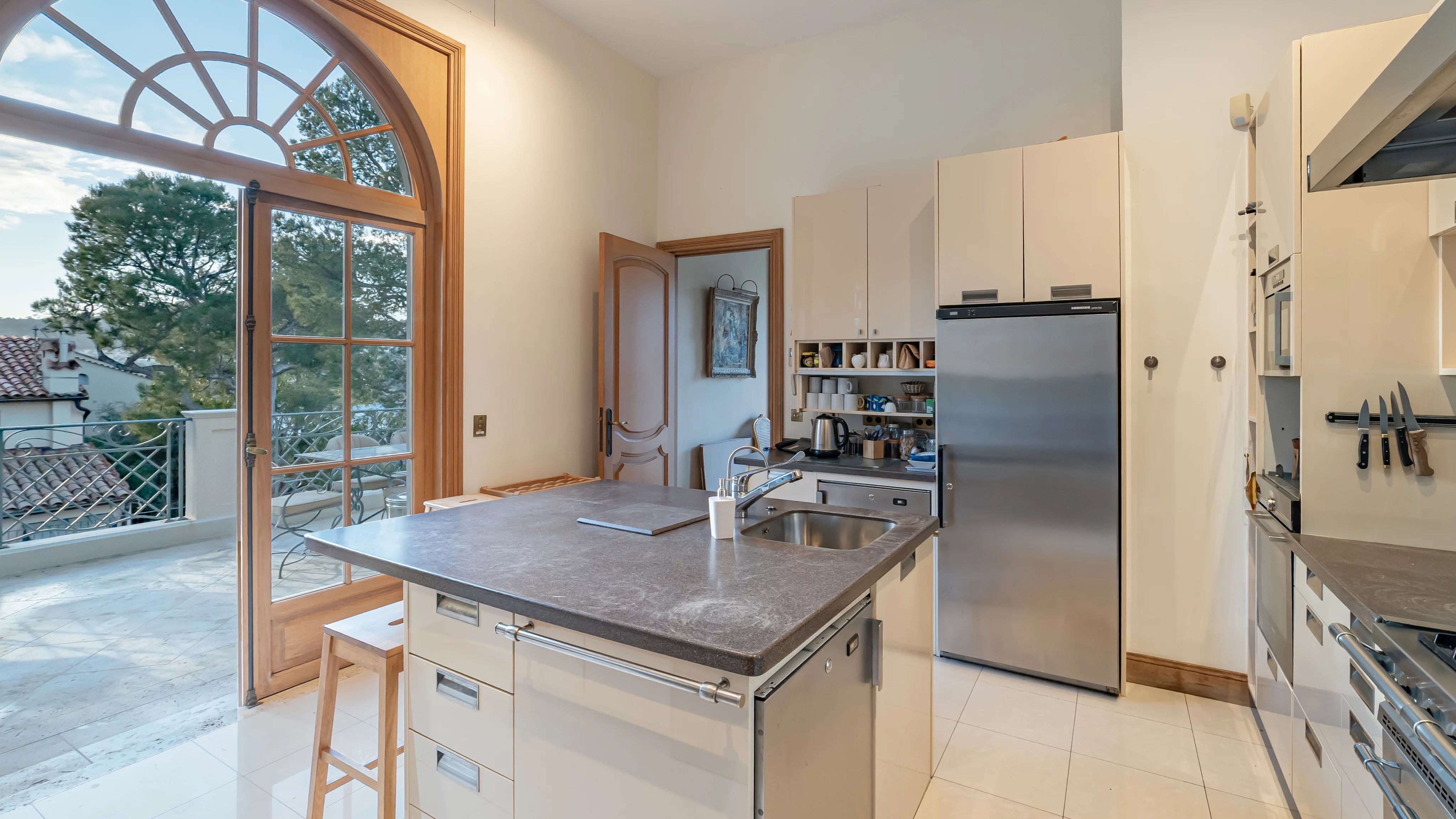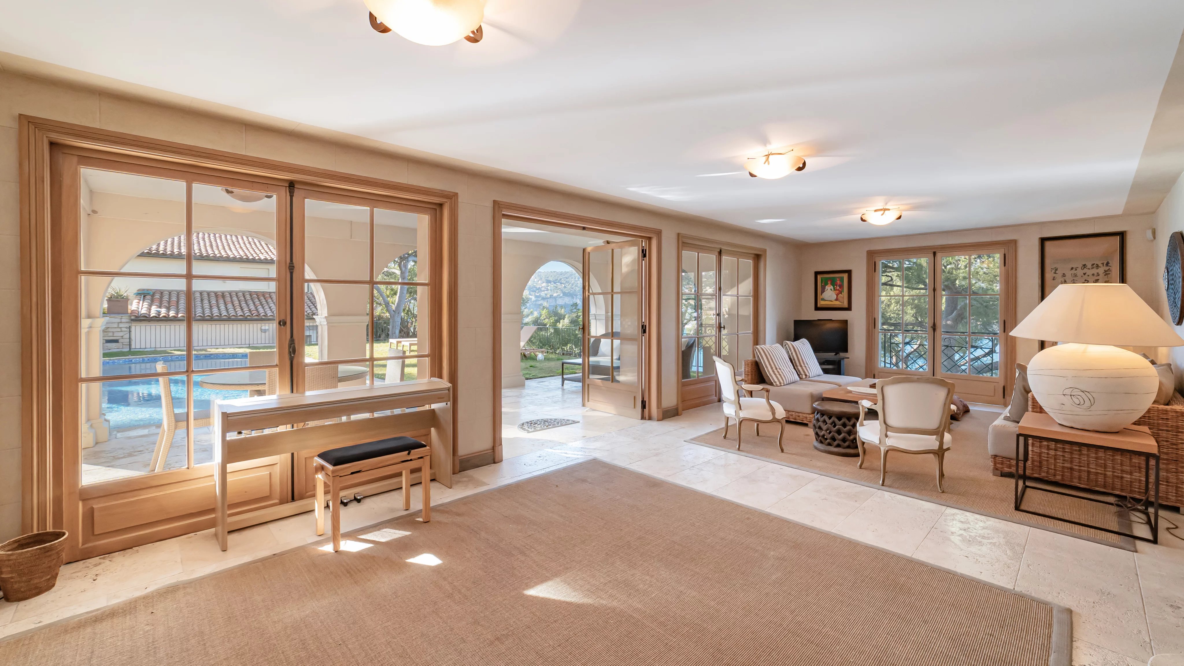 On the garden level, the space is distributed with a large summer living room with kitchen opening onto a vast terrace and the pool, three bedrooms with bath/shower rooms and a laundry room.