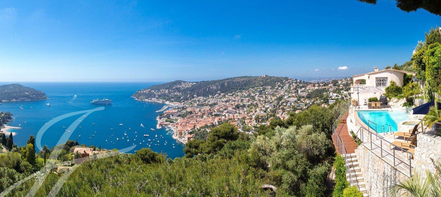 In the heart of a private estate with secure access, this charming neo-Provençal style villa offers a panoramic view of Cap Ferrat, the Villefranche Bay, and the gardens of the famous Villa Leopolda.