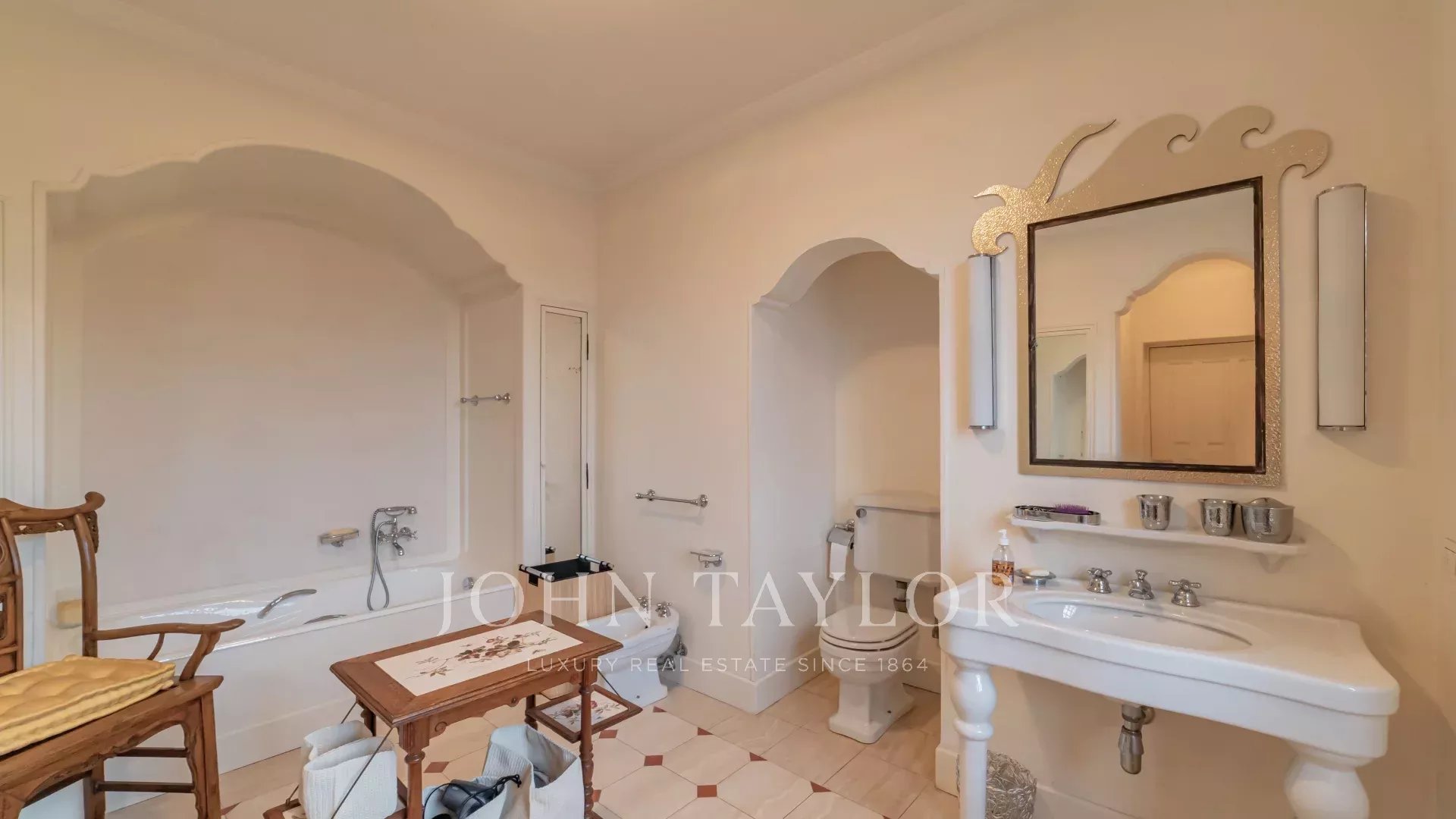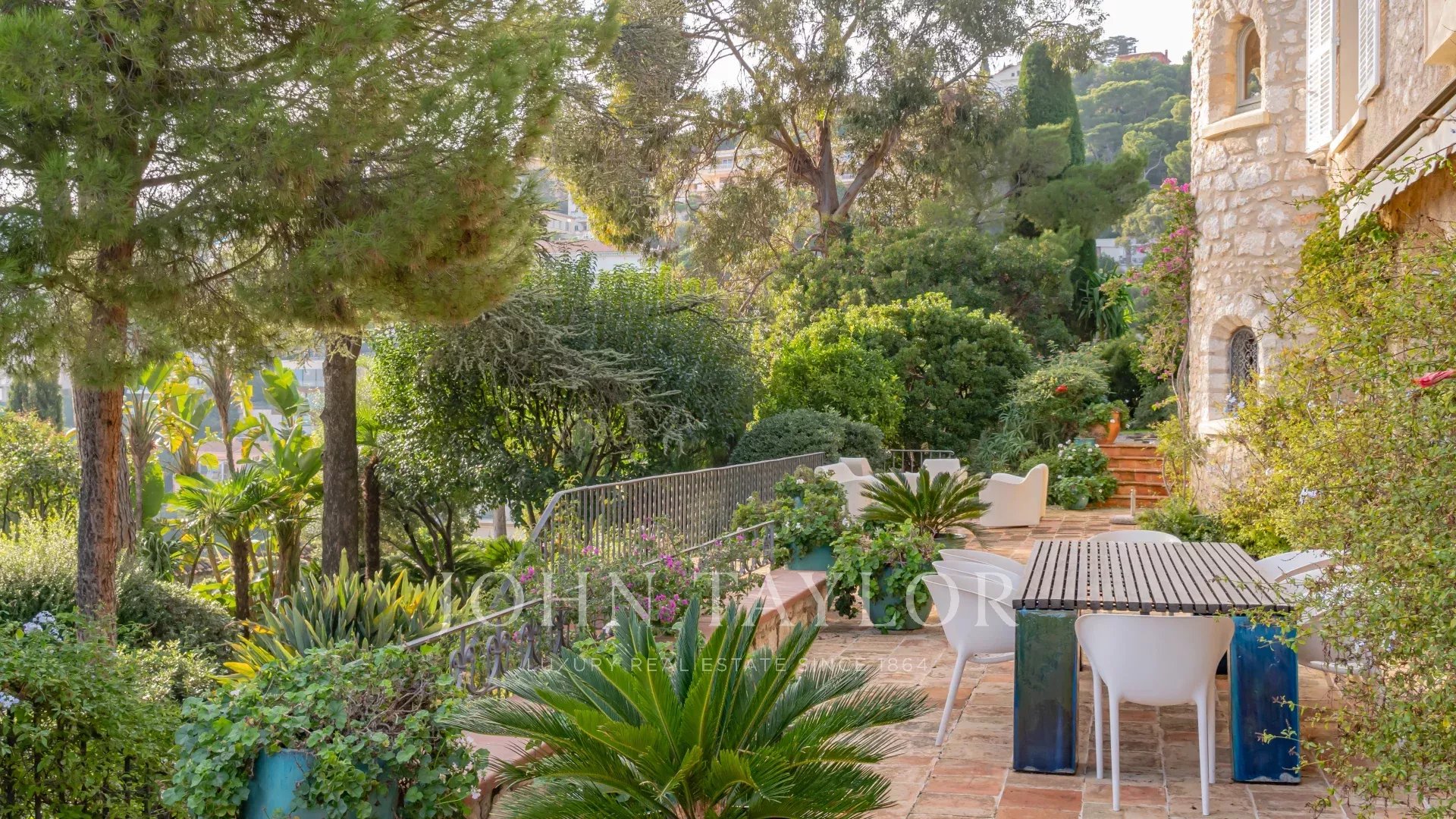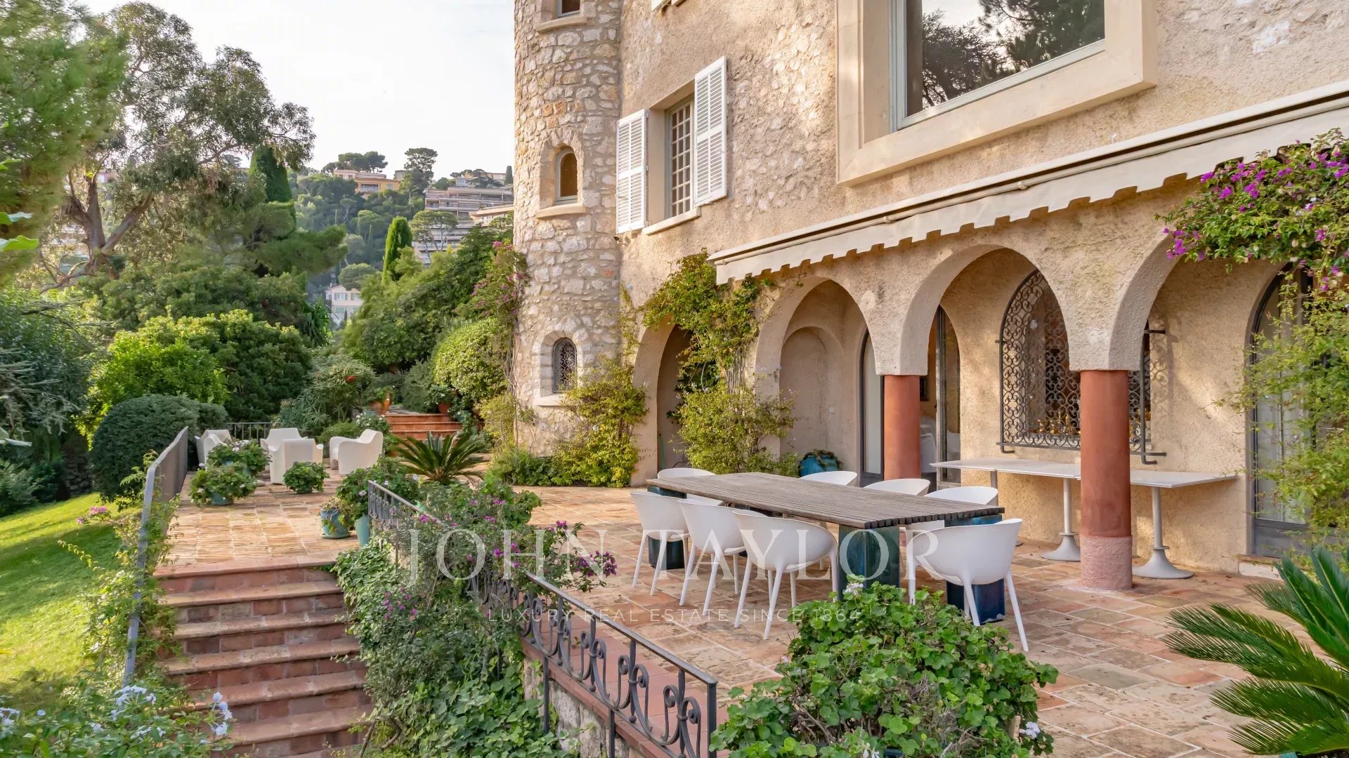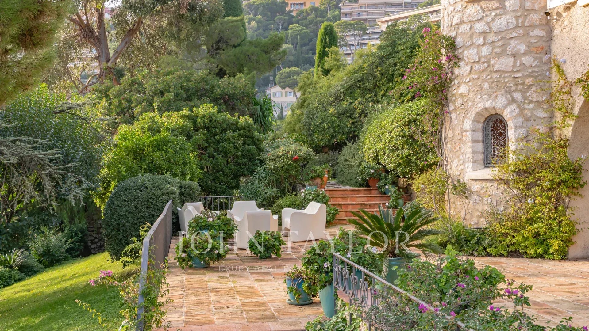 5 bedrooms and 5 bathrooms plus an independent staff apartment. An additional bedroom is located in a separate little tower at the extremity of the garden.