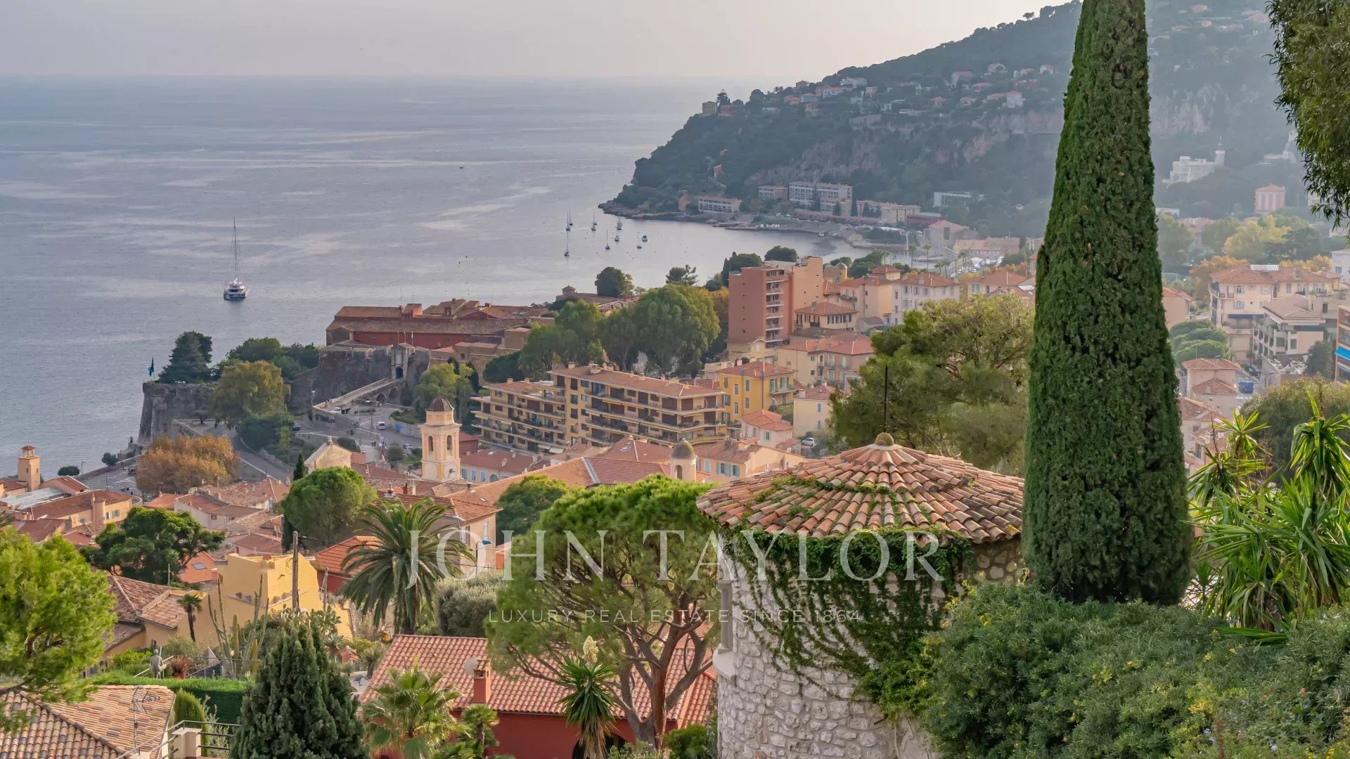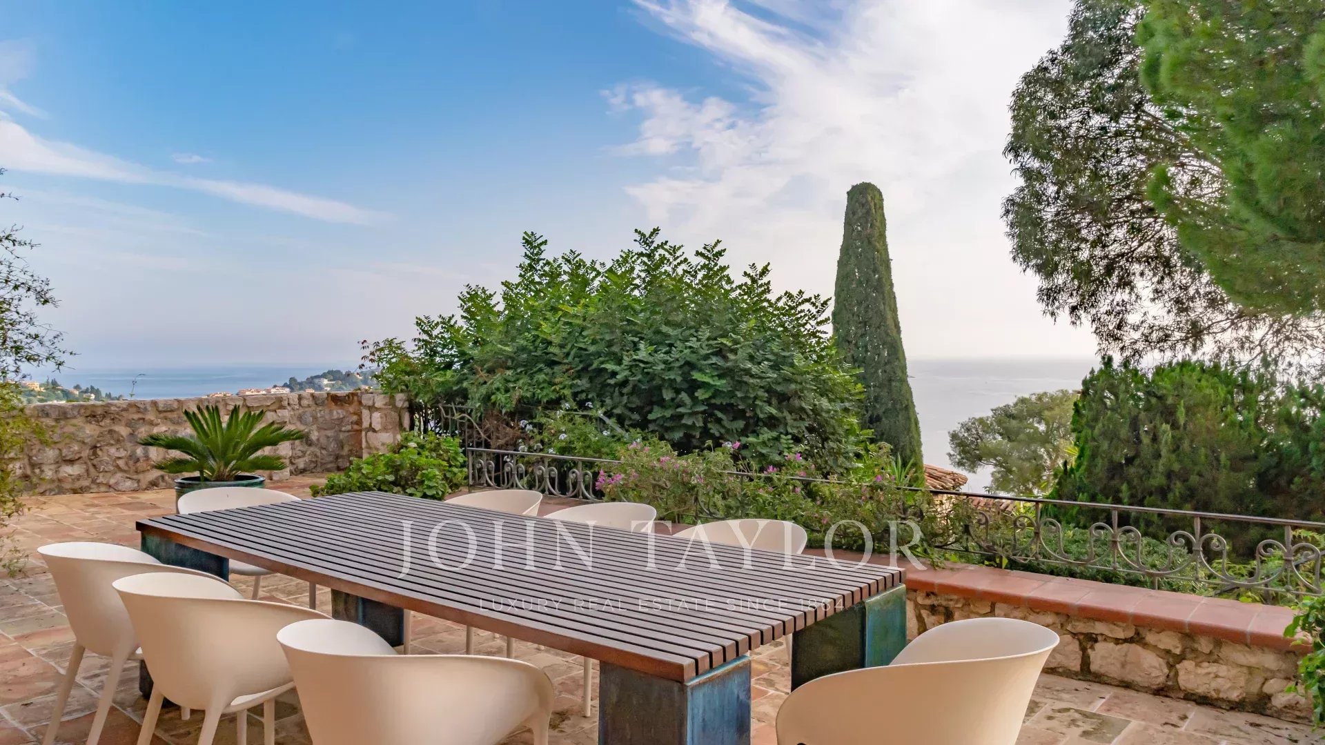The sitting and dining area and also the large outside terrase receiving the summer dining area benefits from the very nice garden, sea and old town view.