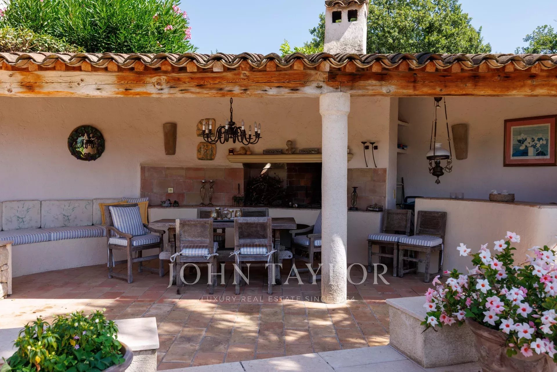 The garden, mostly flat, is beautifully landscaped and offers several areas for relaxation and play. The pool house, close to the villa, offers a sheltered area from the sun at all times and benefits from all the necessary comforts: barbecue, refrigerator, bar and sink.