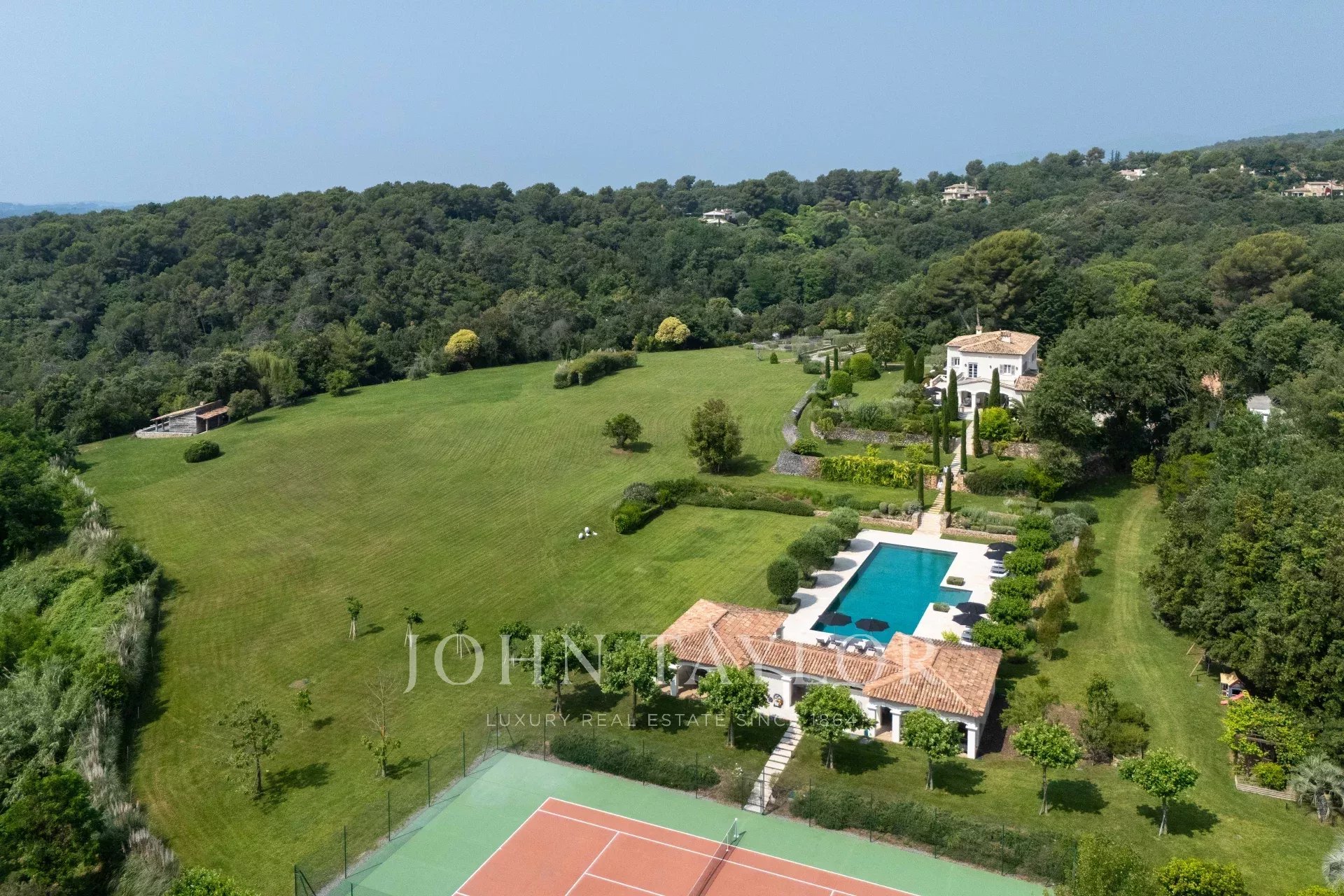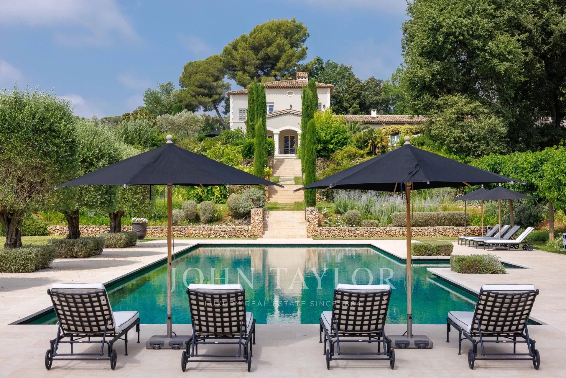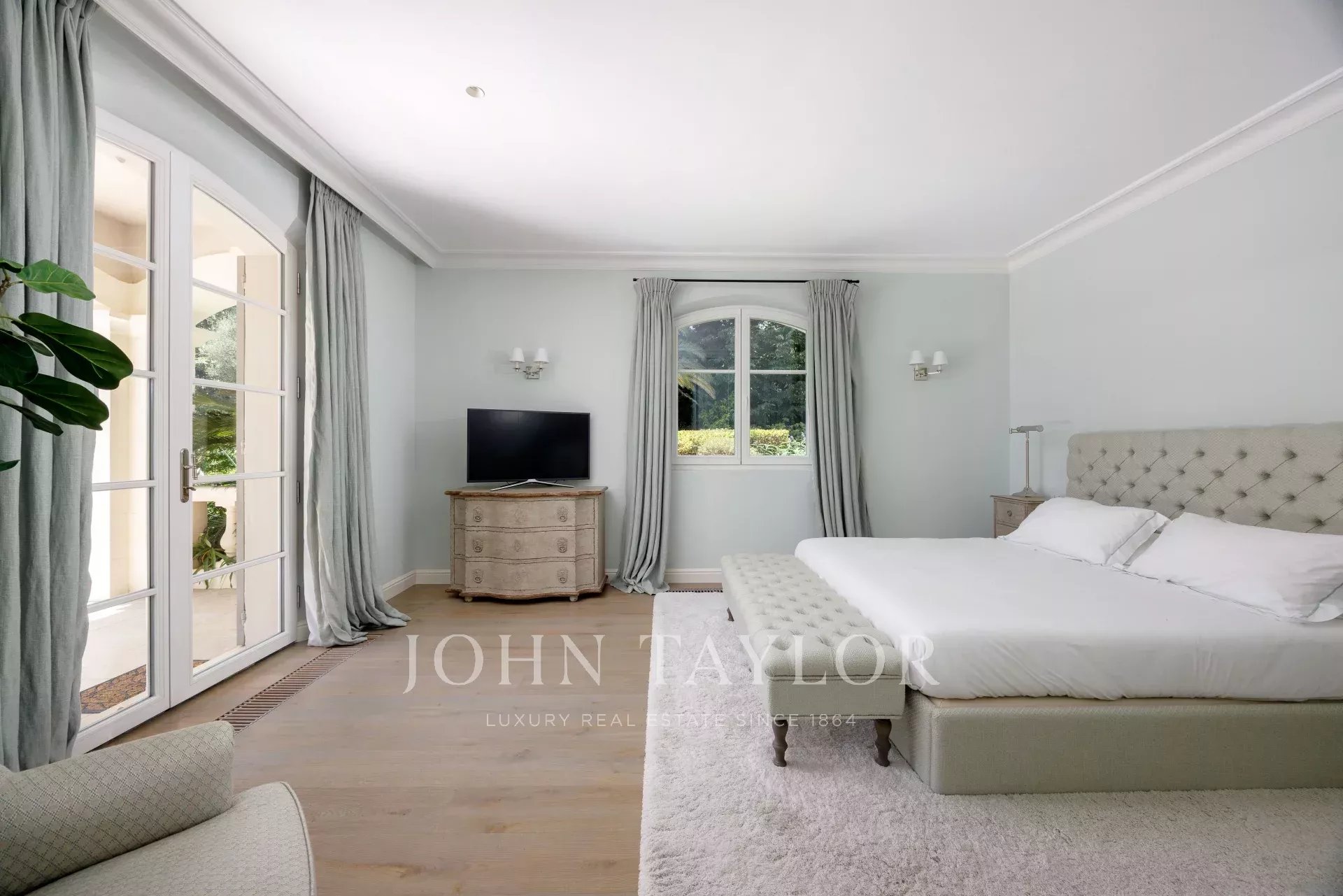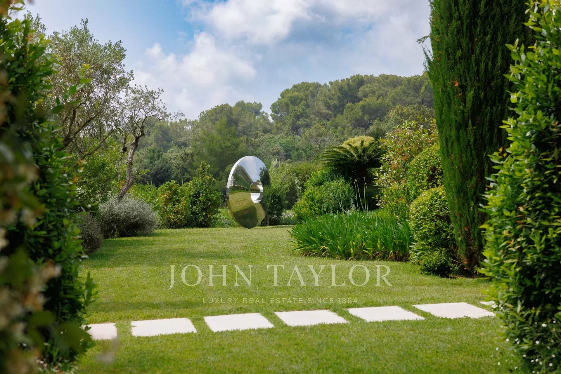 Boasting a flat garden of over 3.5 hectares, peace and quiet and uninterrupted views out to sea, this elegant, prestigious residence was completely renovated in 2016 and luxuriously decorated by Ralph Lauren in his chic, refined style. The property is located in an easily accessible residential area, just a few minutes from the village.
