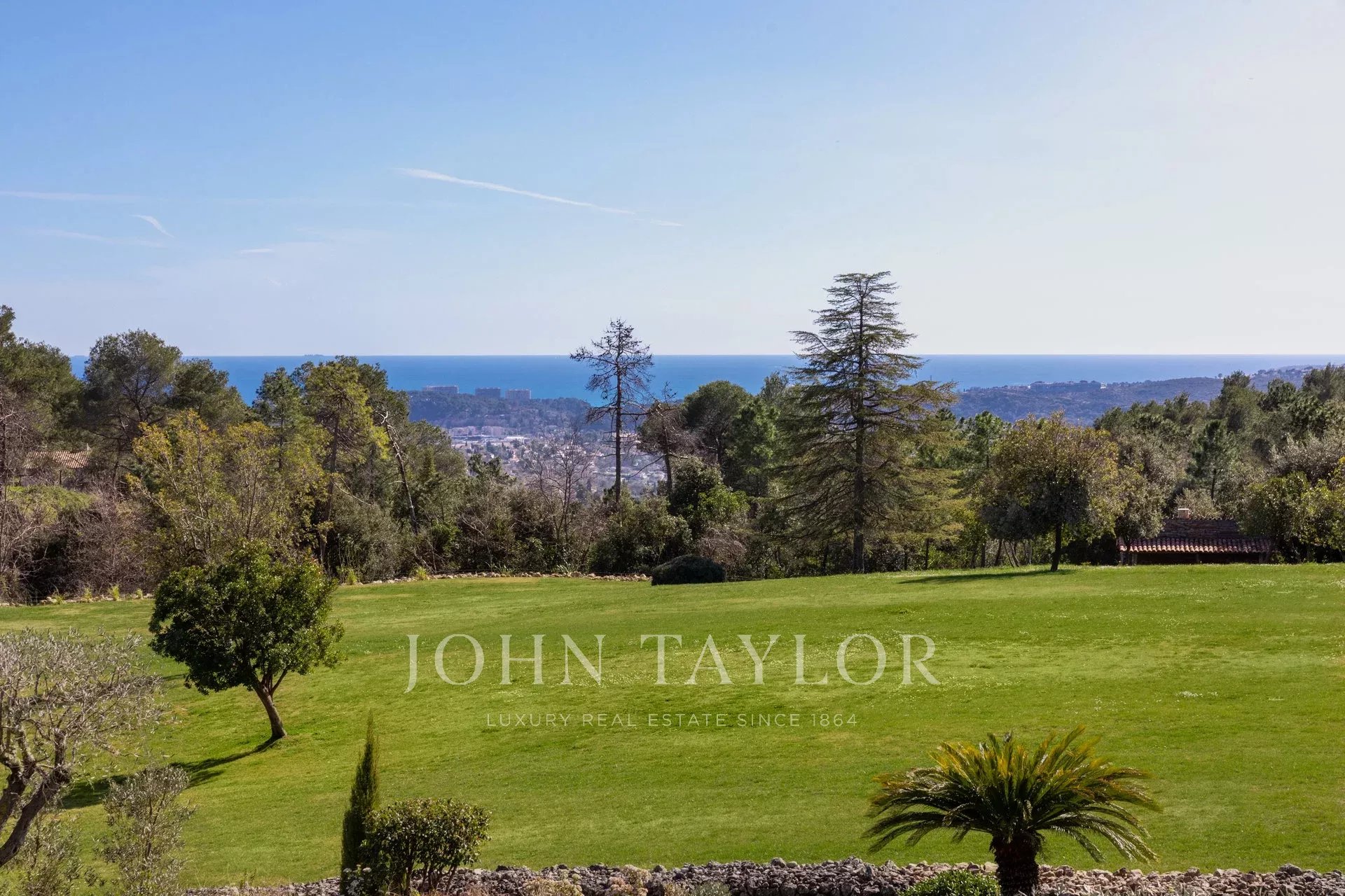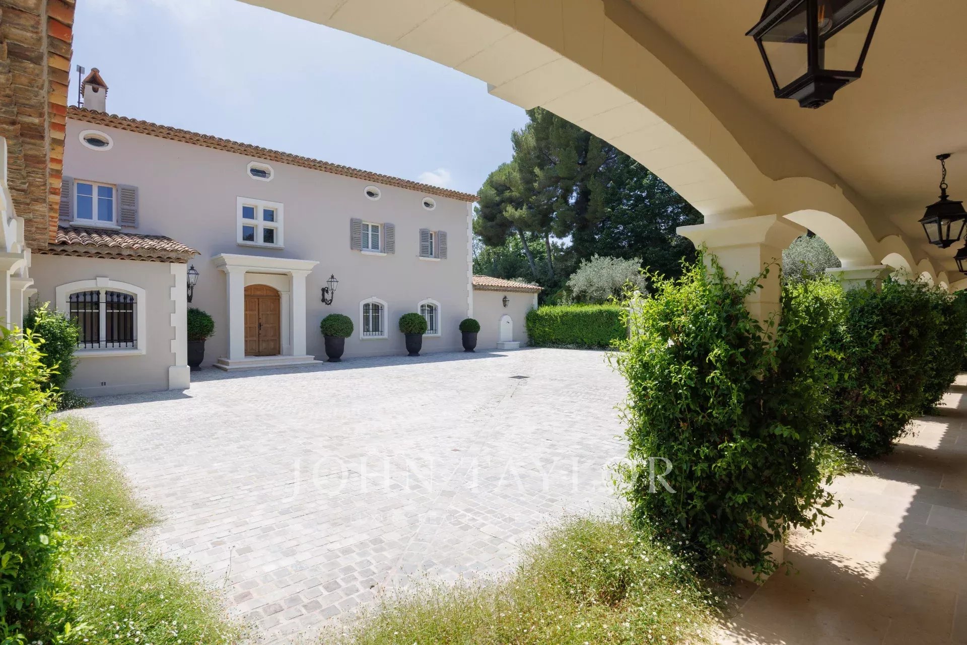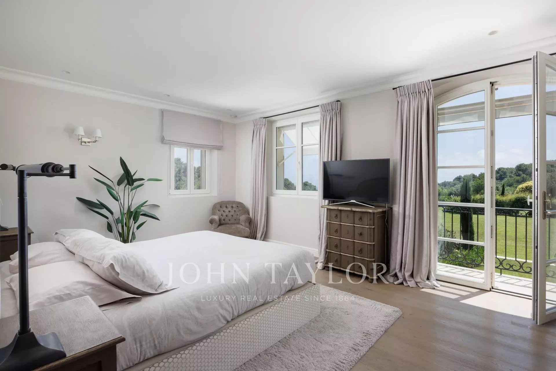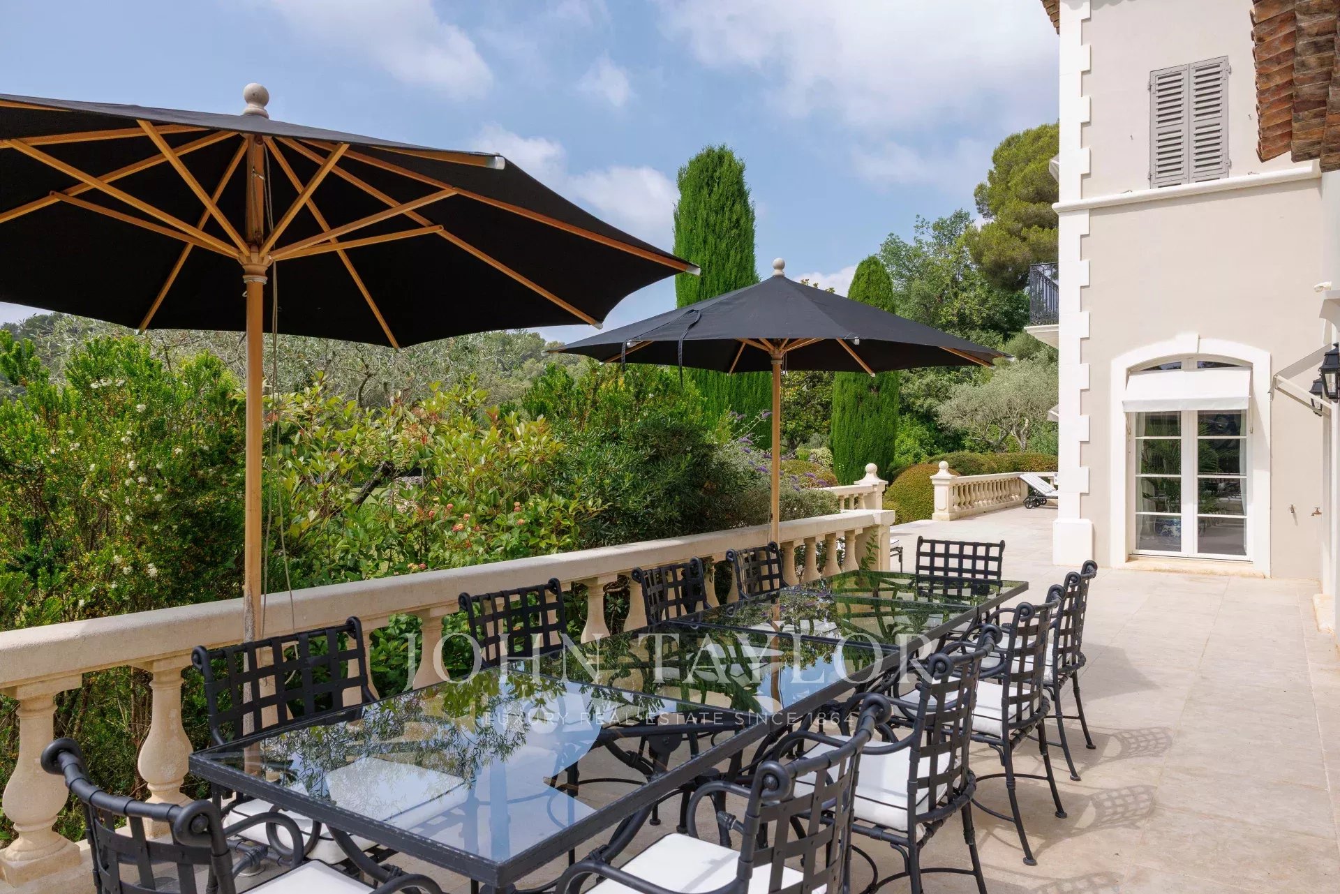 Boasting a flat garden of over 3.5 hectares, peace and quiet and uninterrupted views out to sea, this elegant, prestigious residence was completely renovated in 2016 and luxuriously decorated by Ralph Lauren in his chic, refined style. The property is located in an easily accessible residential area, just a few minutes from the village.