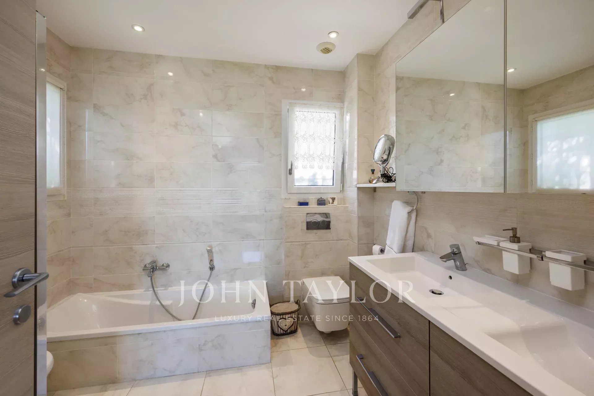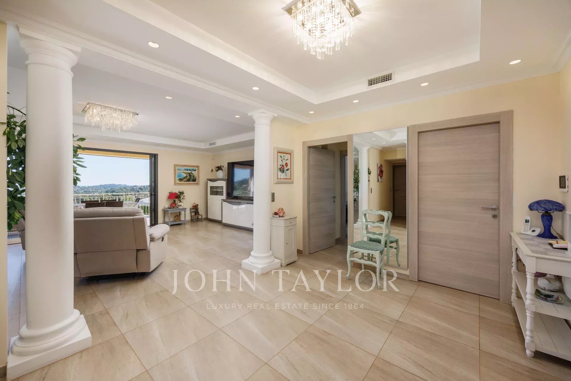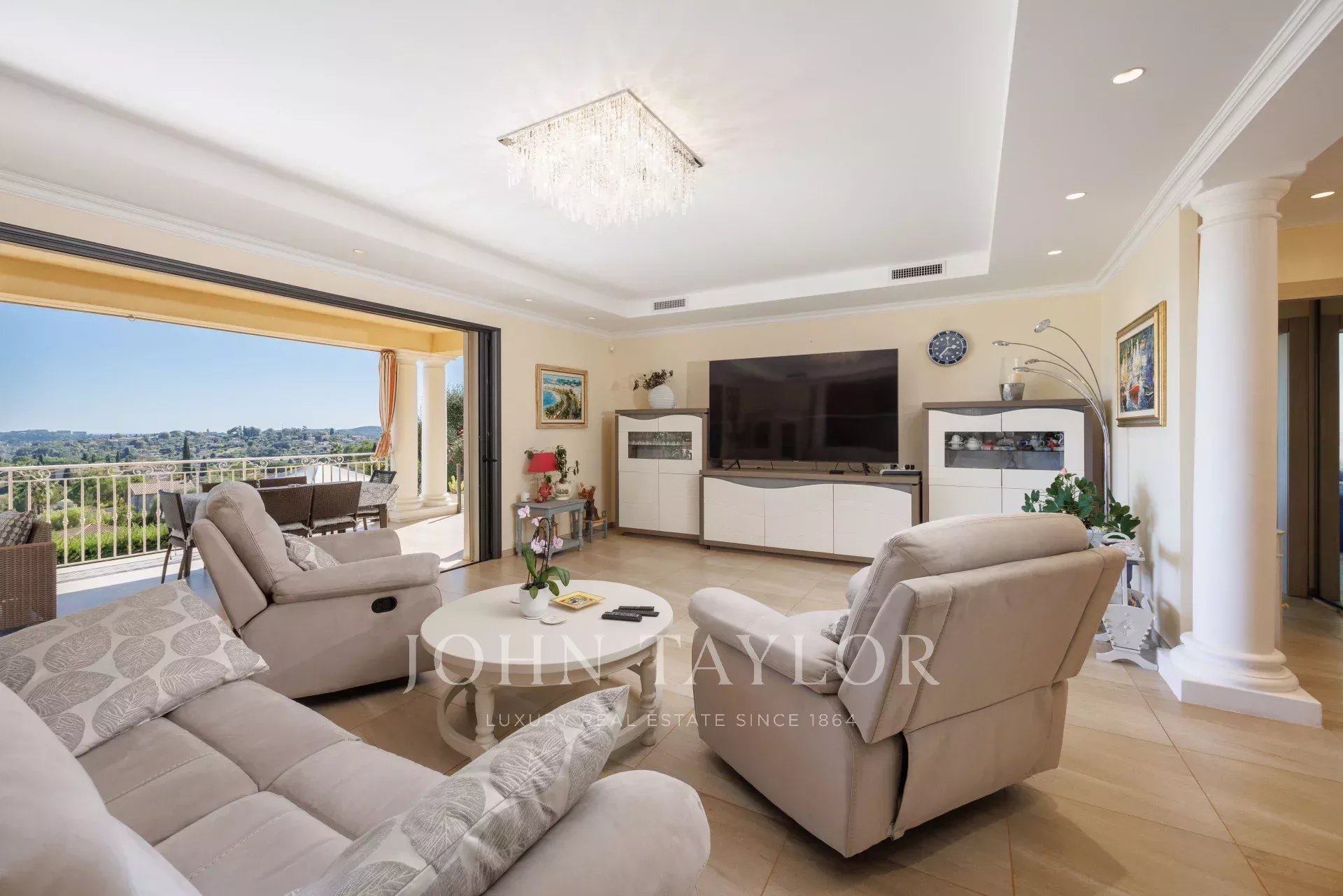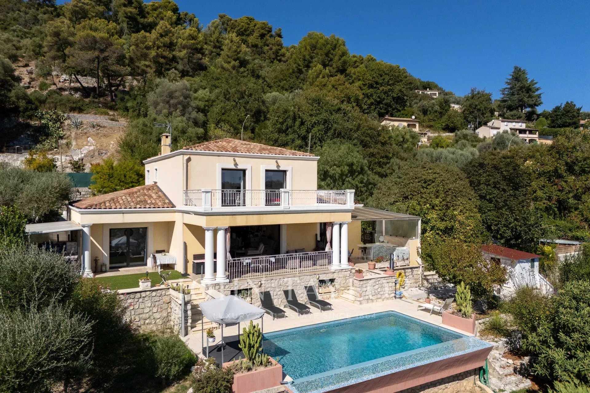 UNDER CONTRACT - Just two minutes from the emblematic village of Saint-Paul-de-Vence, this elegant villa offers 190 sq.m of living space, plus 60 sq.m of finished basement. It offers exceptional panoramic views, stretching from the medieval village to the sea. Set in 1,397 sq.m of landscaped grounds, it features a double garage and several parking spaces. The interior features four bedrooms, three of which are en suite, an office and an elevator serving all three levels. A superb infinity pool completes this exceptional setting.