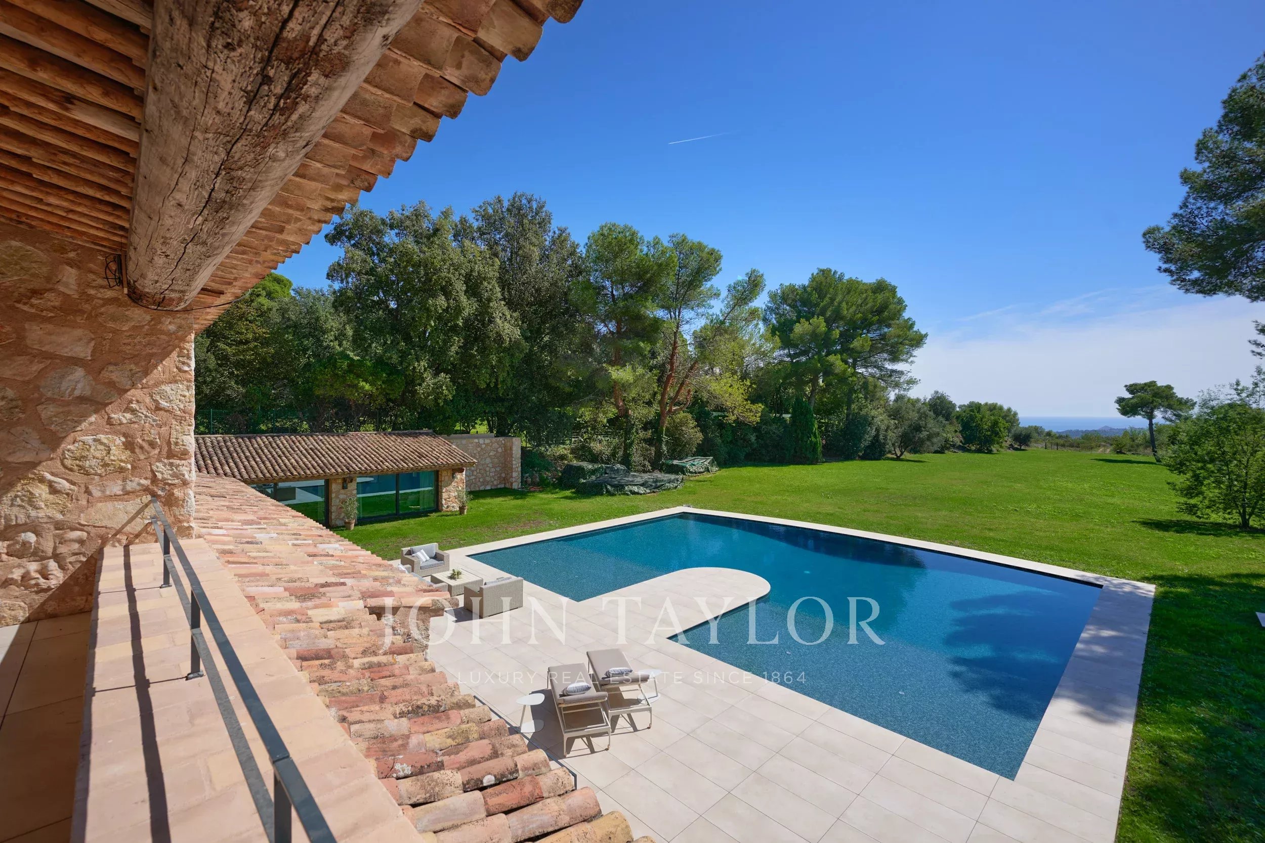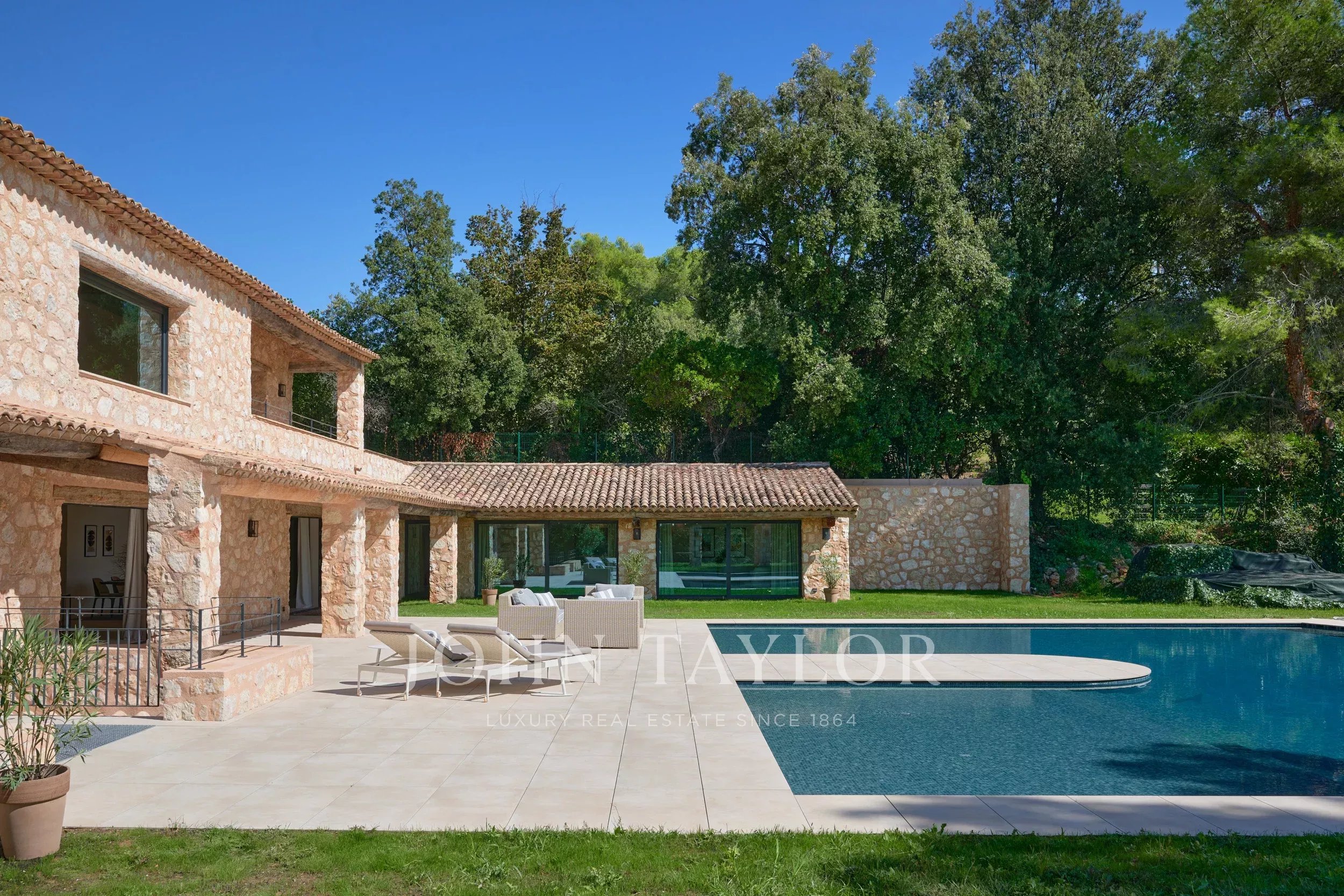This luxurious stone residence embodies the perfect blend of elegance and charm. Nestled near the picturesque village of Saint-Paul de Vence, in the heart of a discreet private estate, it enjoys a dominant position, with majestic views all the way to the sea.