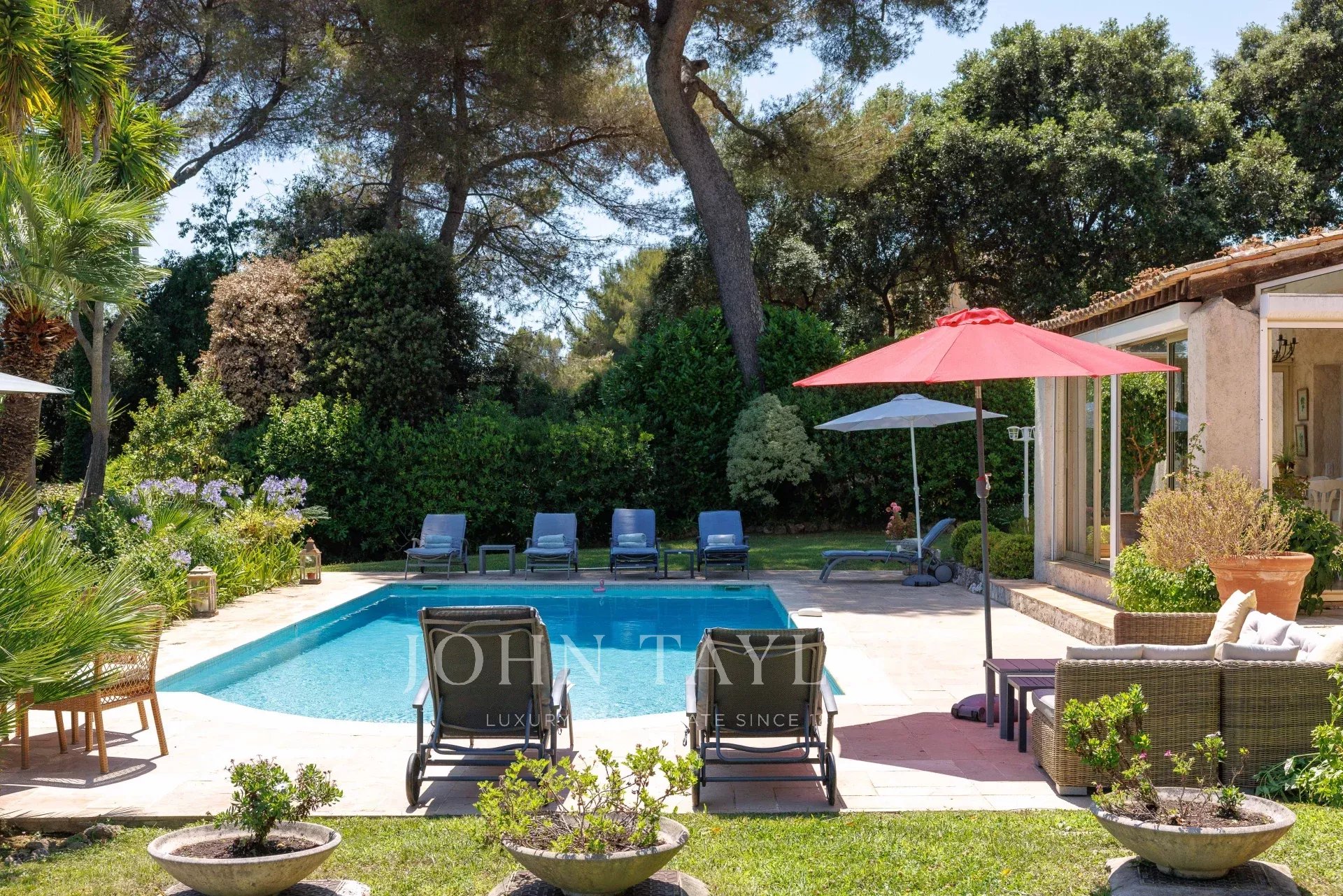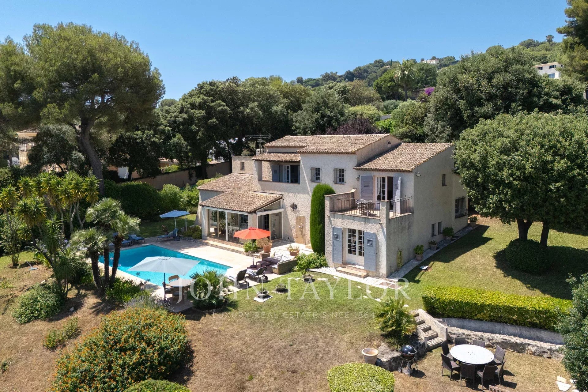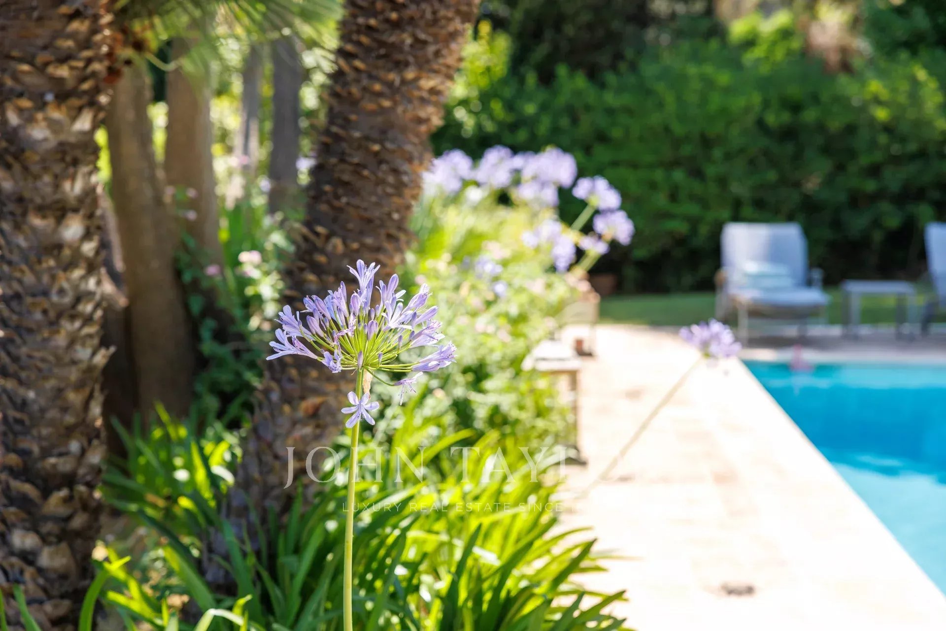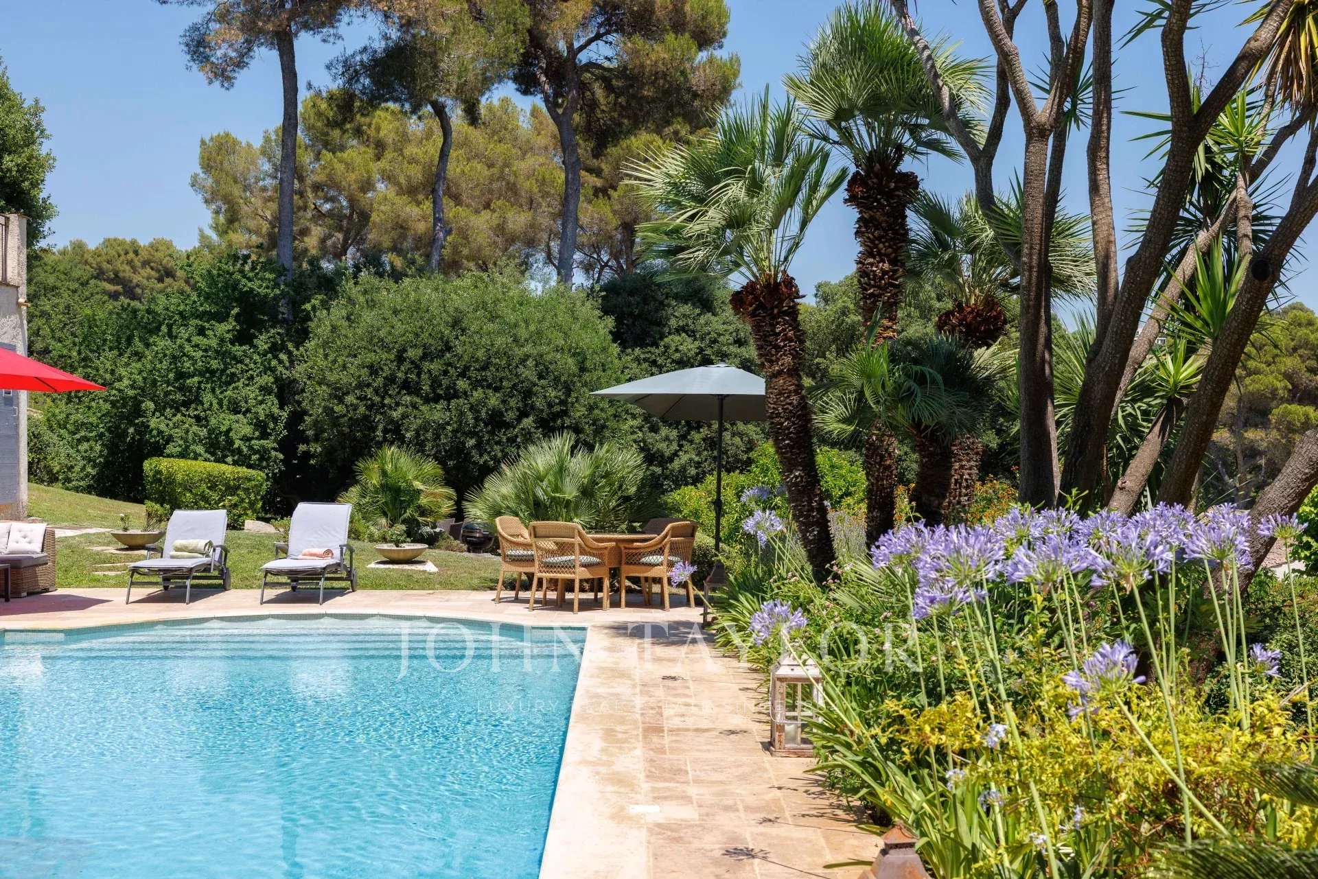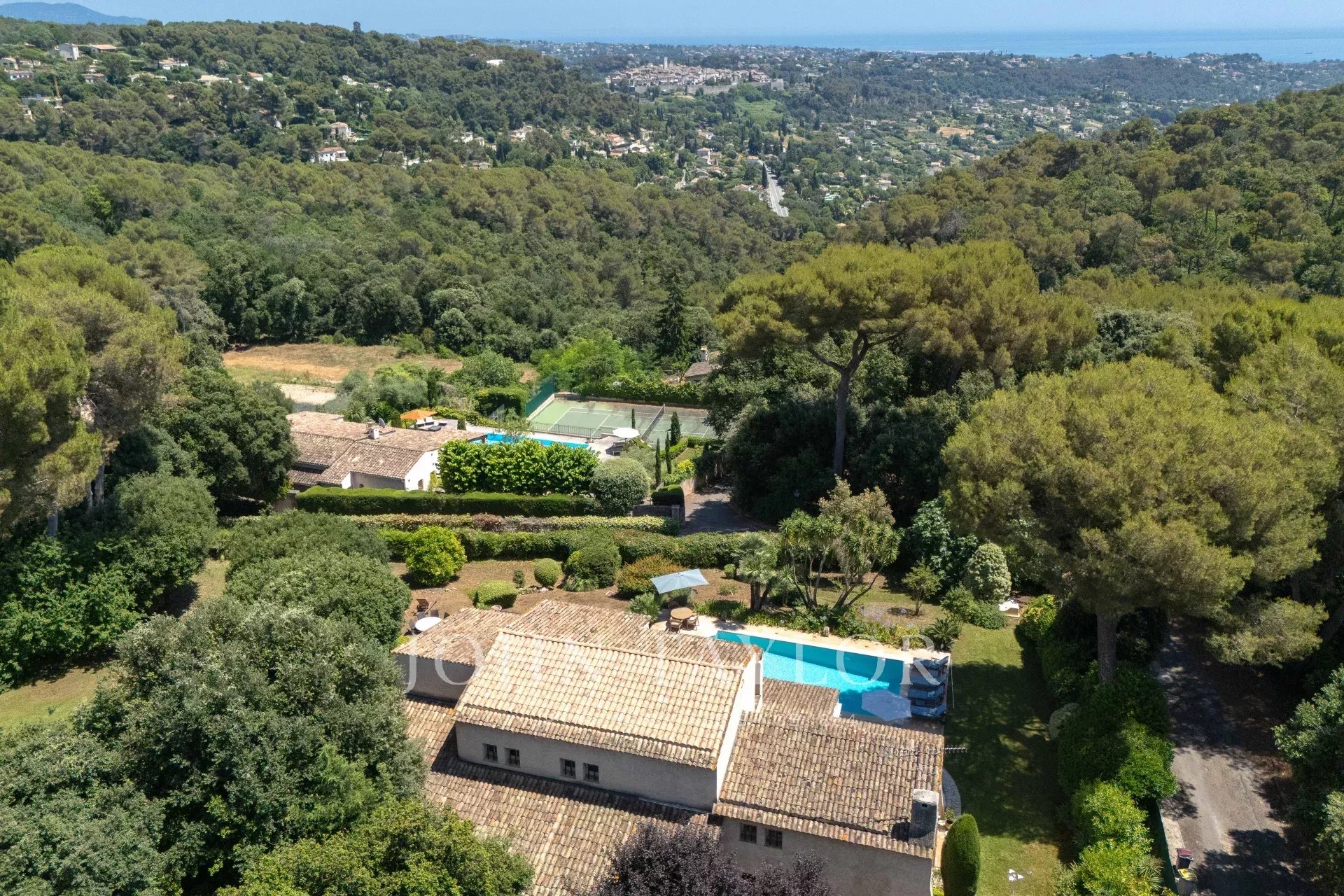 In one of the most sought-after neighborhoods of our beautiful region, in the quiet of residential heights, this 235 m² family property offers an exceptional setting on 2,850 m² of landscaped grounds with swimming pool. It enjoys breathtaking views over the emblematic village of Saint-Paul de Vence to the sea, as well as optimal sunshine throughout the day.