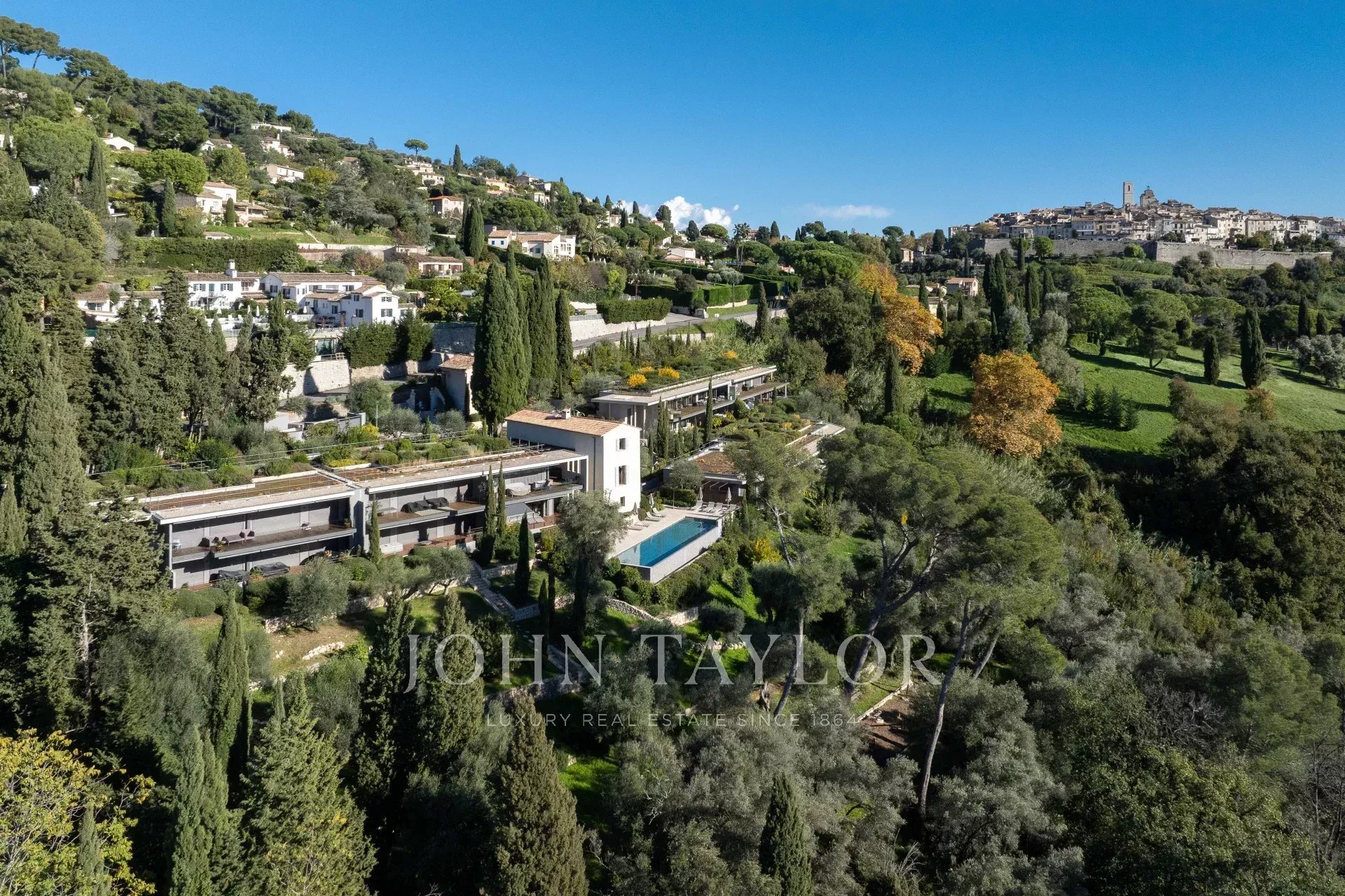 Located in Saint-Paul de Vence's most prestigious and luxurious residence, whose grounds were designed by the famous landscape architect Jean Mus, and only a few minutes' walk from the emblematic village of Saint-Paul de Vence, this sublime 4-room apartment, partially furnished and decorated by a renowned interior designer, with south/south-west exposure, 139 m², extended by a very beautiful terrace of over 50 m² with unobstructed views as far as the sea, has everything to make the most beautiful properties in our region blush: absolute calm, 3 closed garages, a cellar, all within a secure residence of just 18 apartments with concierge service, large heated swimming pool, gym, sauna, children's playground and landscaped park.
