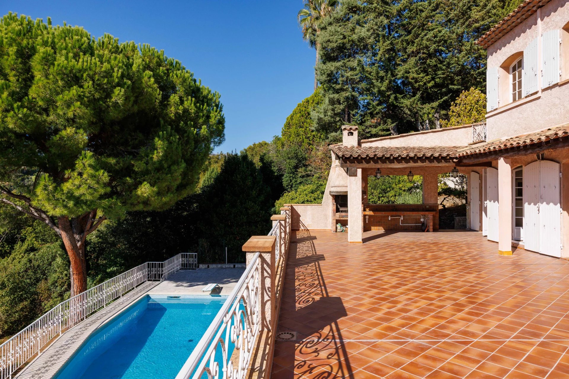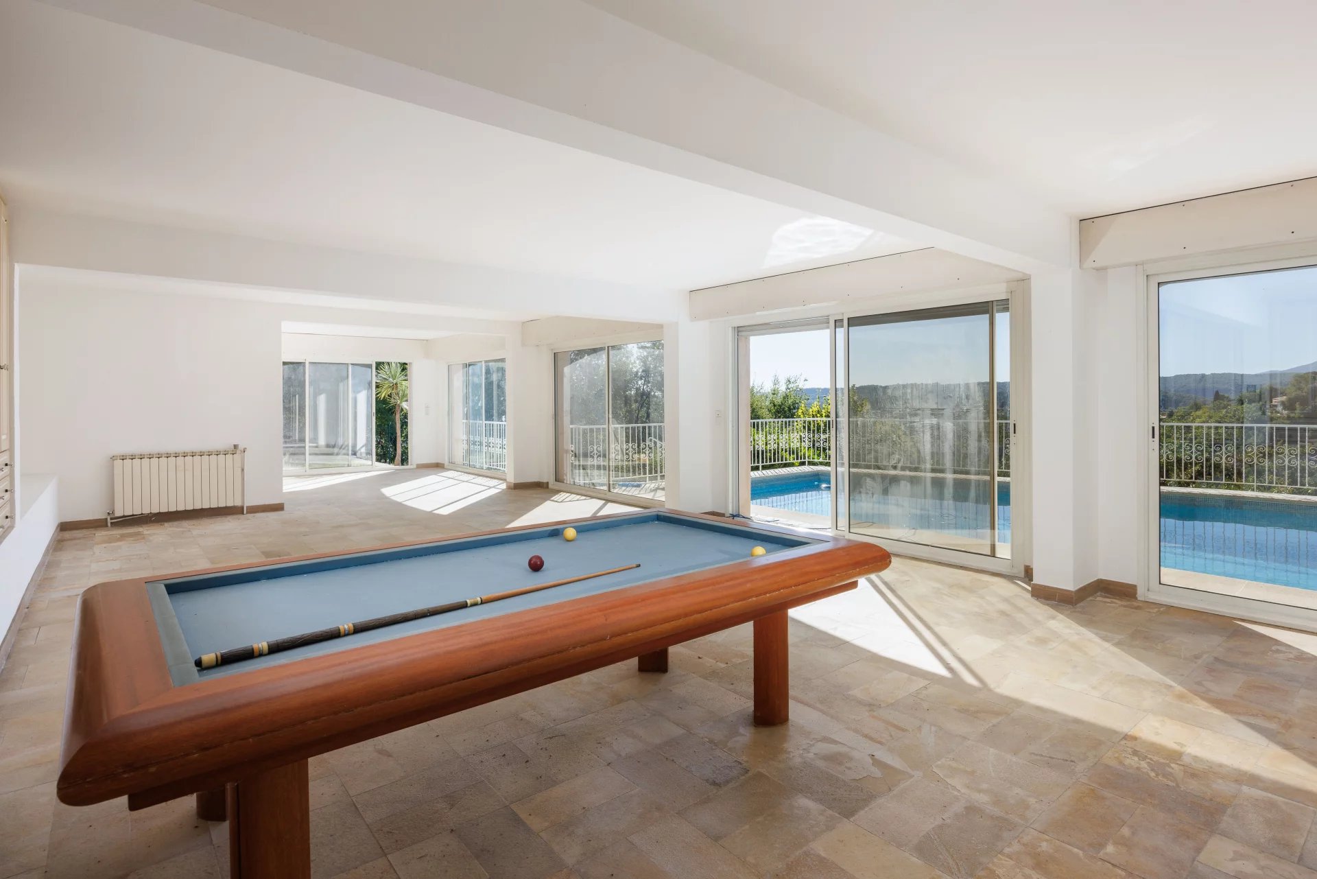 The lower part of the house features a large pool house opening onto the swimming pool. It is accompanied by an independent apartment with living room, bedroom, kitchenette and shower room.